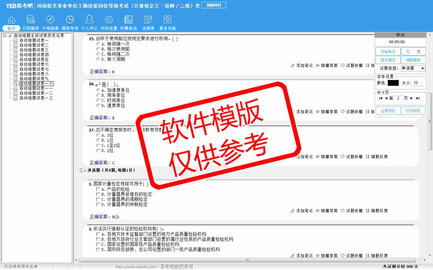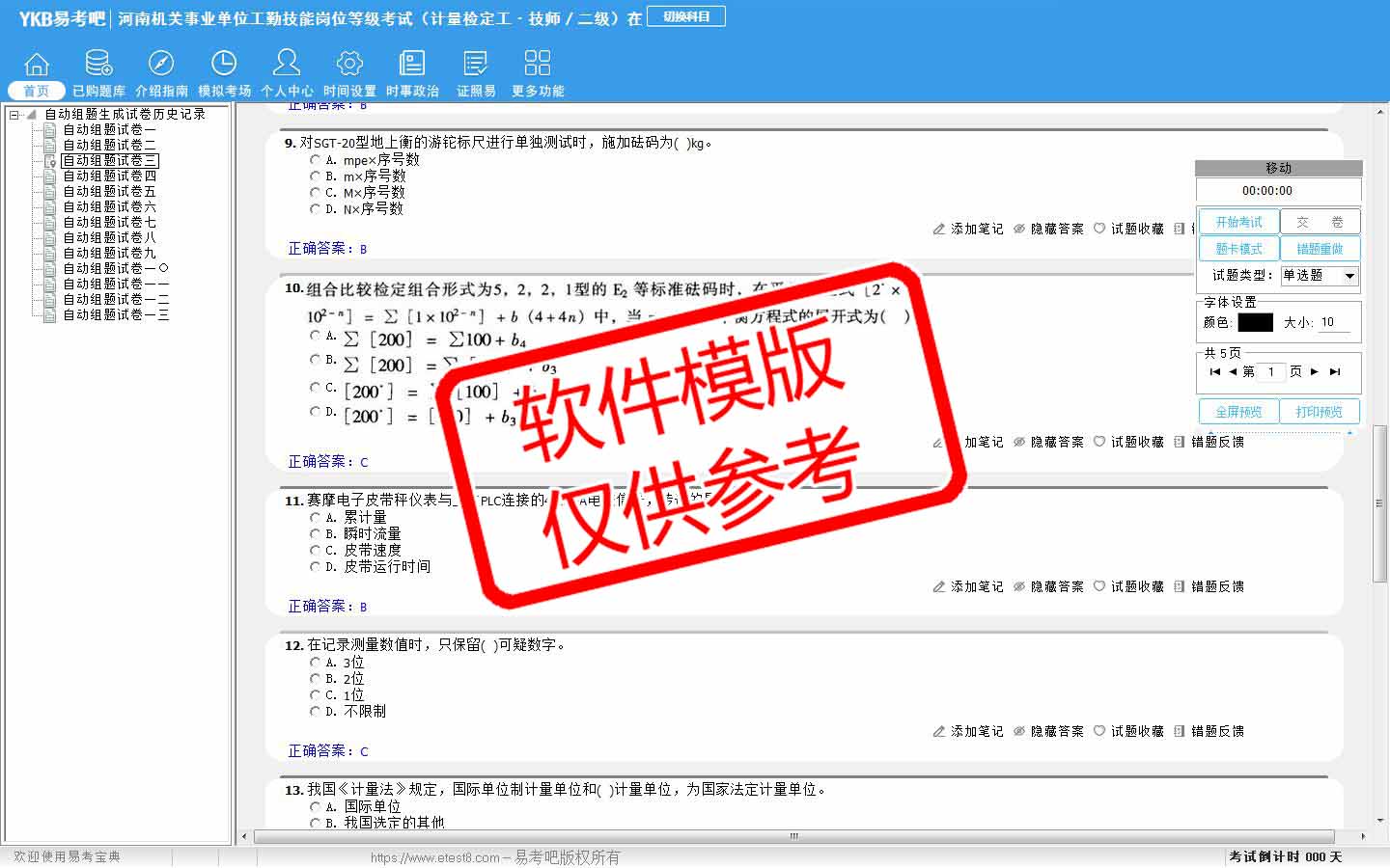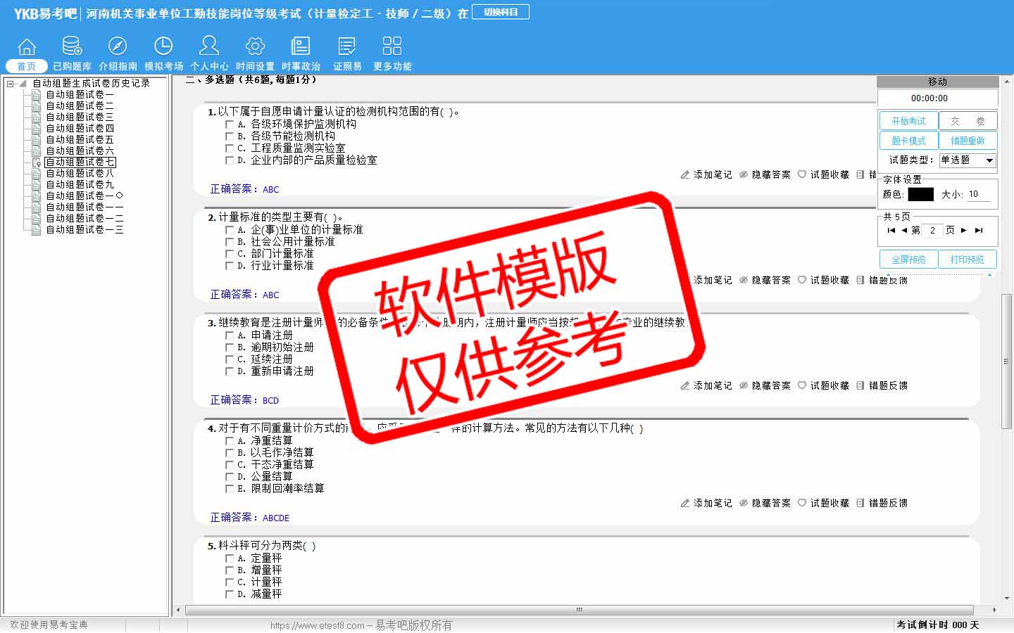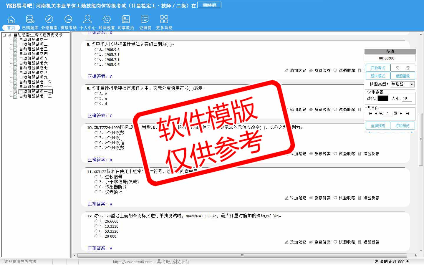题量内容: 模拟试题库共有1240道试题,可以任意组成模拟考场试卷练习13套,以及多条考试介绍和考试指南(辅导资料)。