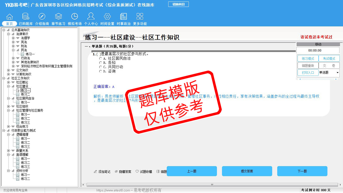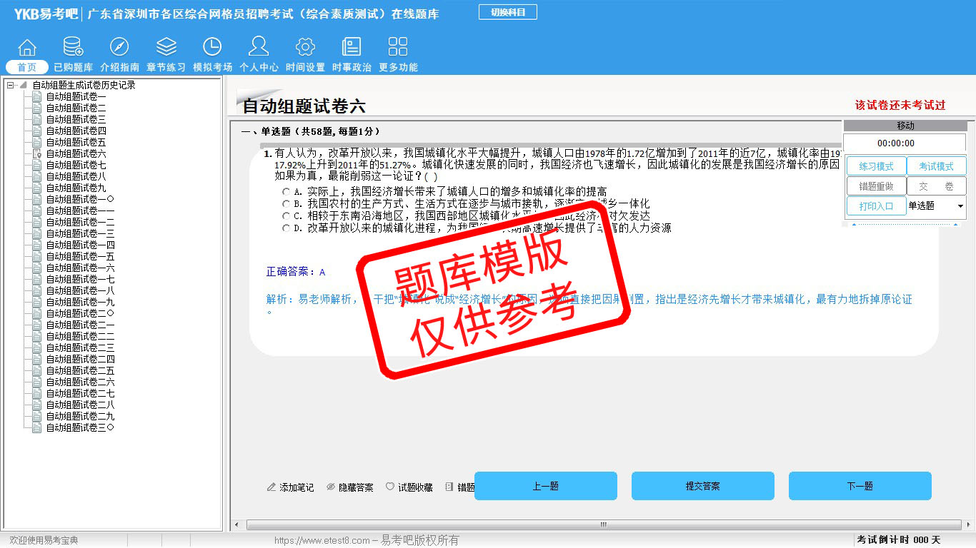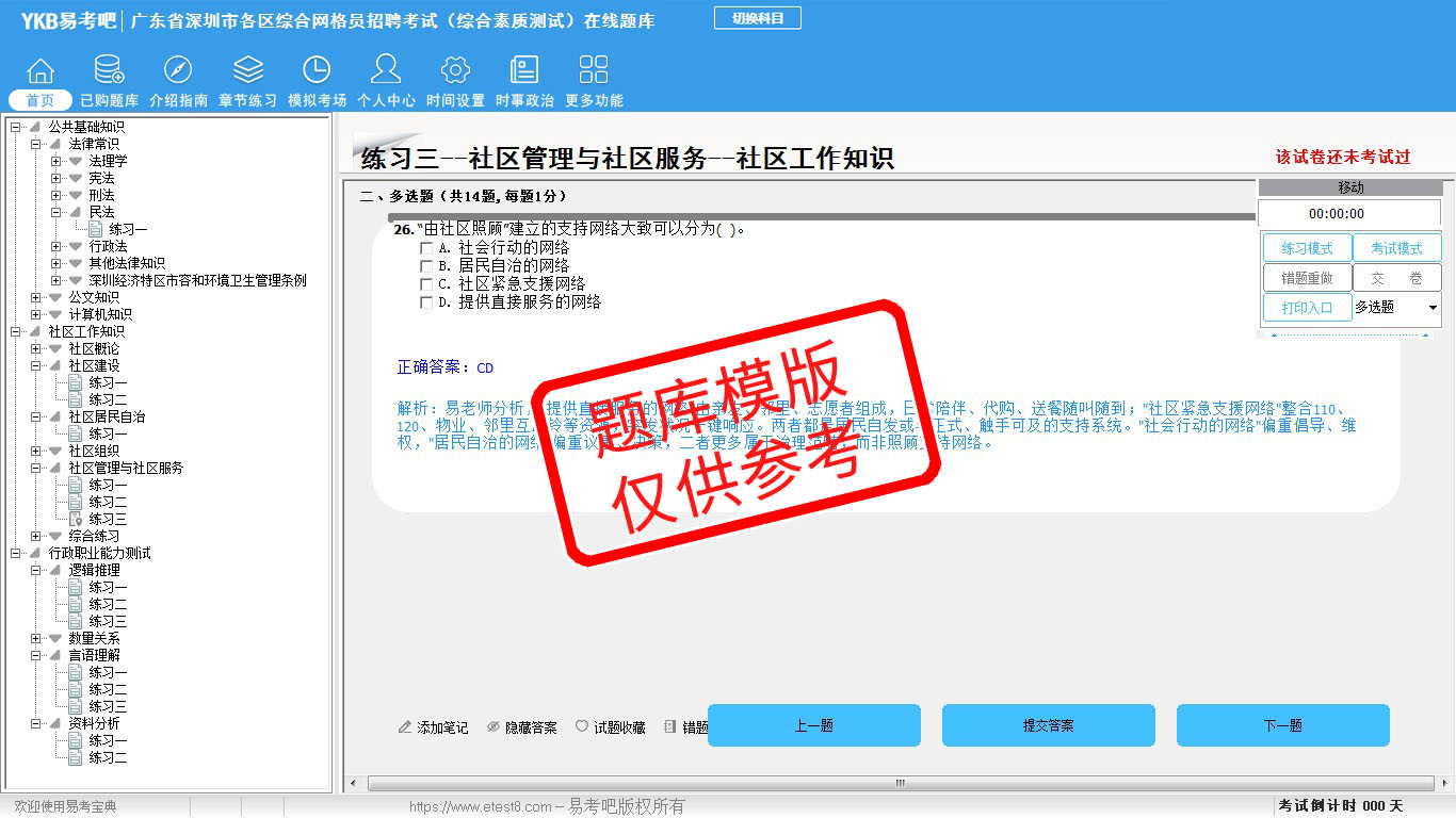 题量内容: 模拟试题库共有2994道试题,可以任意组成模拟考场试卷练习30套,另有各章节的练习试题多套,以及多条考试介绍和考试指南(辅导资料)。
