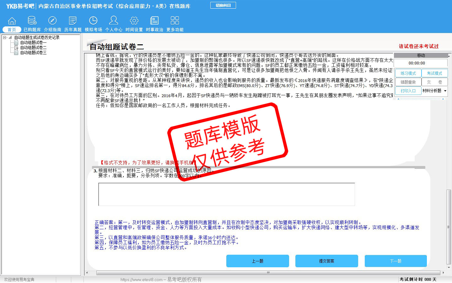 题量内容: 模拟试题库共有143道试题,历届真题有22套,以及多条考试介绍和考试指南(辅导资料)。