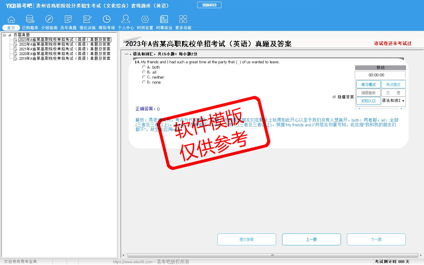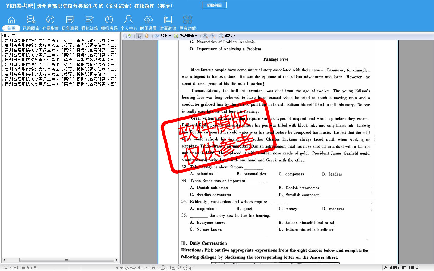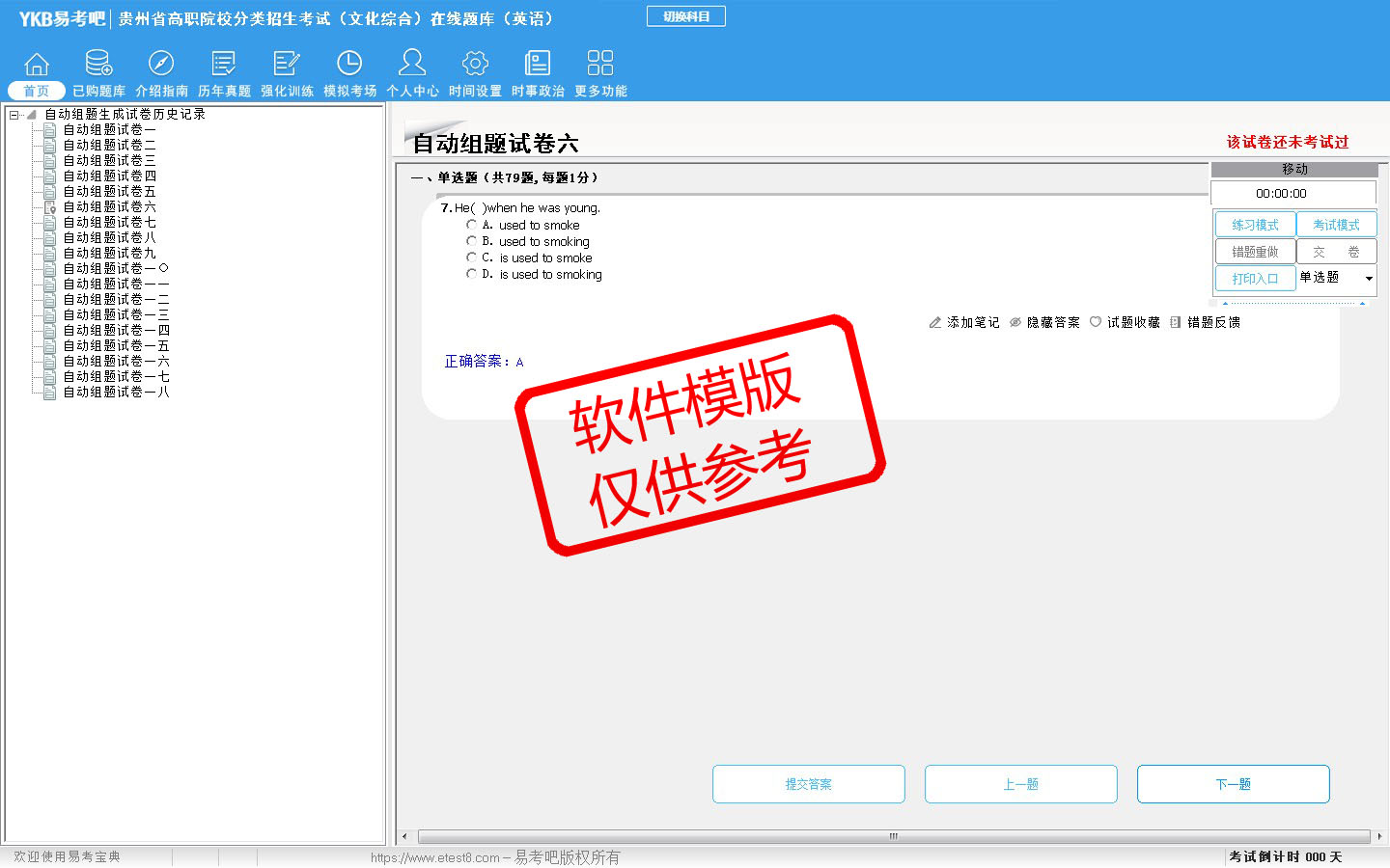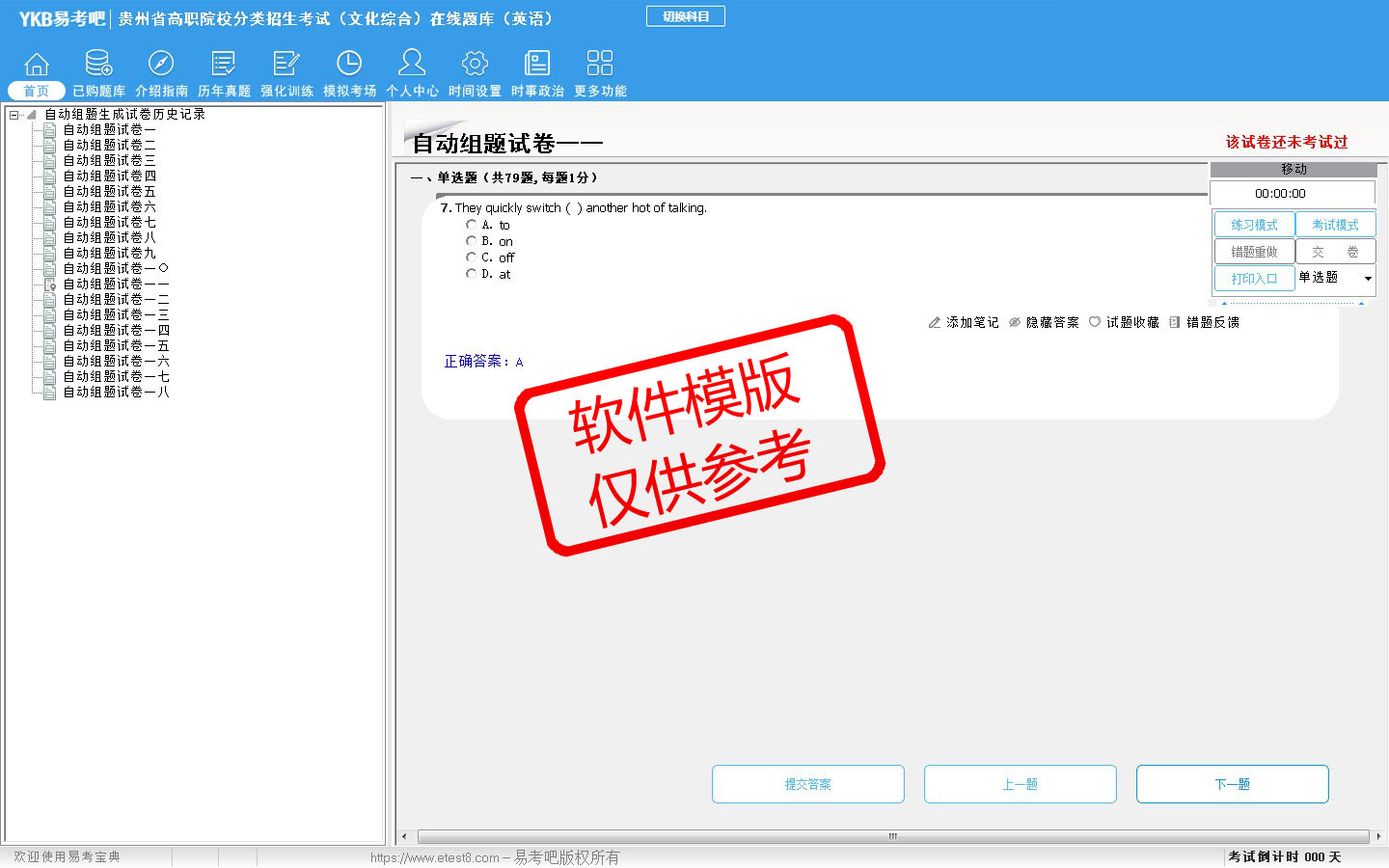 题量内容: 模拟试题库共有1898道试题,可以任意组成模拟考场试卷练习18套,强化训练有10套,历届真题有5套,以及多条考试介绍和考试指南(辅导资料)。