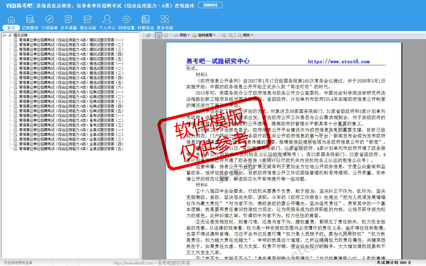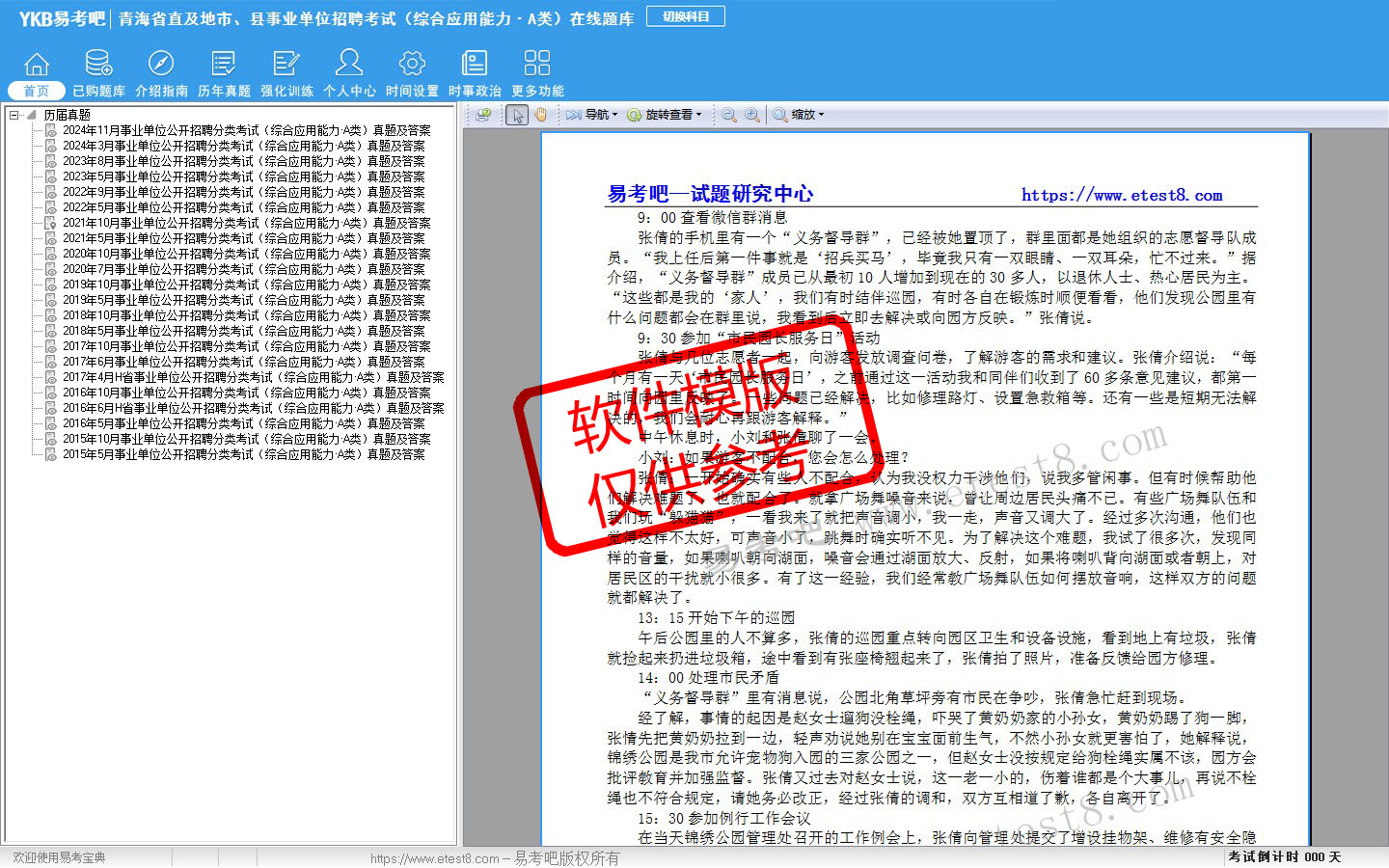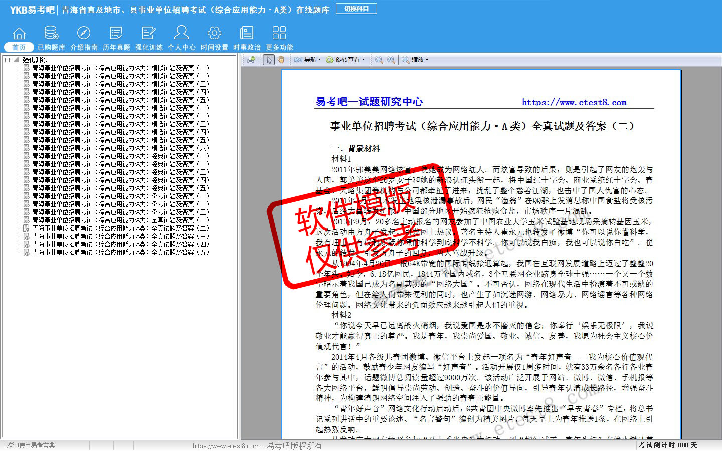 题量内容: 模拟试题库共有138道试题,历届真题有22套,以及多条考试介绍和考试指南(辅导资料)。