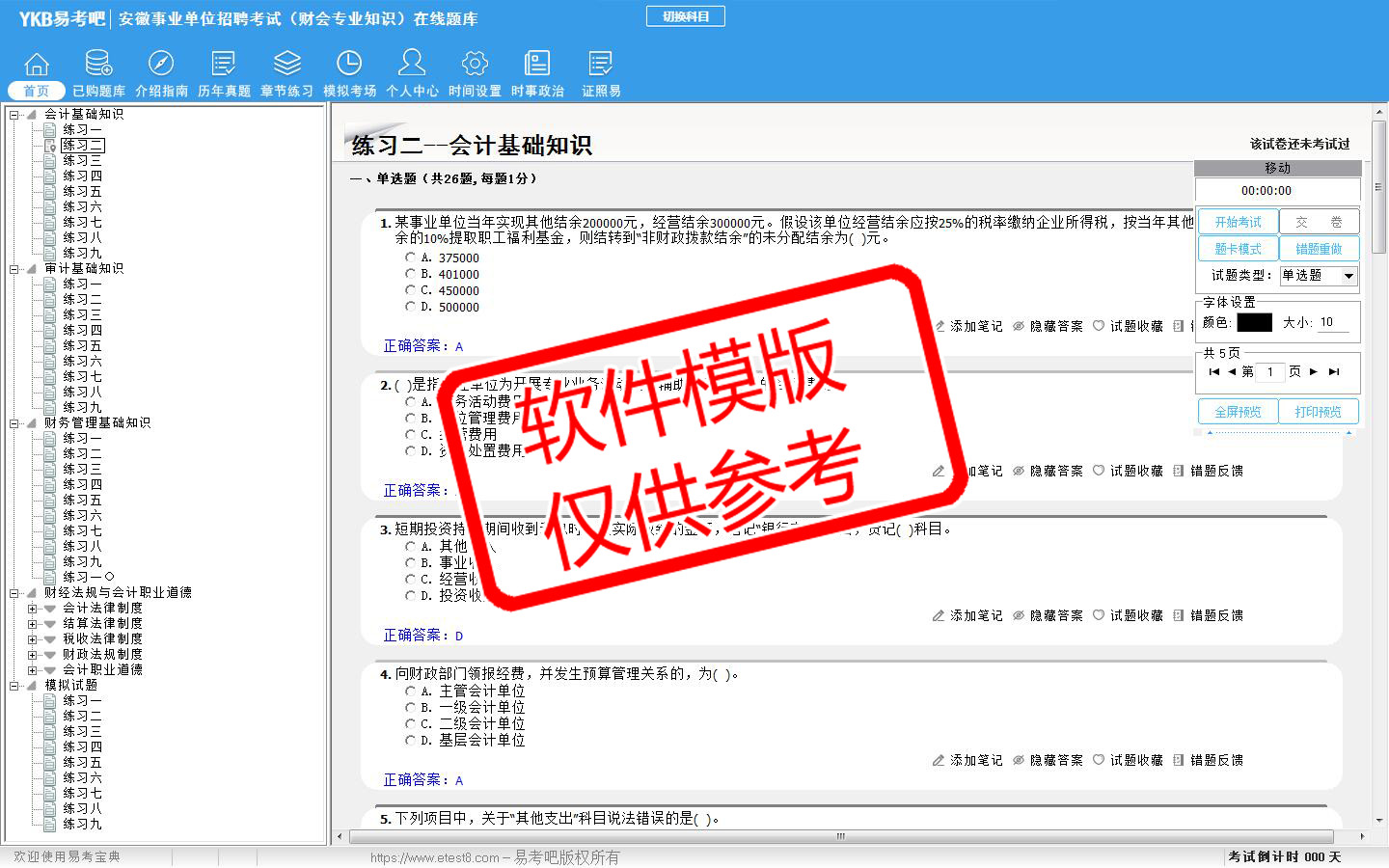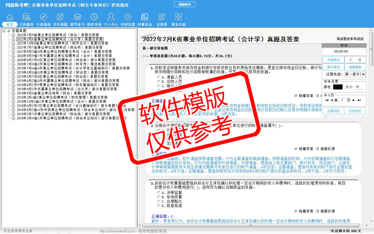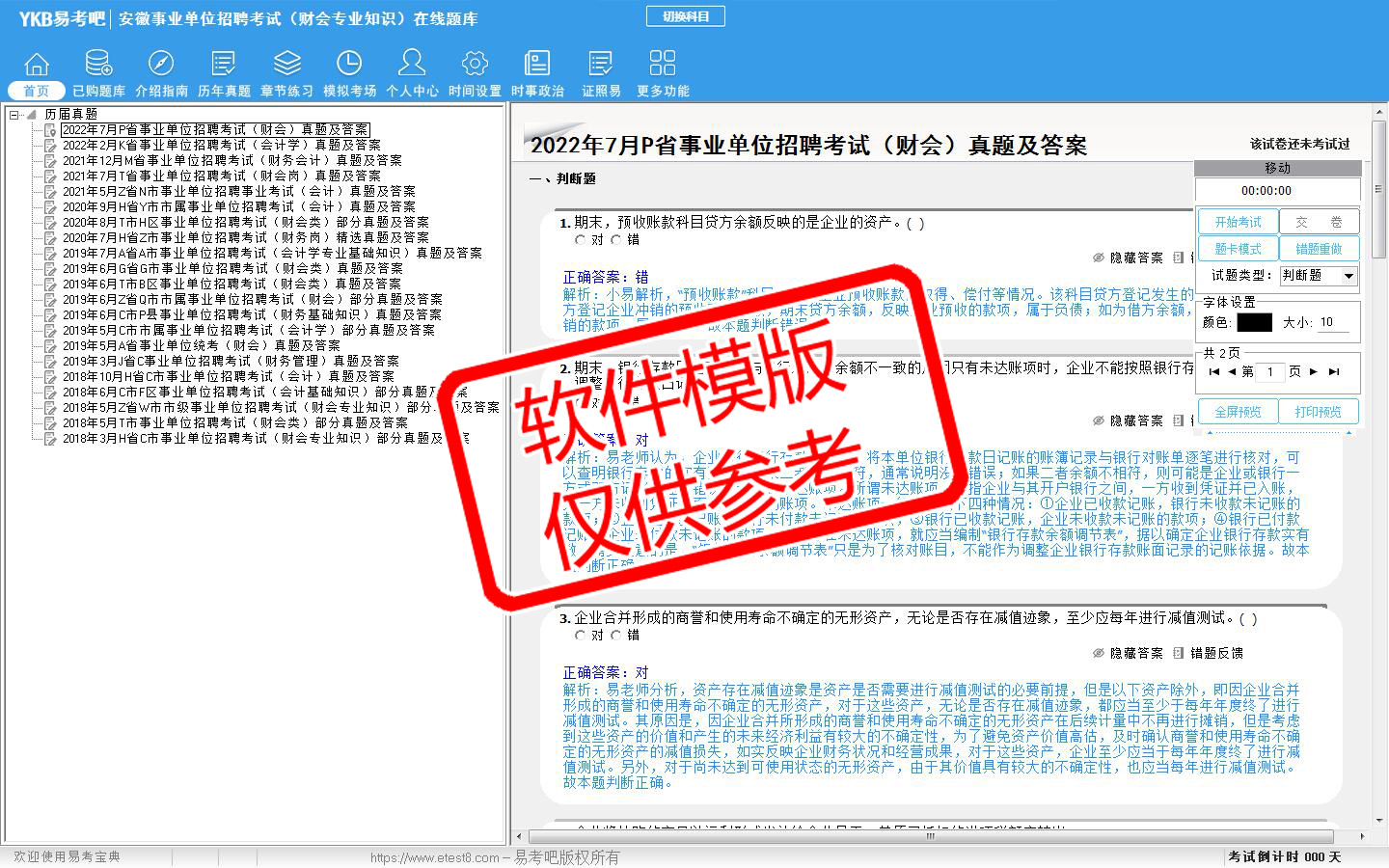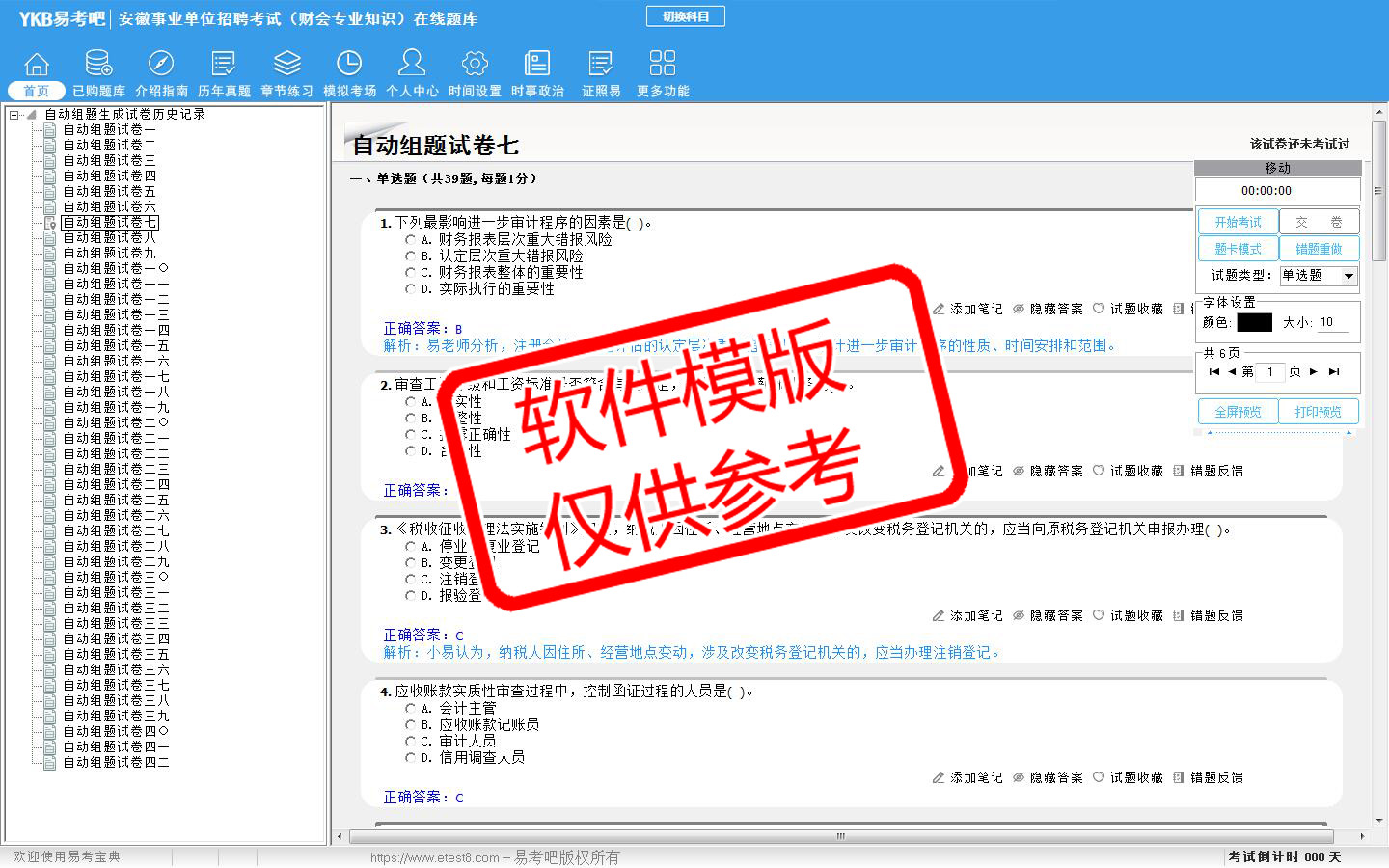 模拟试题库共有4156道试题,可以任意组成模拟考场试卷练习41套,历届真题有6套,另有各章节的练习试题多套,以及多条考试介绍和考试指南(辅导资料)。