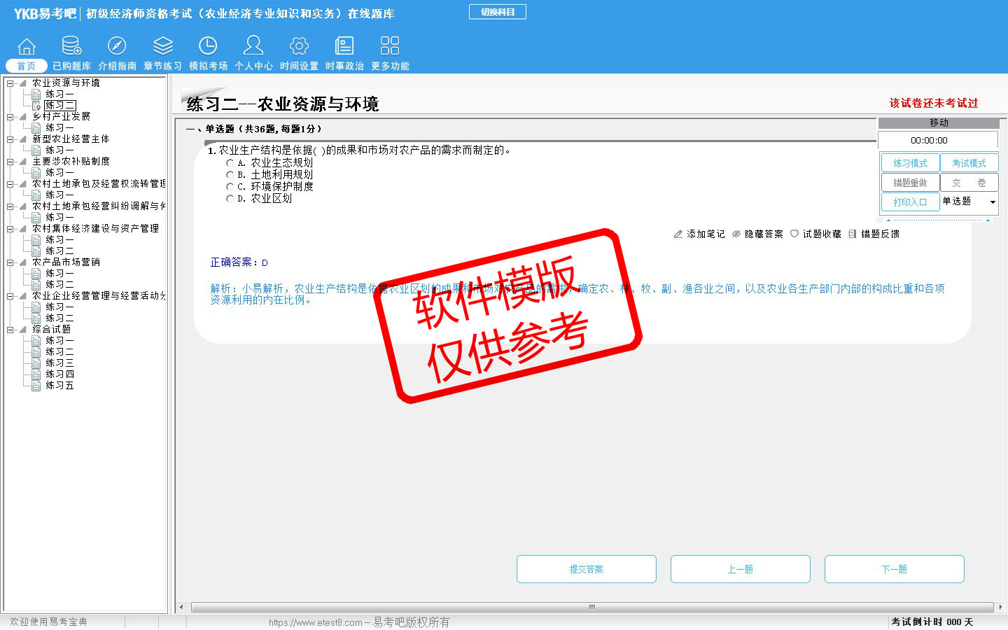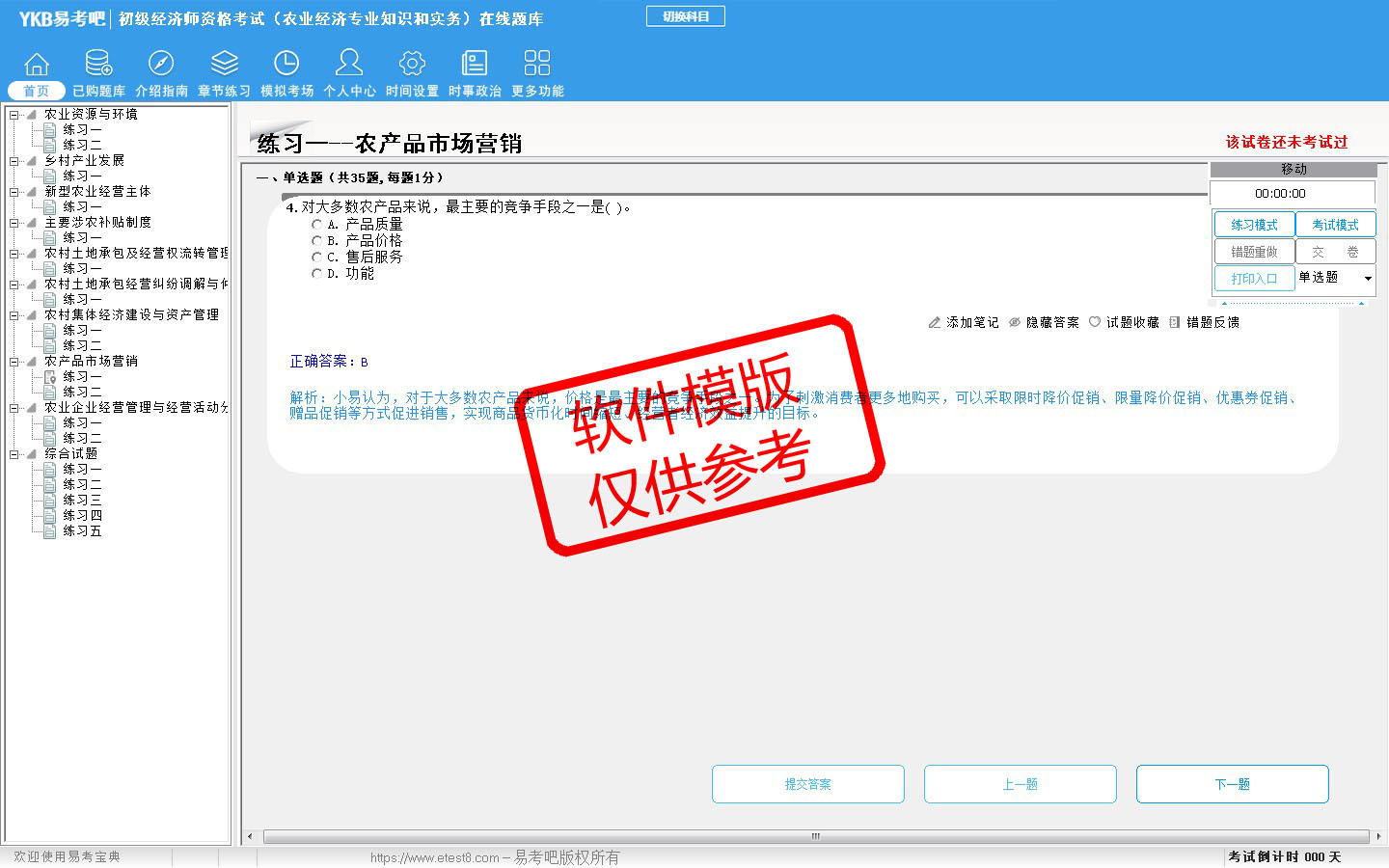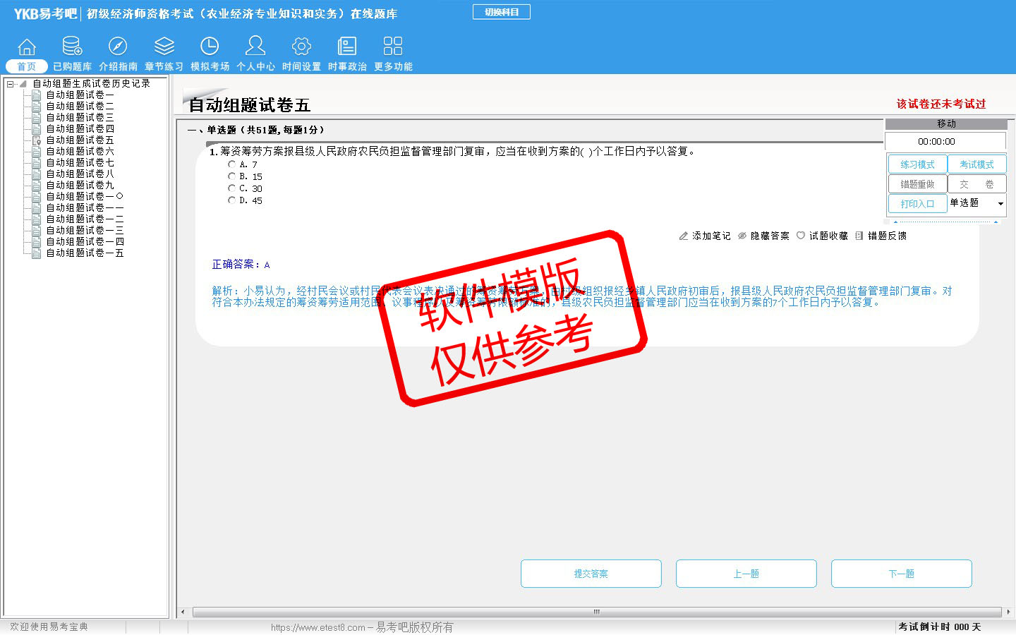 题量内容: 模拟试题库共有1456道试题,可以任意组成模拟考场试卷练习15套,另有各章节的练习试题多套,以及多条考试介绍和考试指南(辅导资料)。