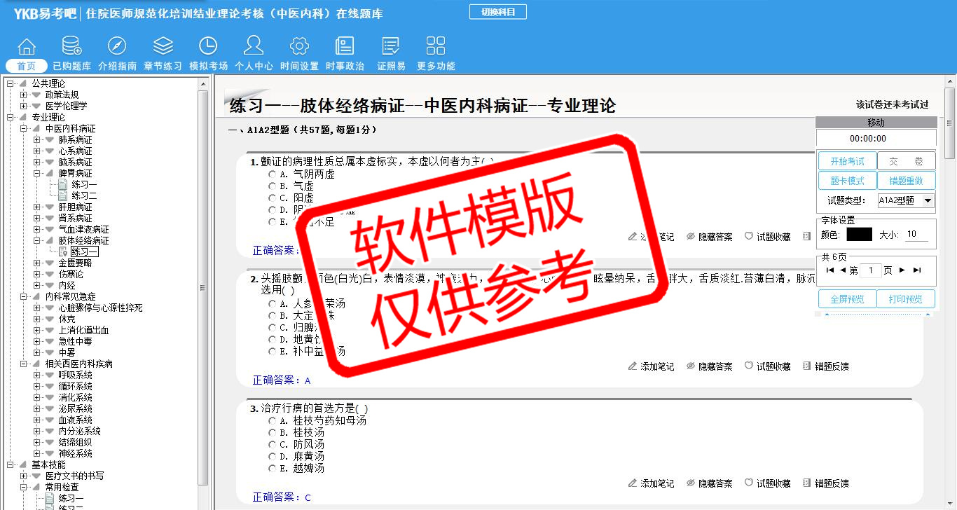 题量内容: 模拟试题库共有3404道试题,可以任意组成模拟考场试卷练习34套,另有各章节的练习试题多套,以及多条考试介绍和考试指南(辅导资料)。