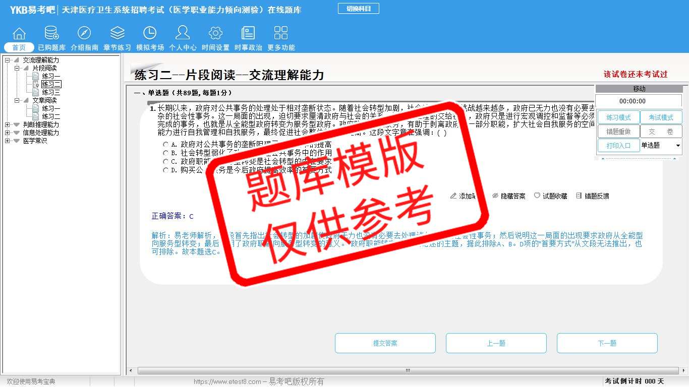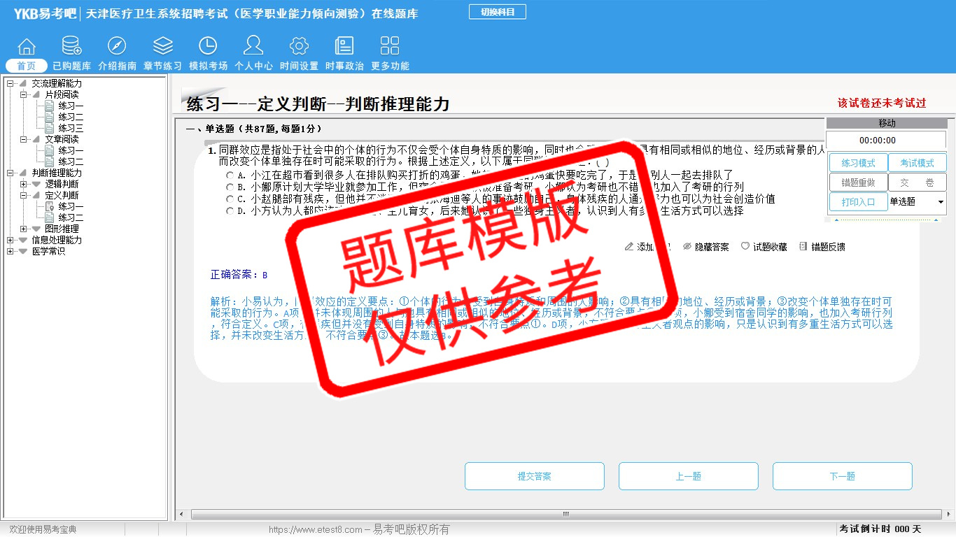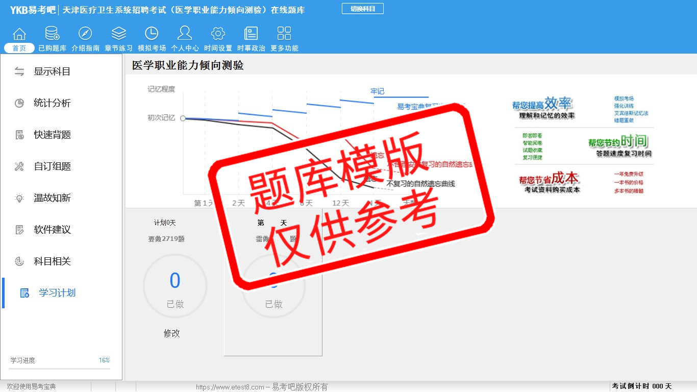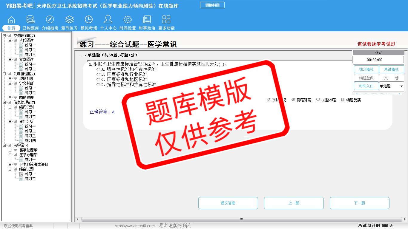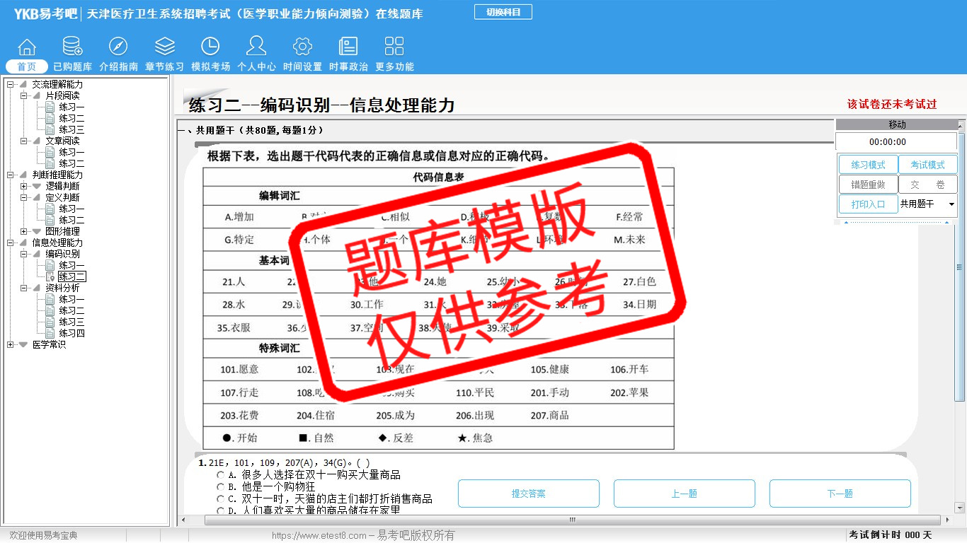 题量内容: 模拟试题库共有2208道试题,可以任意组成模拟考场试卷练习22套,历届真题有14套,另有各章节的练习试题多套,以及多条考试介绍和考试指南(辅导资料)。