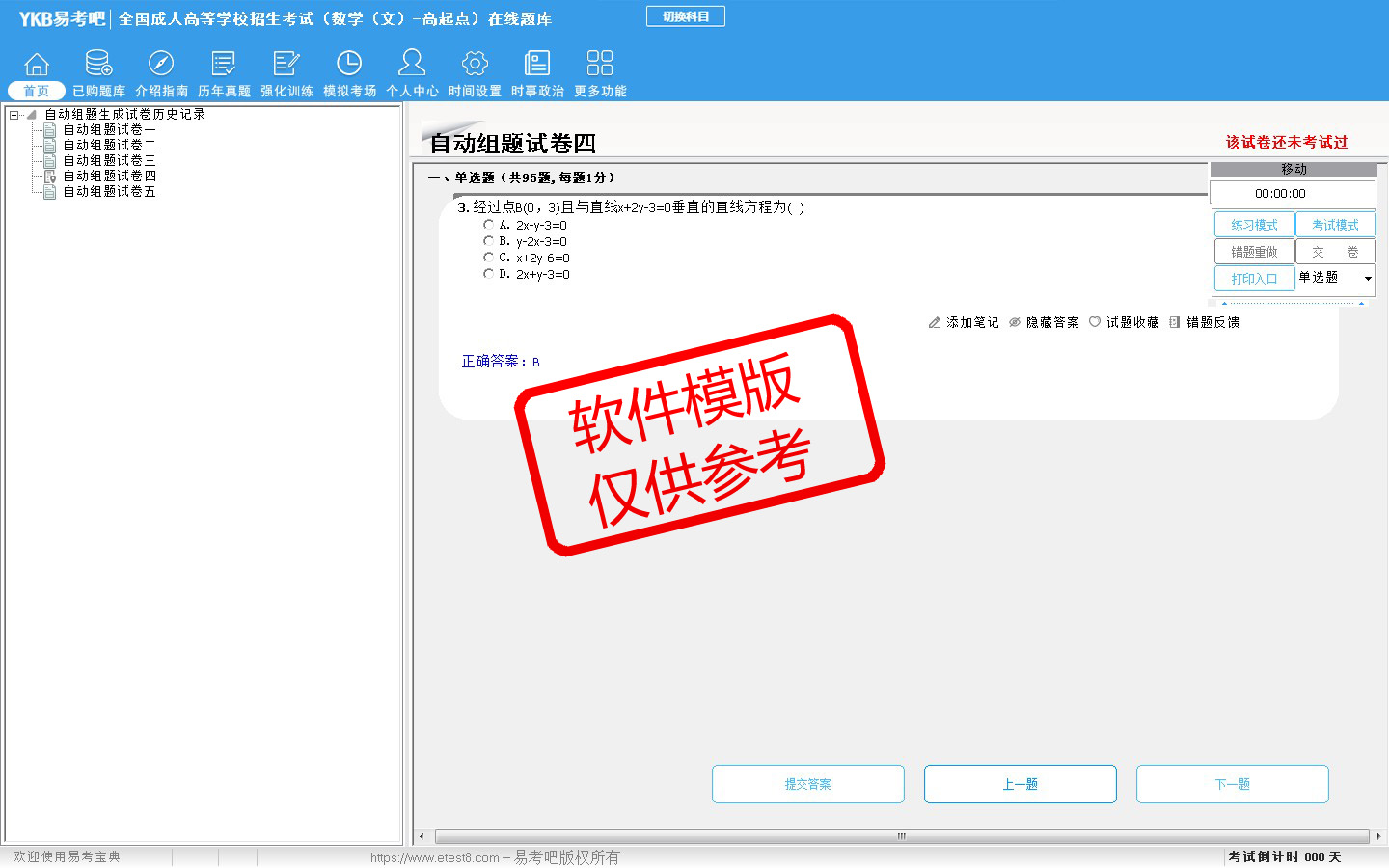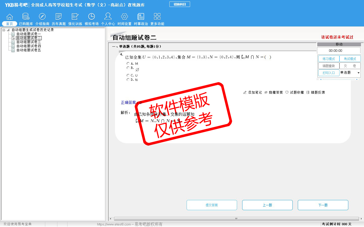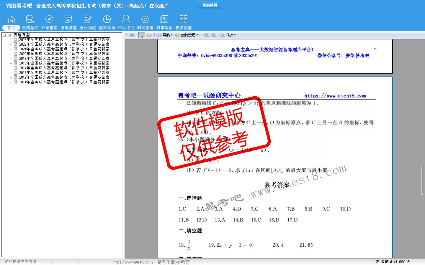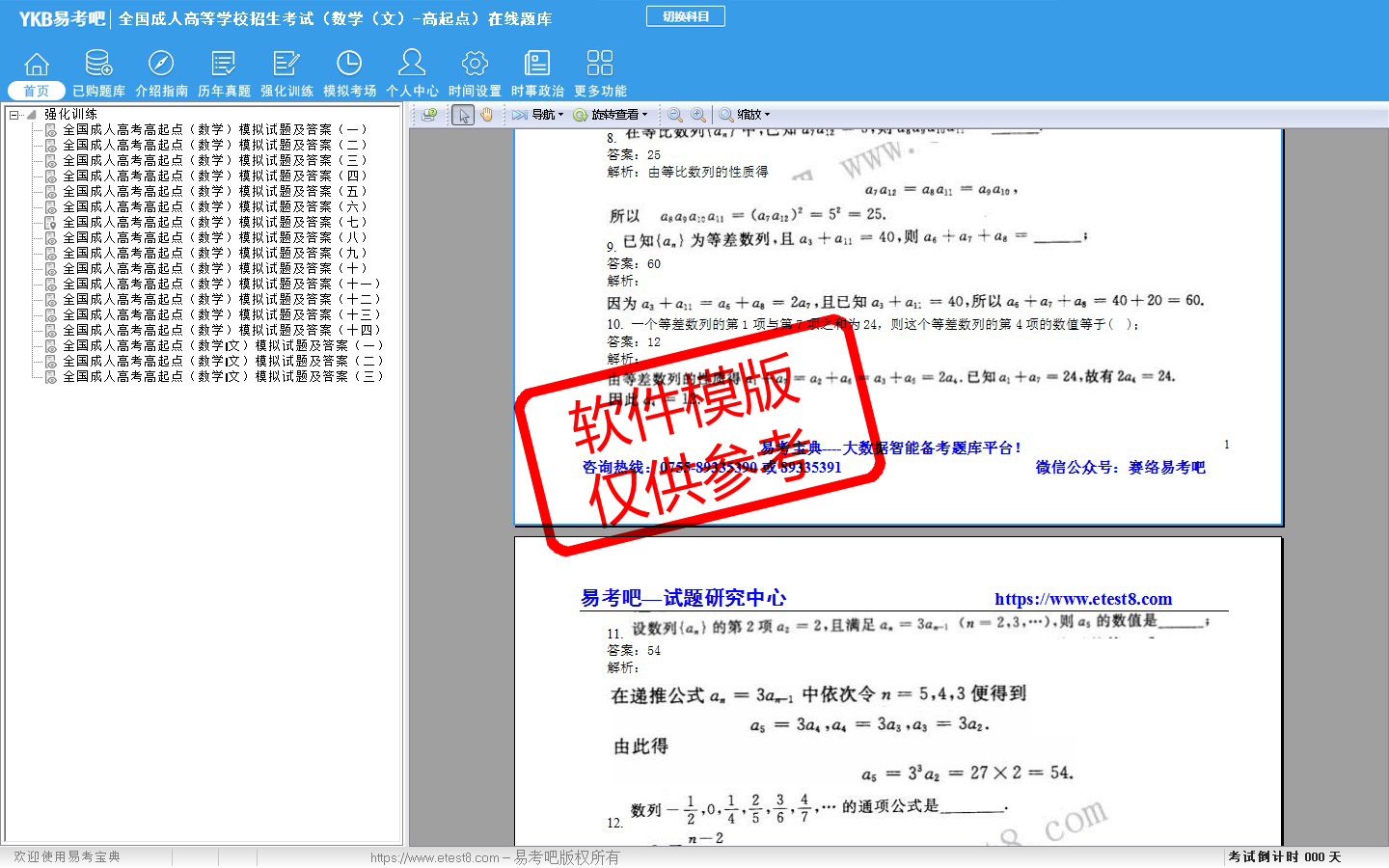 题量内容: 模拟试题库共有474道试题,可以任意组成模拟考场试卷练习5套,强化训练有17套,历届真题有10套,以及多条考试介绍和考试指南(辅导资料)。