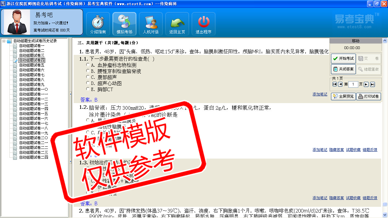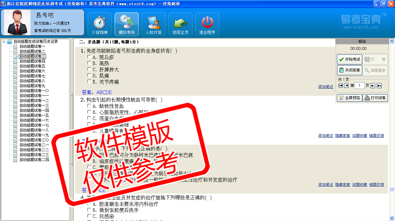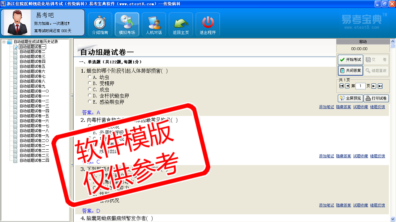 模拟试题库共有3320道试题,可以任意组成24套模拟试题。