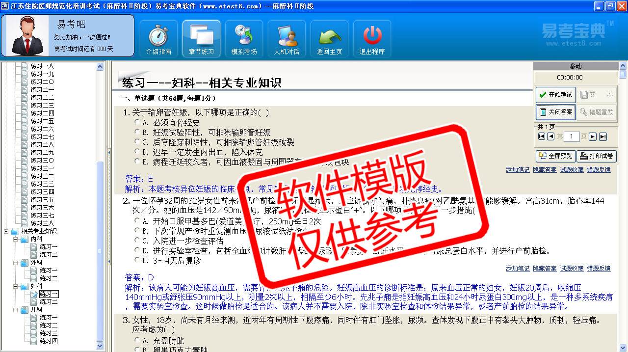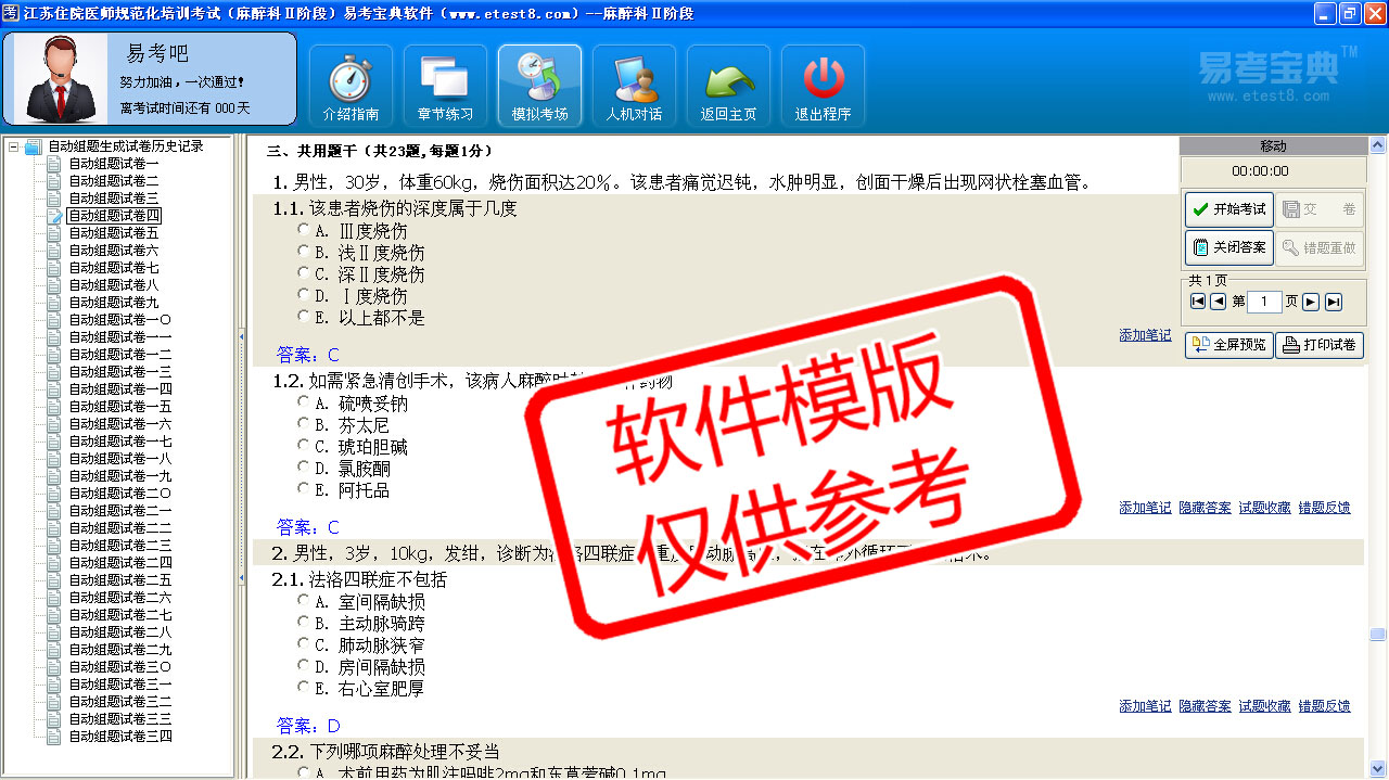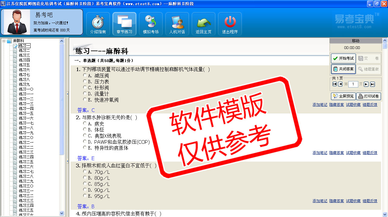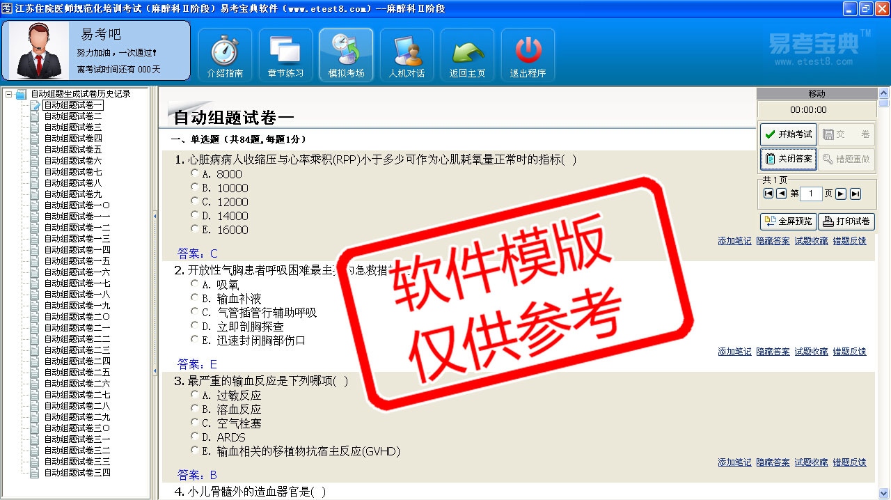模拟试题库共有4859道试题,可以任意组成34套模拟考场试卷,还有各知识点章节练习,以及多条考试介绍考试指南。