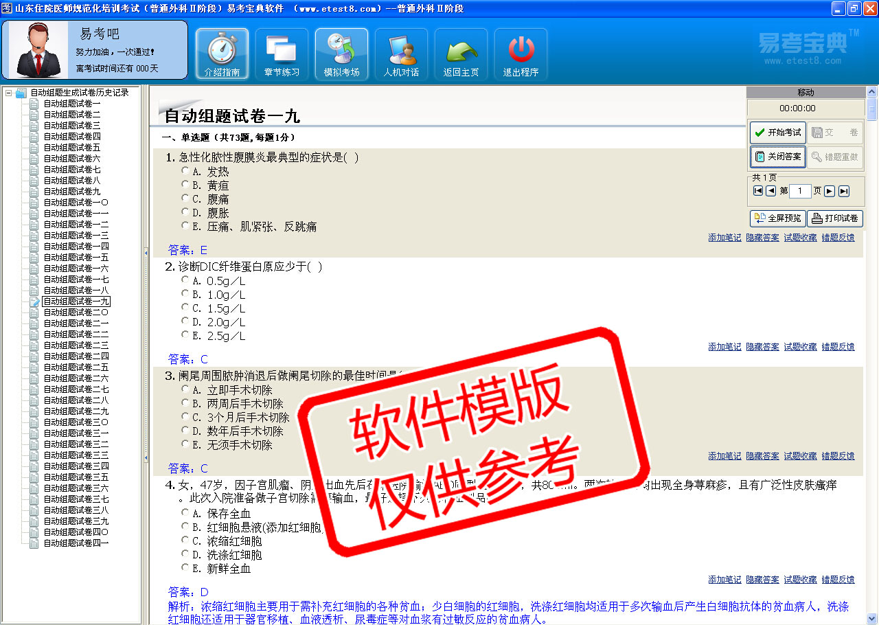 模拟试题库共有4193道试题,可以任意组成41套模拟考场试卷,还有多条考试介绍和考试指南。