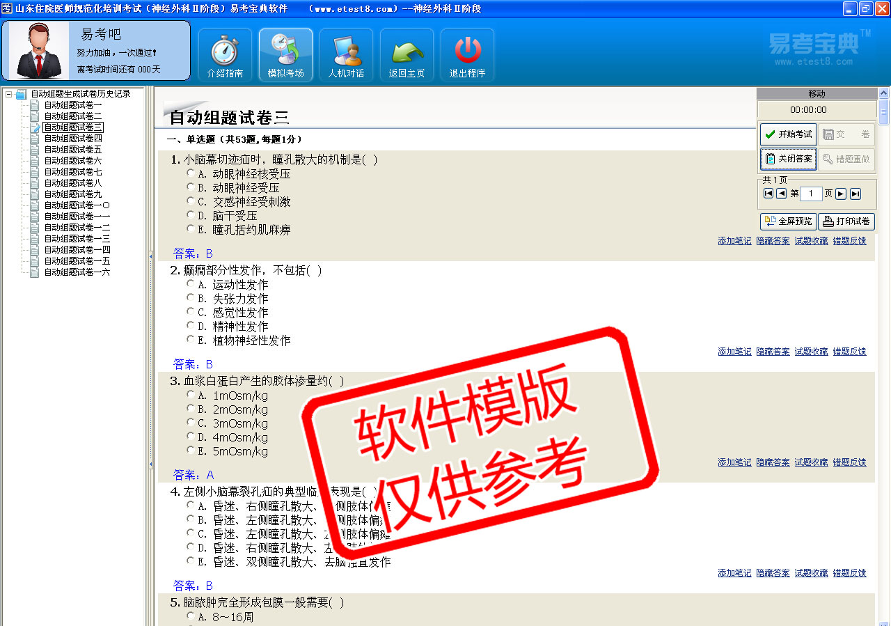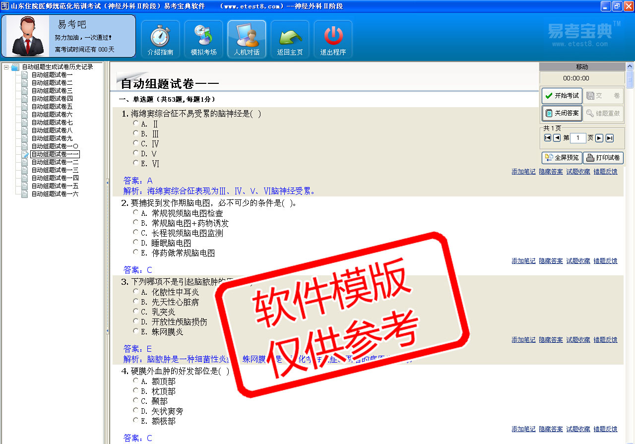 模拟试题库共有890道试题,可以任意组成9套模拟试题。