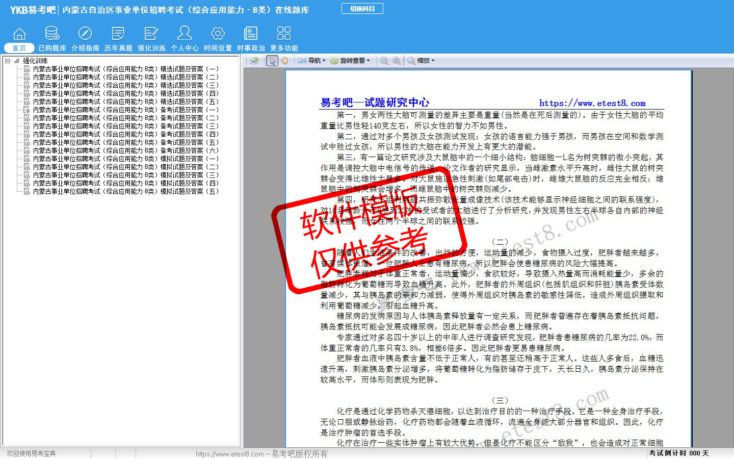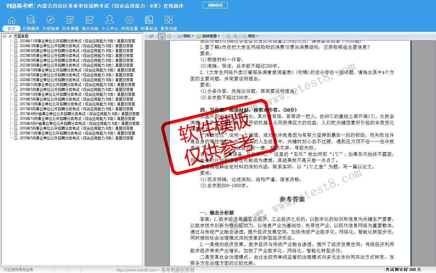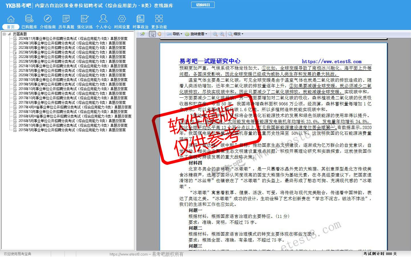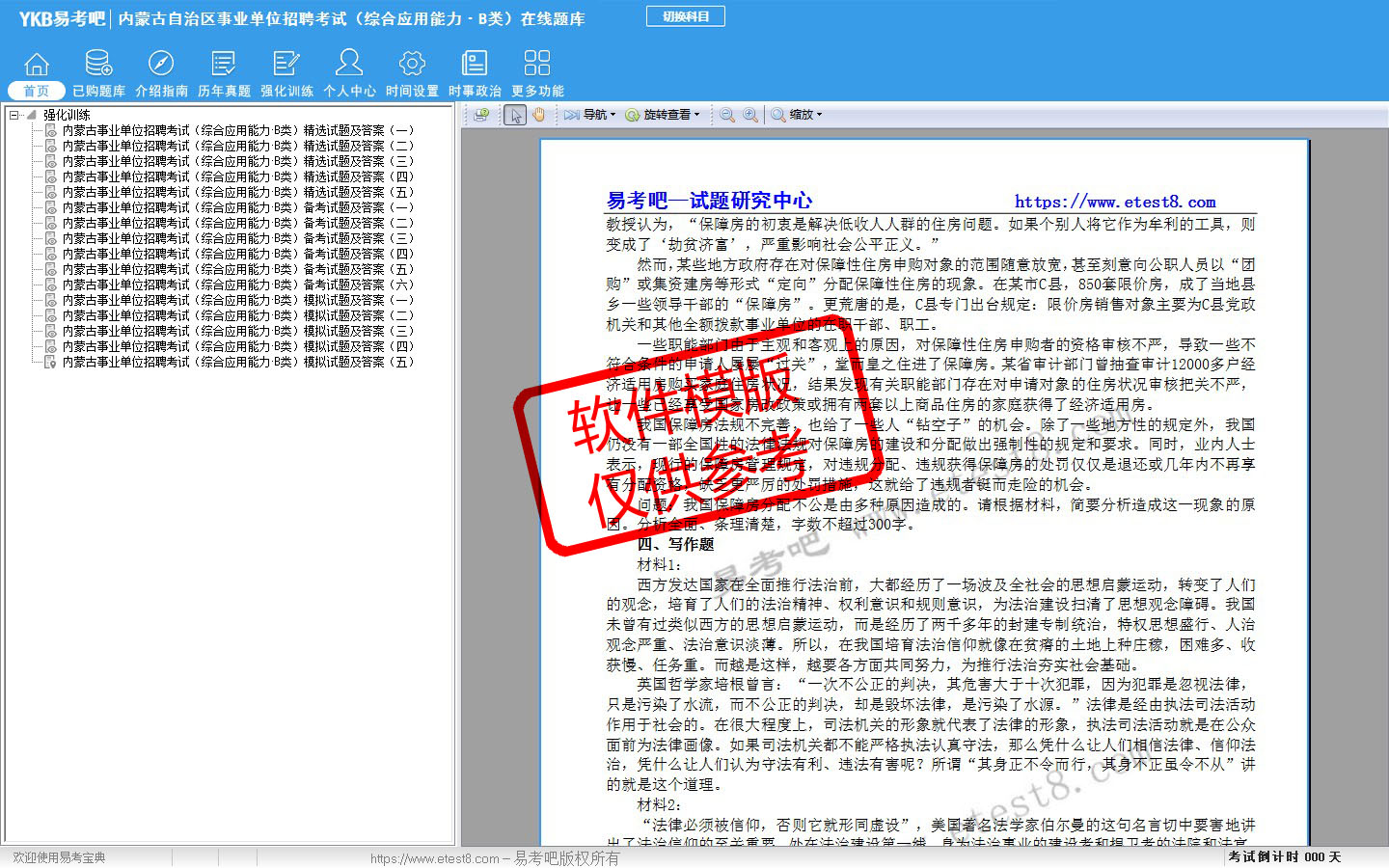 题量内容: 模拟试题库共有171道试题,历届真题有11套,以及多条考试介绍和考试指南(辅导资料)。