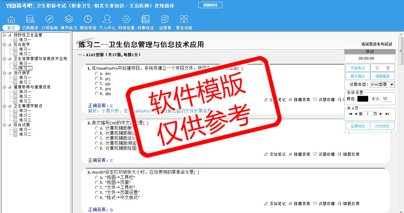 题量内容: 模拟试题库共有1403道试题,可以任意组成模拟考场试卷练习14套,另有各章节的练习试题多套,以及多条考试介绍和考试指南(辅导资料)。