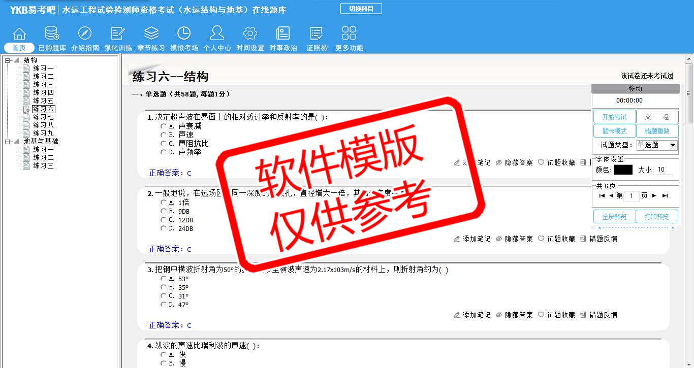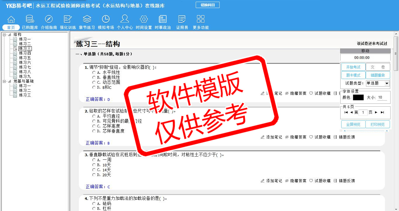 题量内容: 模拟试题库共有1237道试题,可以任意组成模拟考场试卷练习12套,强化训练有9套,另有各章节的练习试题多套,以及多条考试介绍和考试指南(辅导资料)。