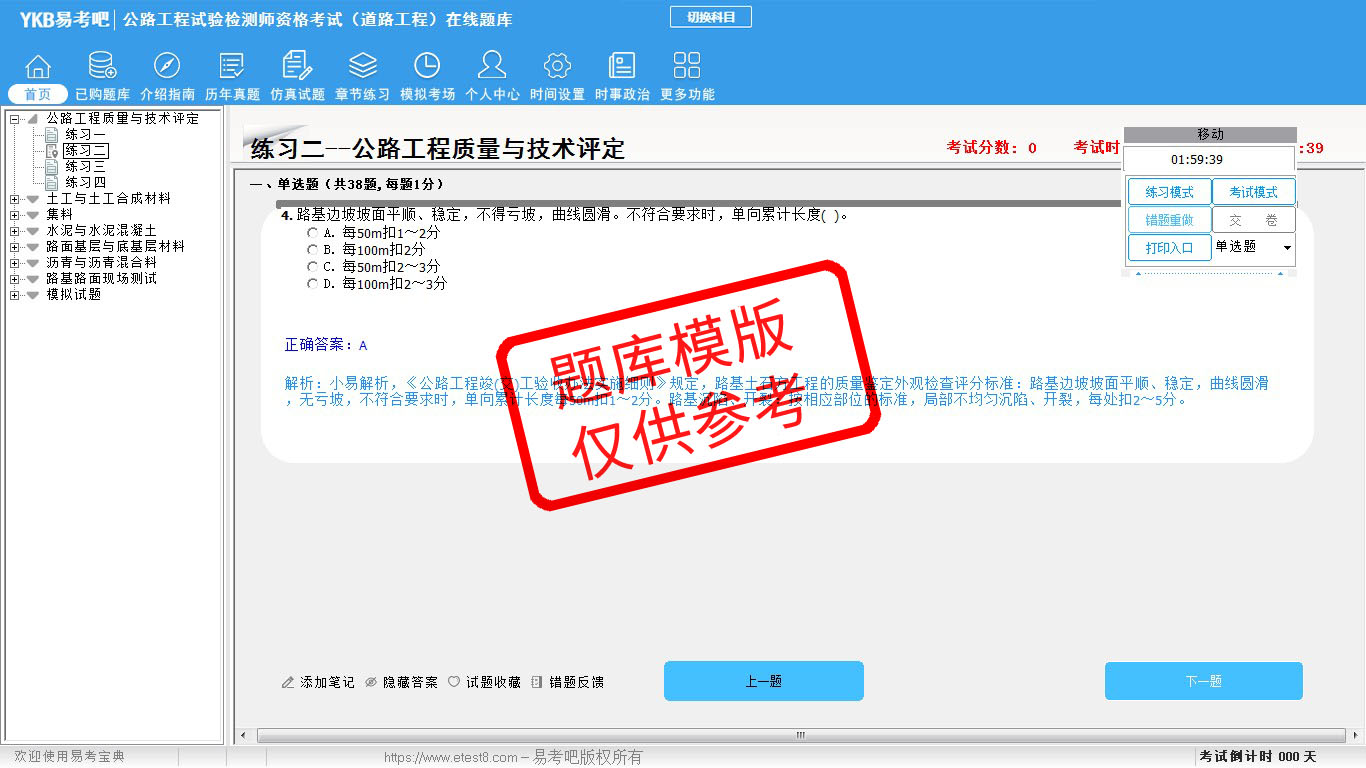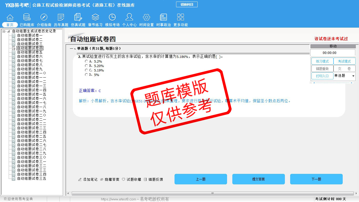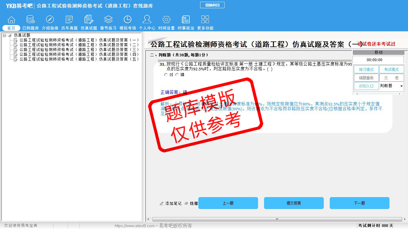 公路工程试验检测师资格考试(道路工程)仿真试题及答案(二)