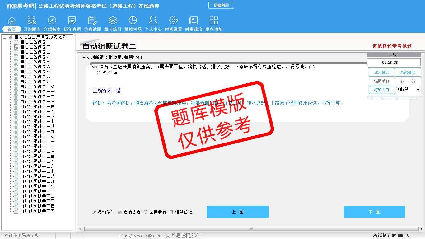 题量内容: 模拟试题库共有3590道试题,可以任意组成模拟考场试卷练习35套,仿真试题有5套,历届真题有7套,另有各章节的练习试题多套,以及多条考试介绍和考试指南(辅导资料)。