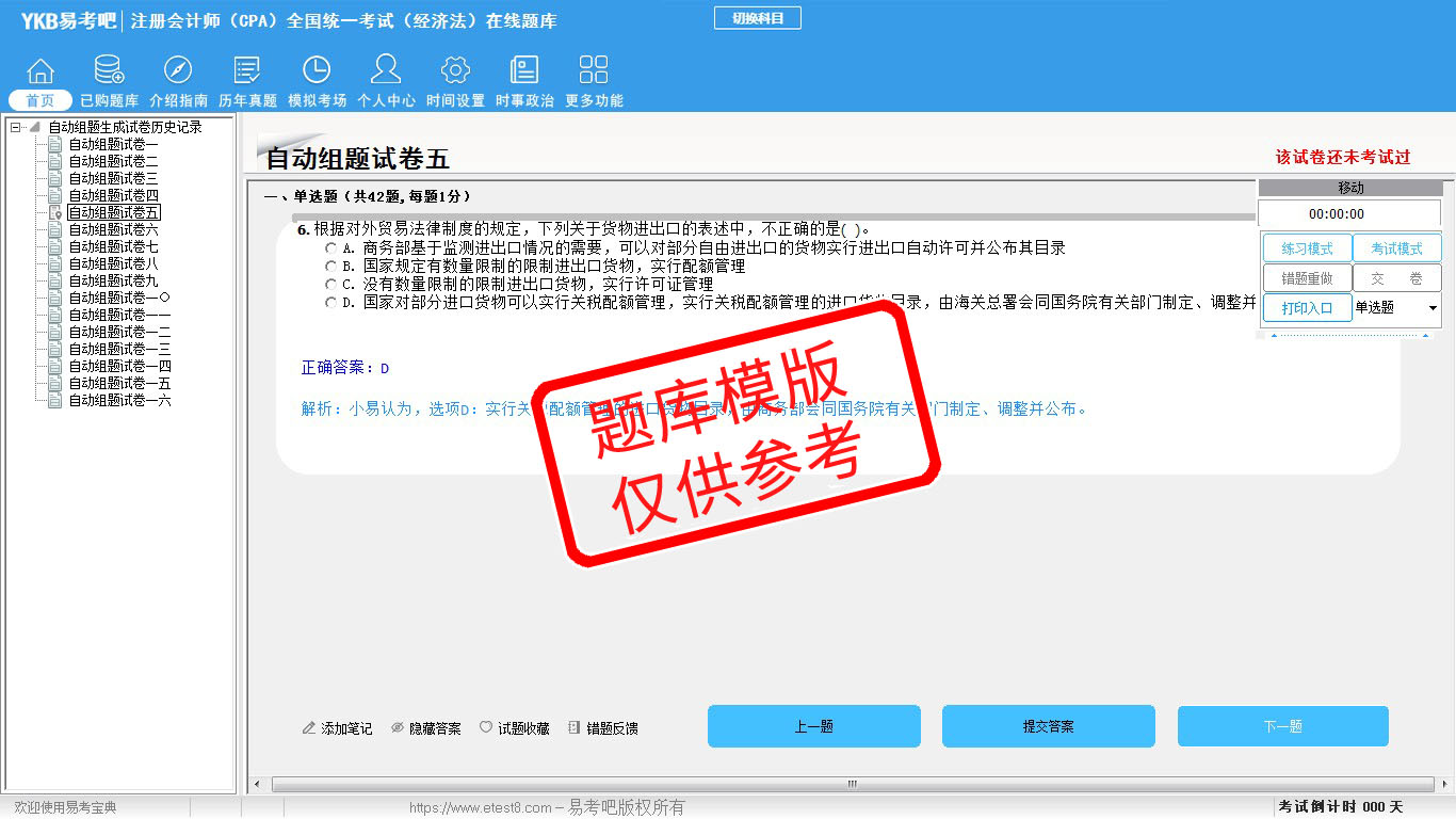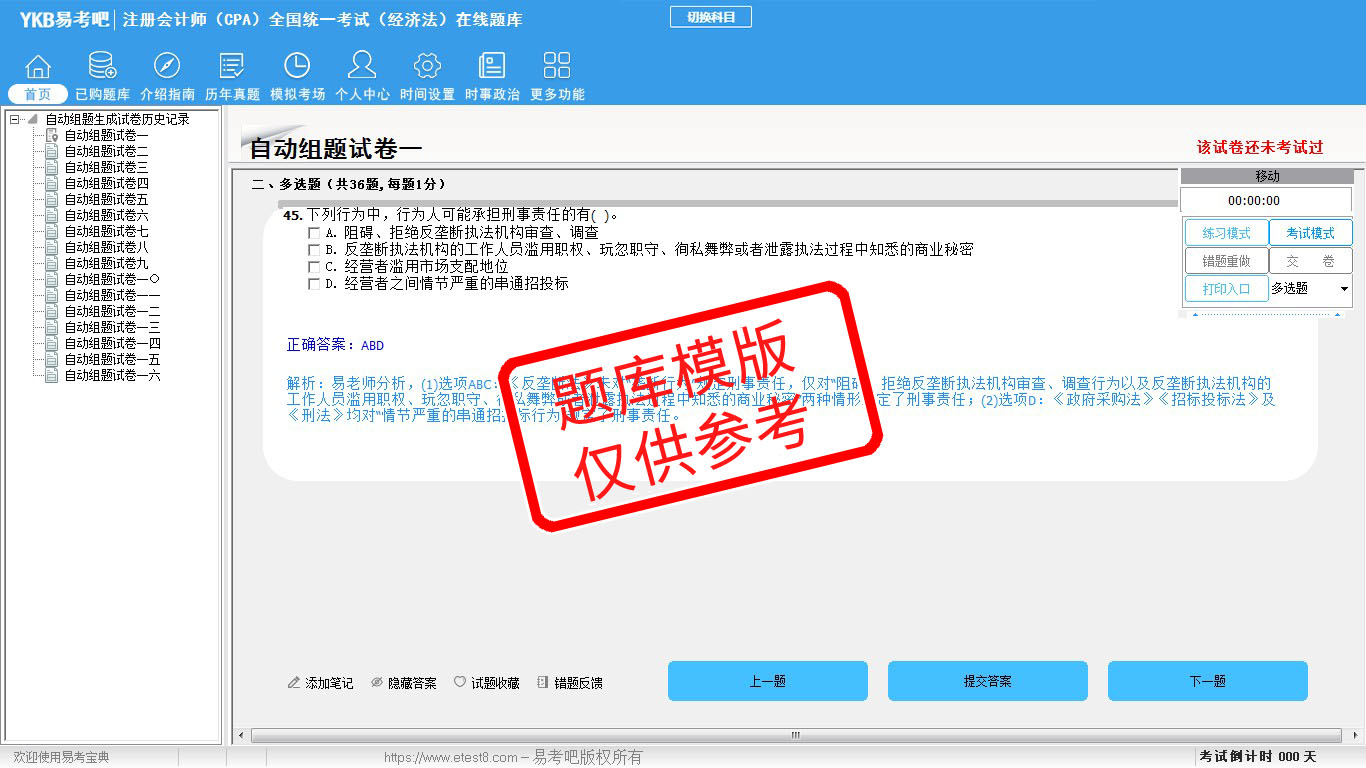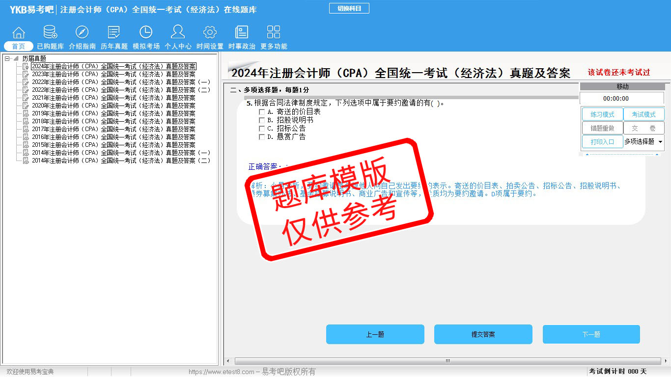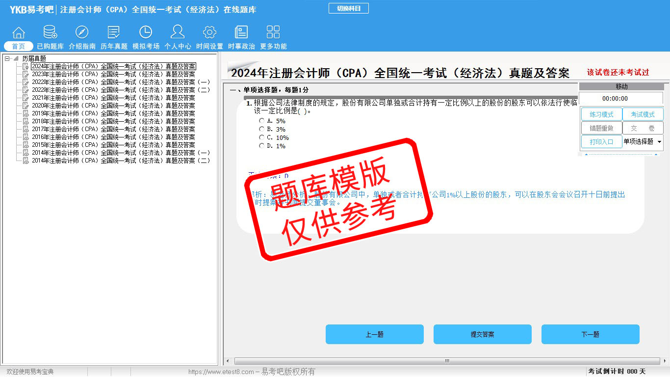 题量内容: 模拟试题库共有1589道试题,可以任意组成模拟考场试卷练习16套,历届真题有13套,以及多条考试介绍和考试指南(辅导资料)。