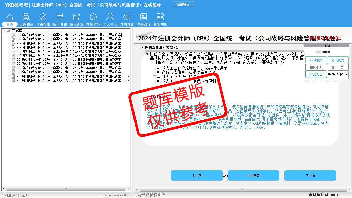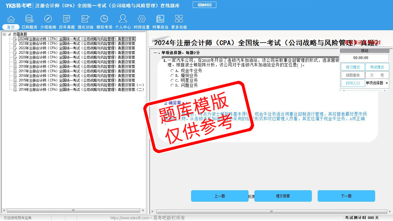2024年注册会计师(CPA)全国统一考试(公司战略与风险管理)真题及答案