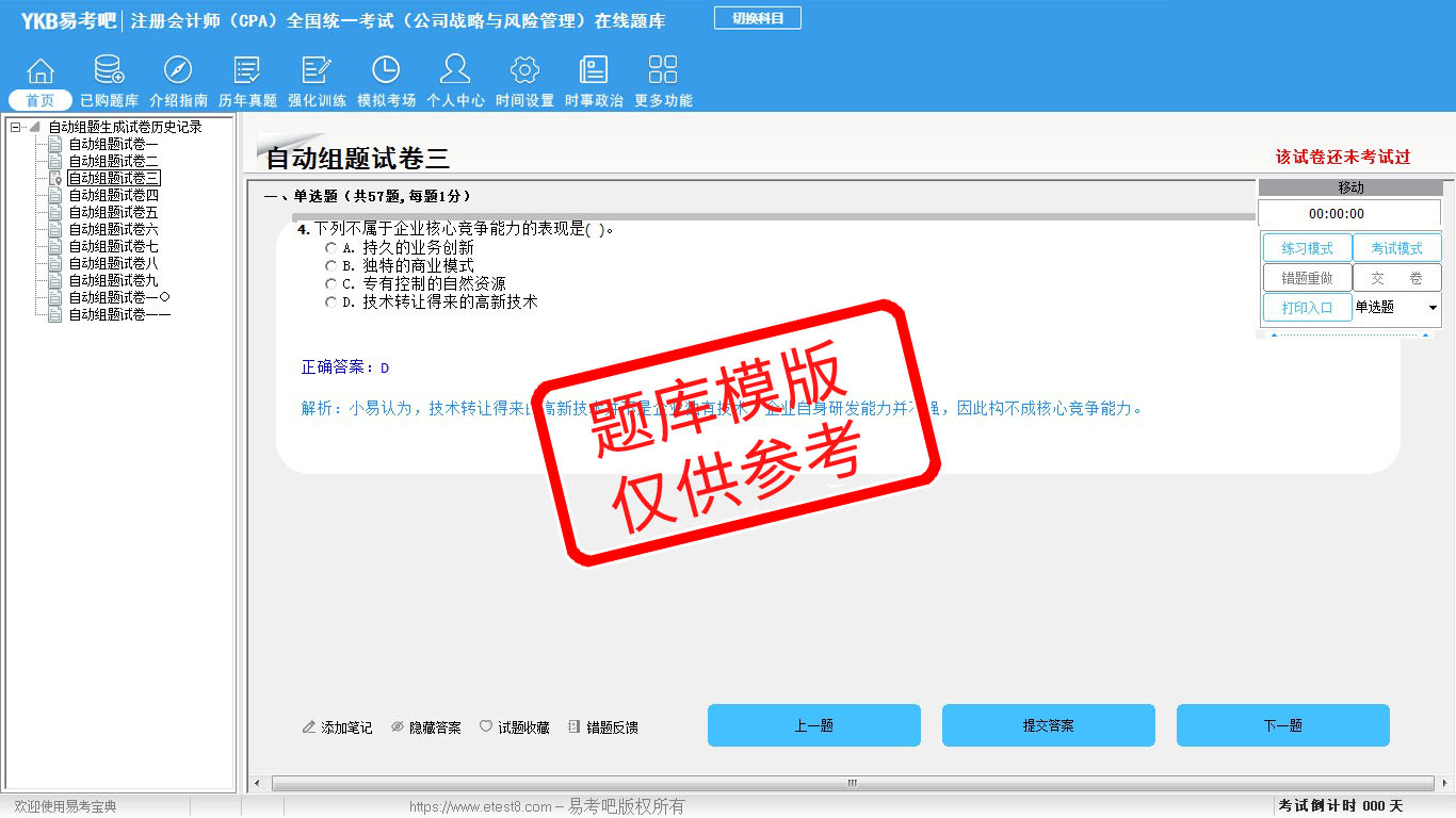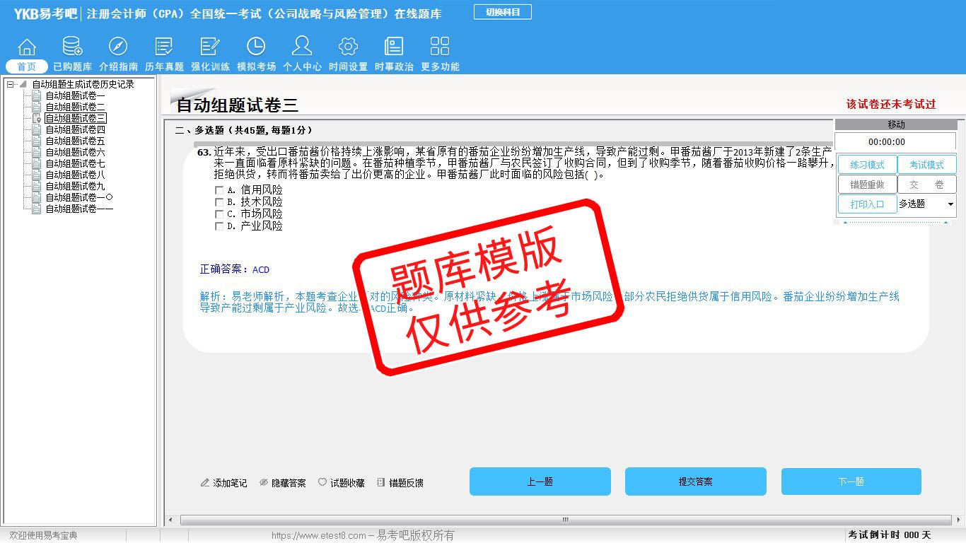 题量内容: 模拟试题库共有1107道试题,可以任意组成模拟考场试卷练习11套,强化训练有8套,历届真题有12套,以及多条考试介绍和考试指南(辅导资料)。