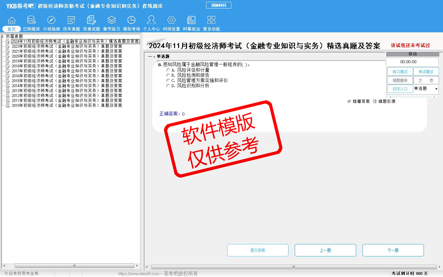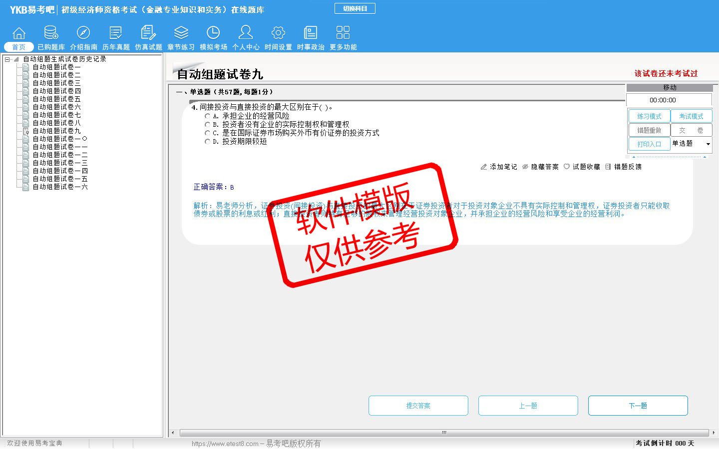 题量内容: 模拟试题库共有1576道试题,可以任意组成模拟考场试卷练习16套,仿真试题有11套,历届真题有14套,另有各章节的练习试题多套,以及多条考试介绍和考试指南(辅导资料)。