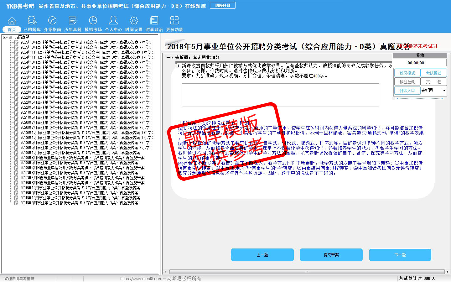 2018年5月贵州省事业单位公开招聘分类考试(综合应用能力·D类)真题及答案