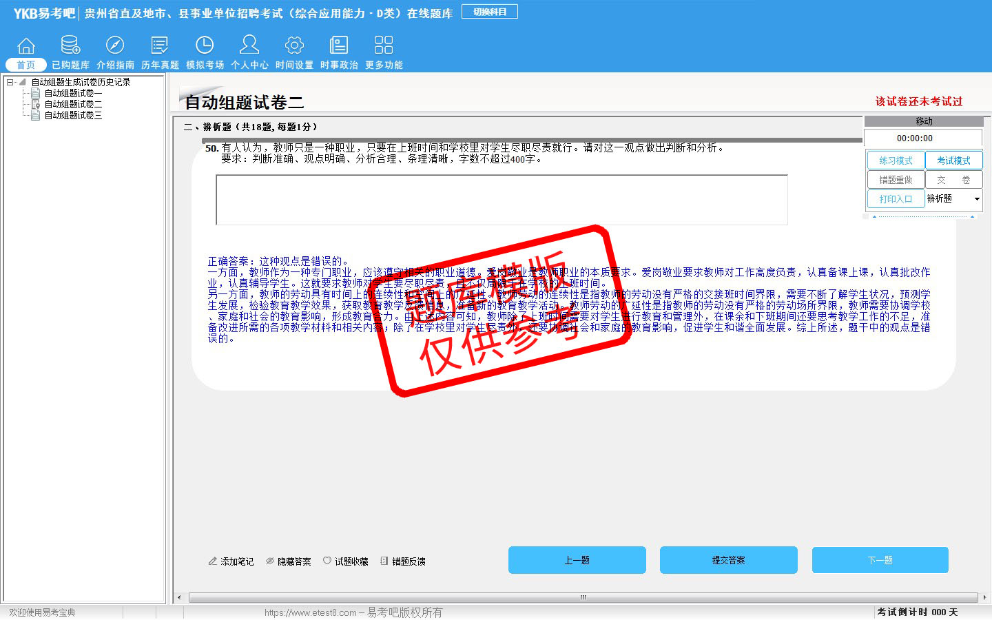 2020年7月贵州省事业单位公开招聘分类考试(综合应用能力·D类)真题及答案(中学)
