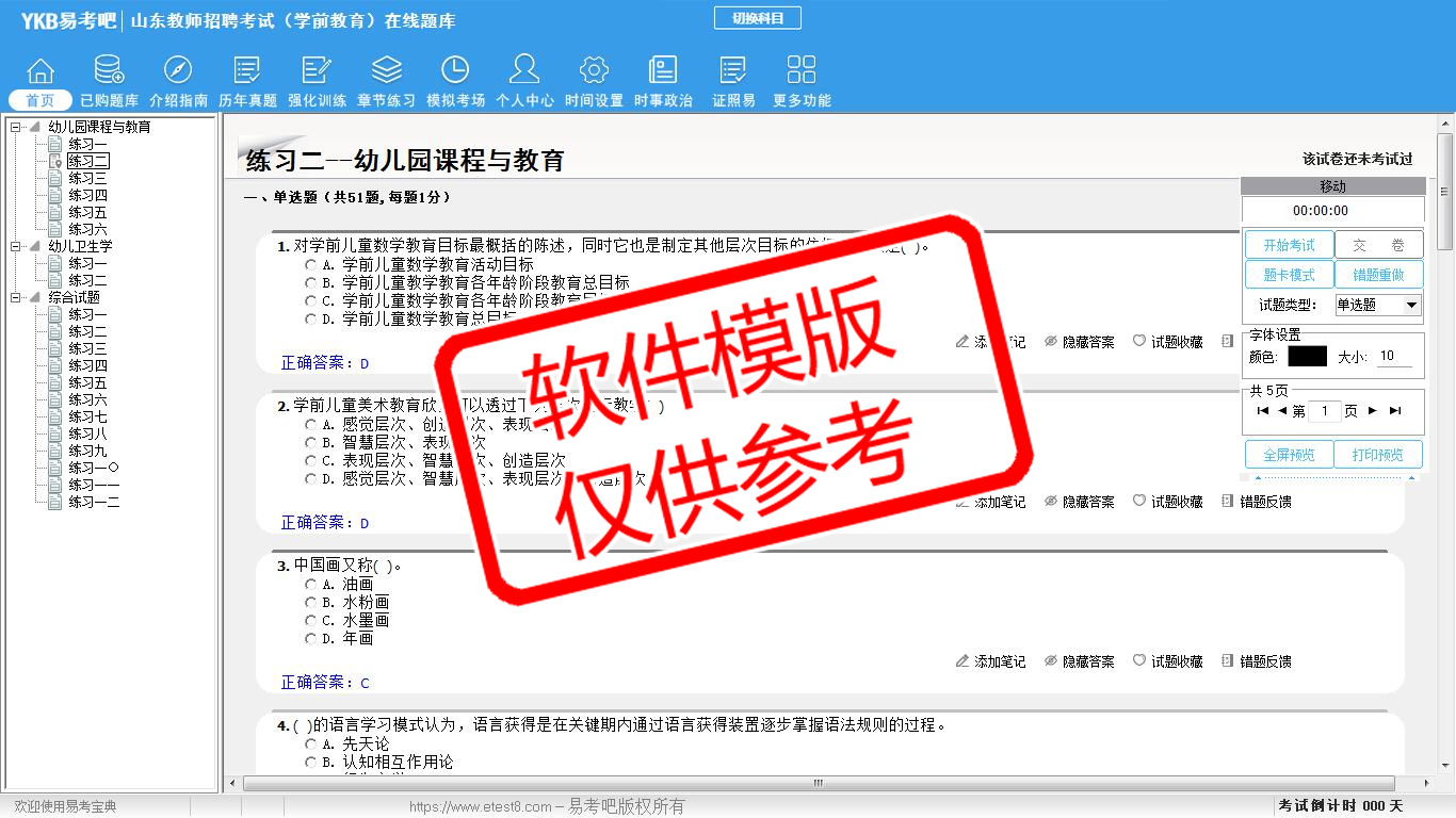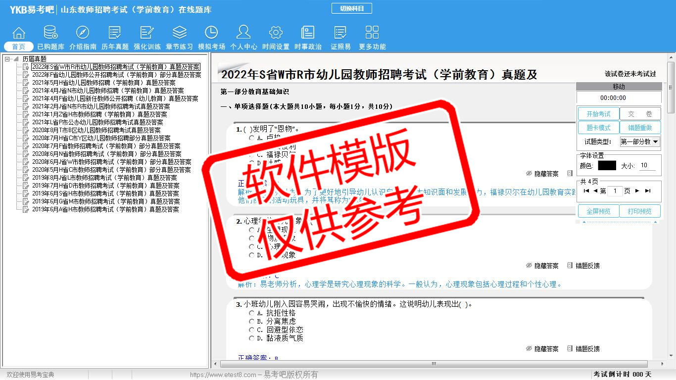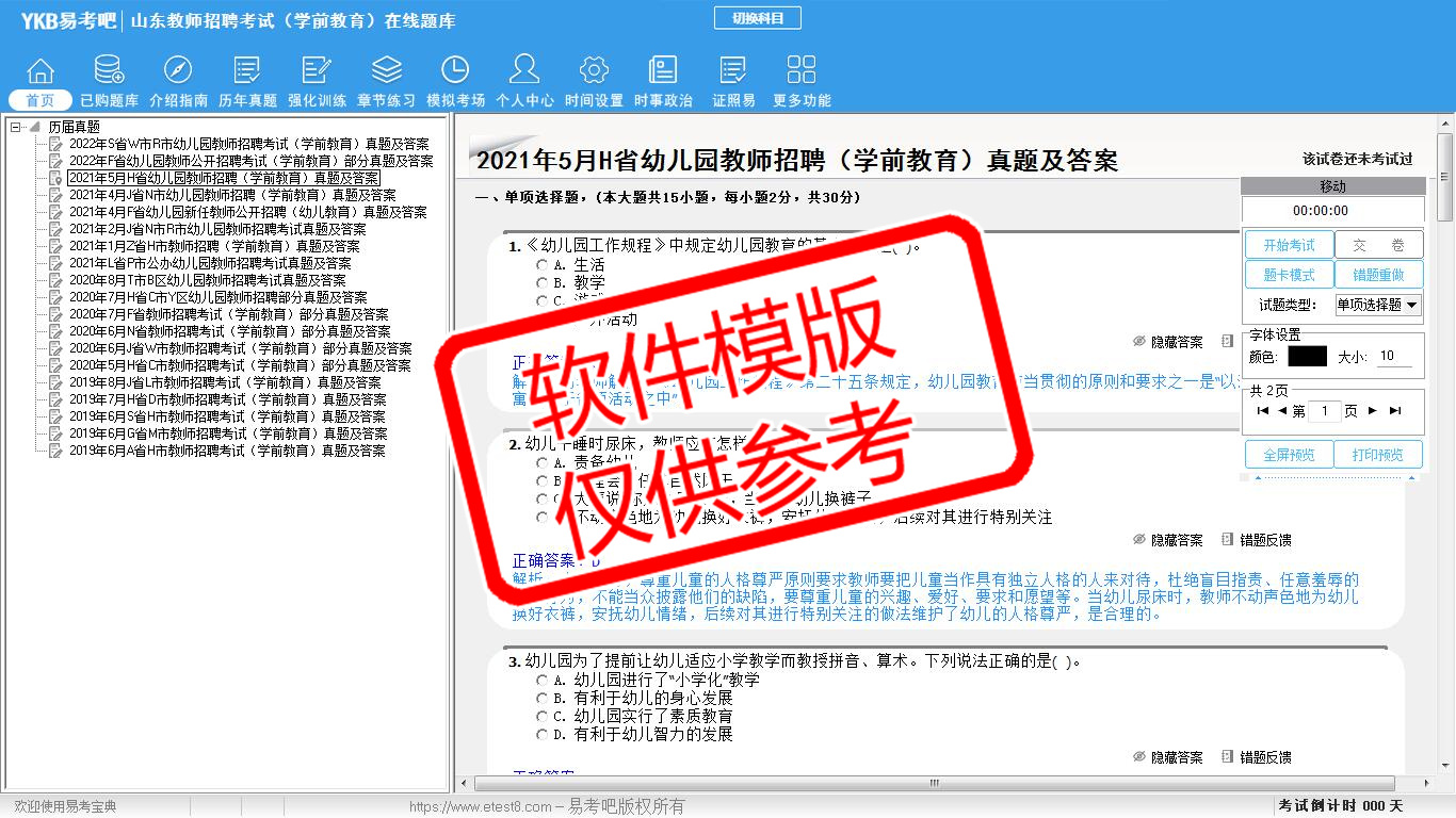 模拟试题库共有2261道试题,可以任意组成模拟考场试卷练习22套,历届真题有3套,另有各章节的练习试题多套,以及多条考试介绍和考试指南(辅导资料)。