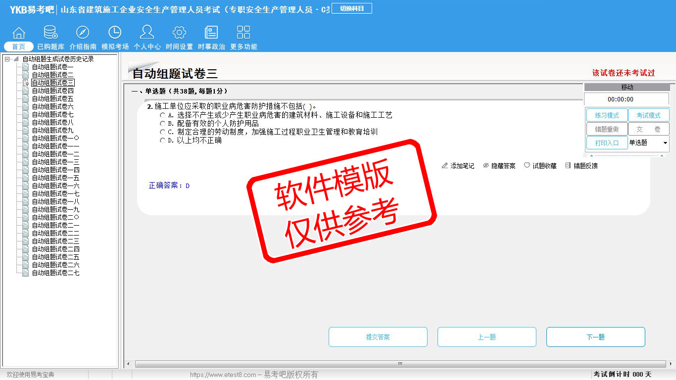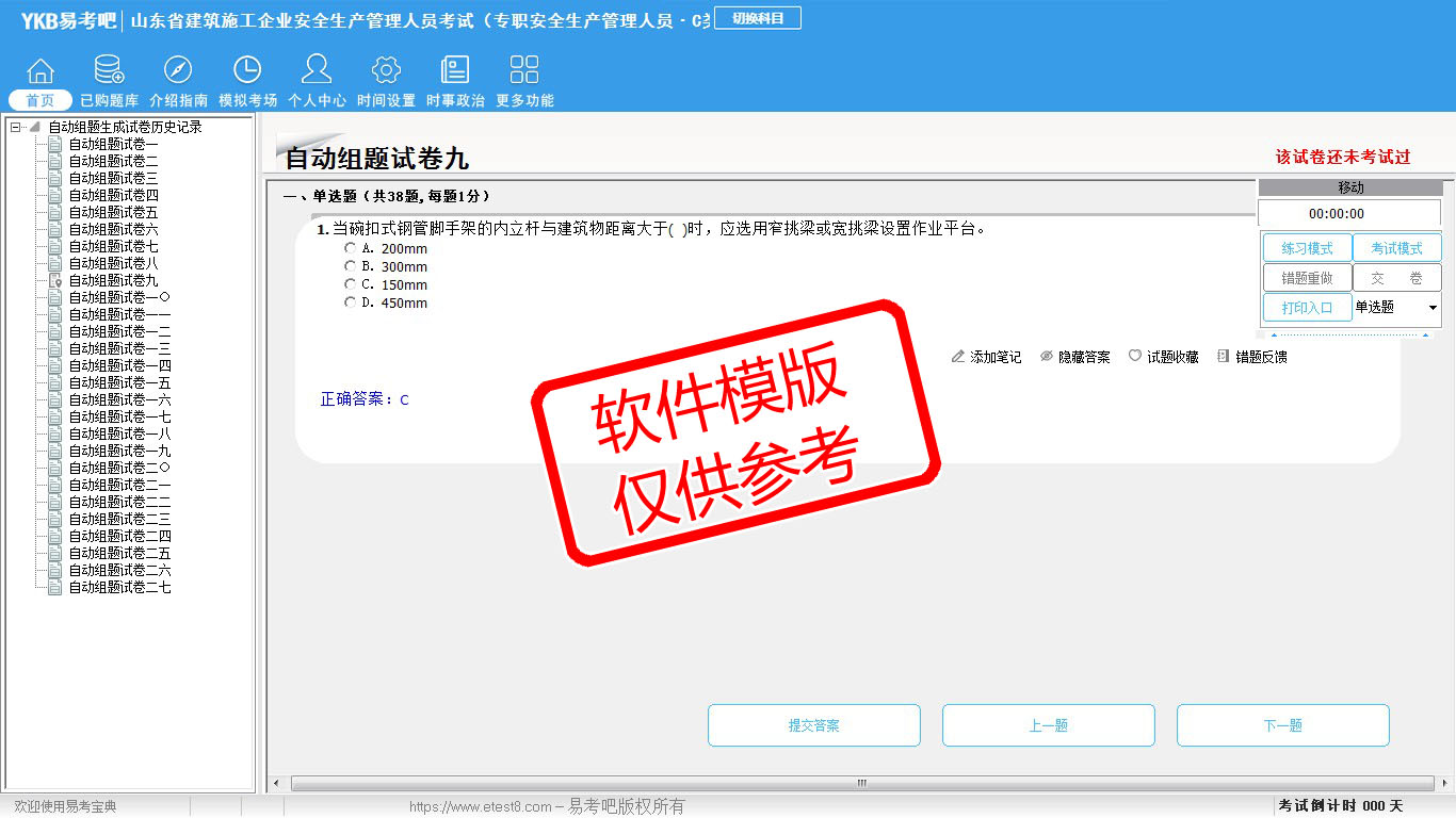 道试题,可以任意组成模拟考场试卷练习27套,以及多条考试介绍和考试指南(辅导资料)。