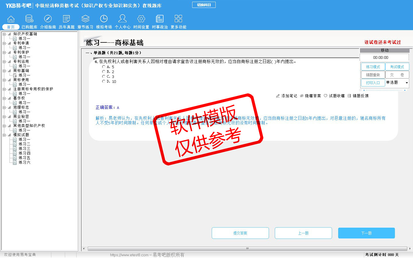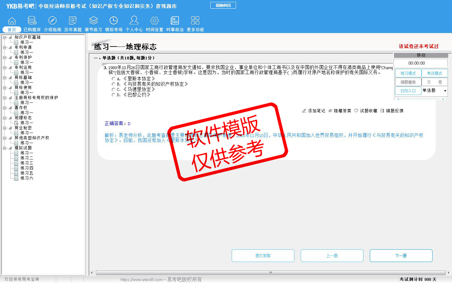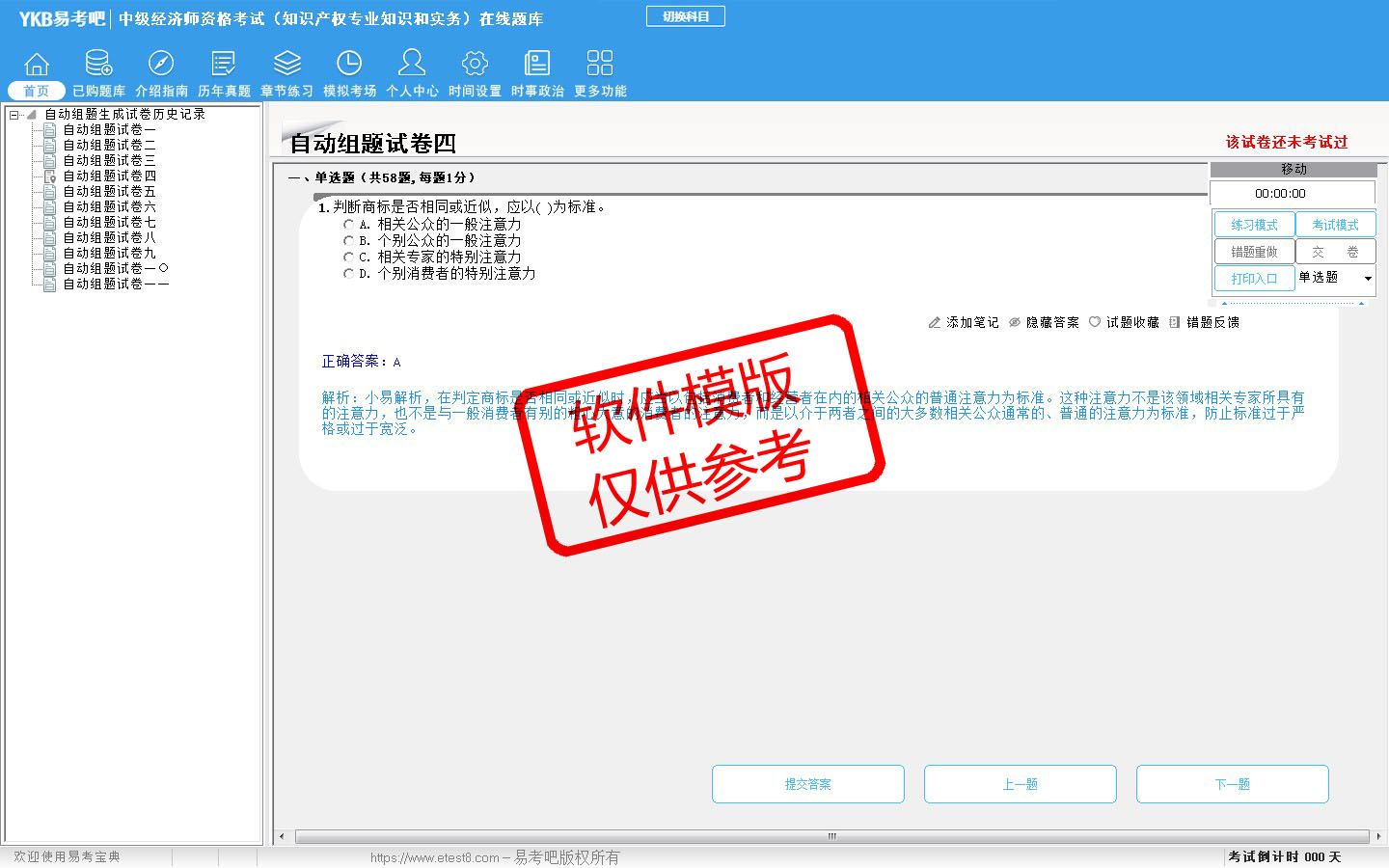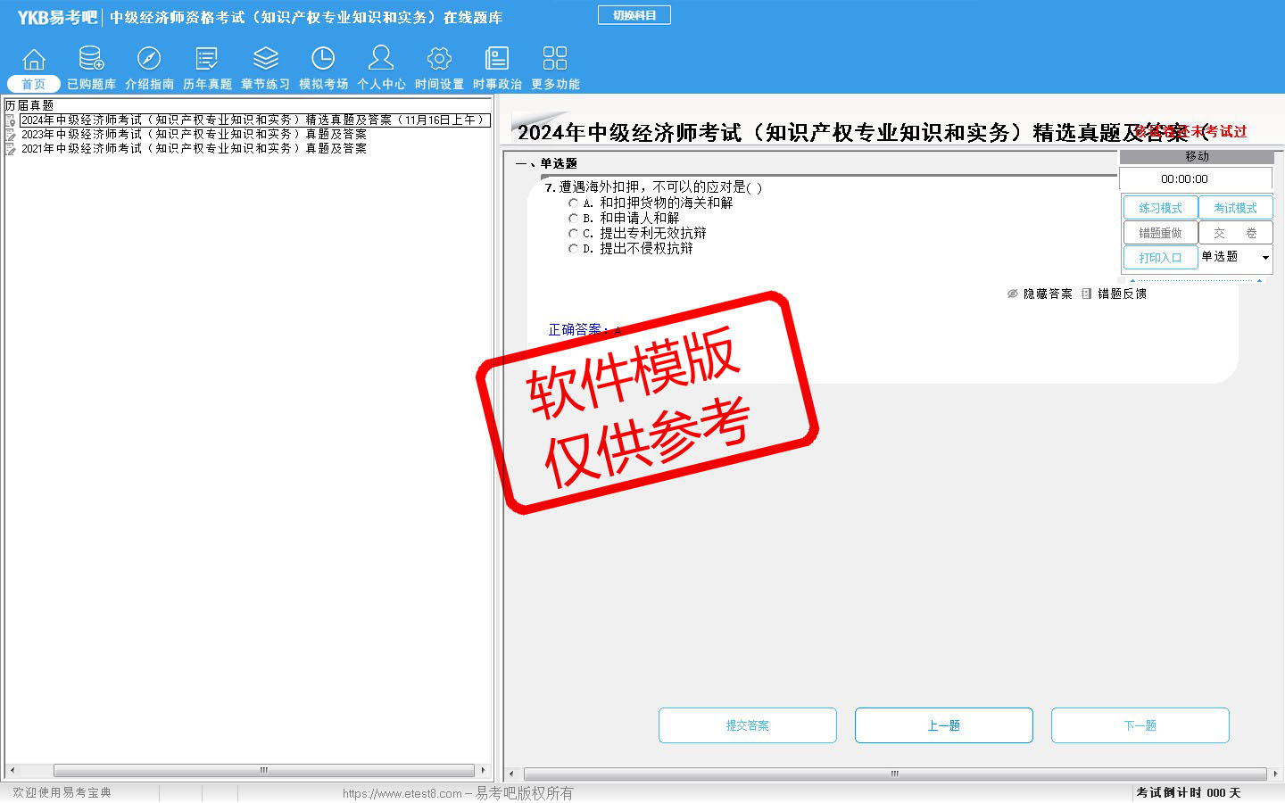 题量内容: 模拟试题库共有1166道试题,可以任意组成模拟考场试卷练习11套,历届真题有3套,另有各章节的练习试题多套,以及多条考试介绍和考试指南(辅导资料)。