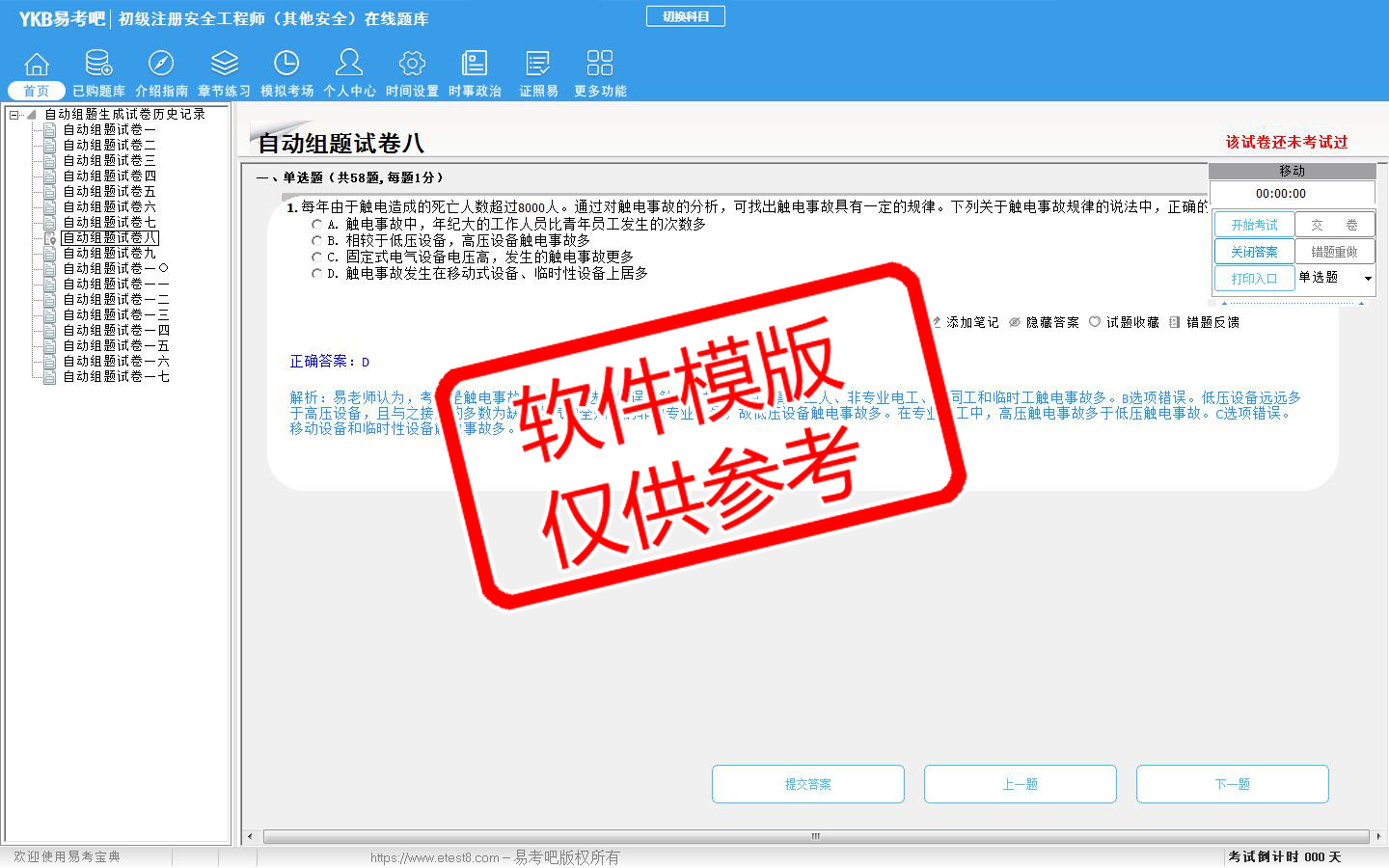 题量内容: 模拟试题库共有1731道试题,可以任意组成模拟考场试卷练习17套,另有各章节的练习试题多套,以及多条考试介绍和考试指南(辅导资料)。