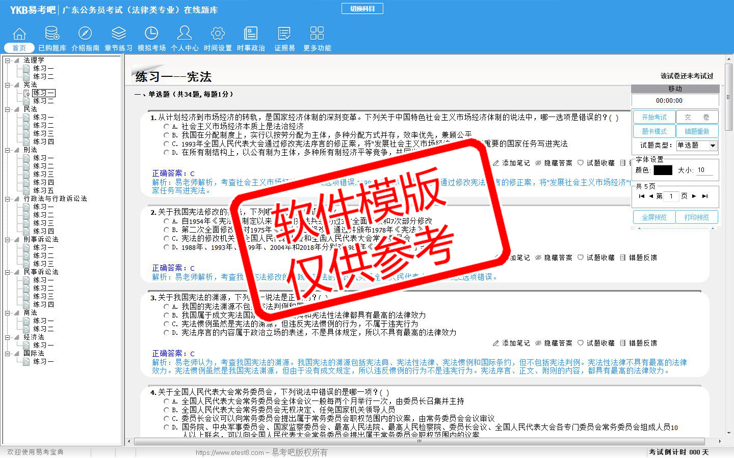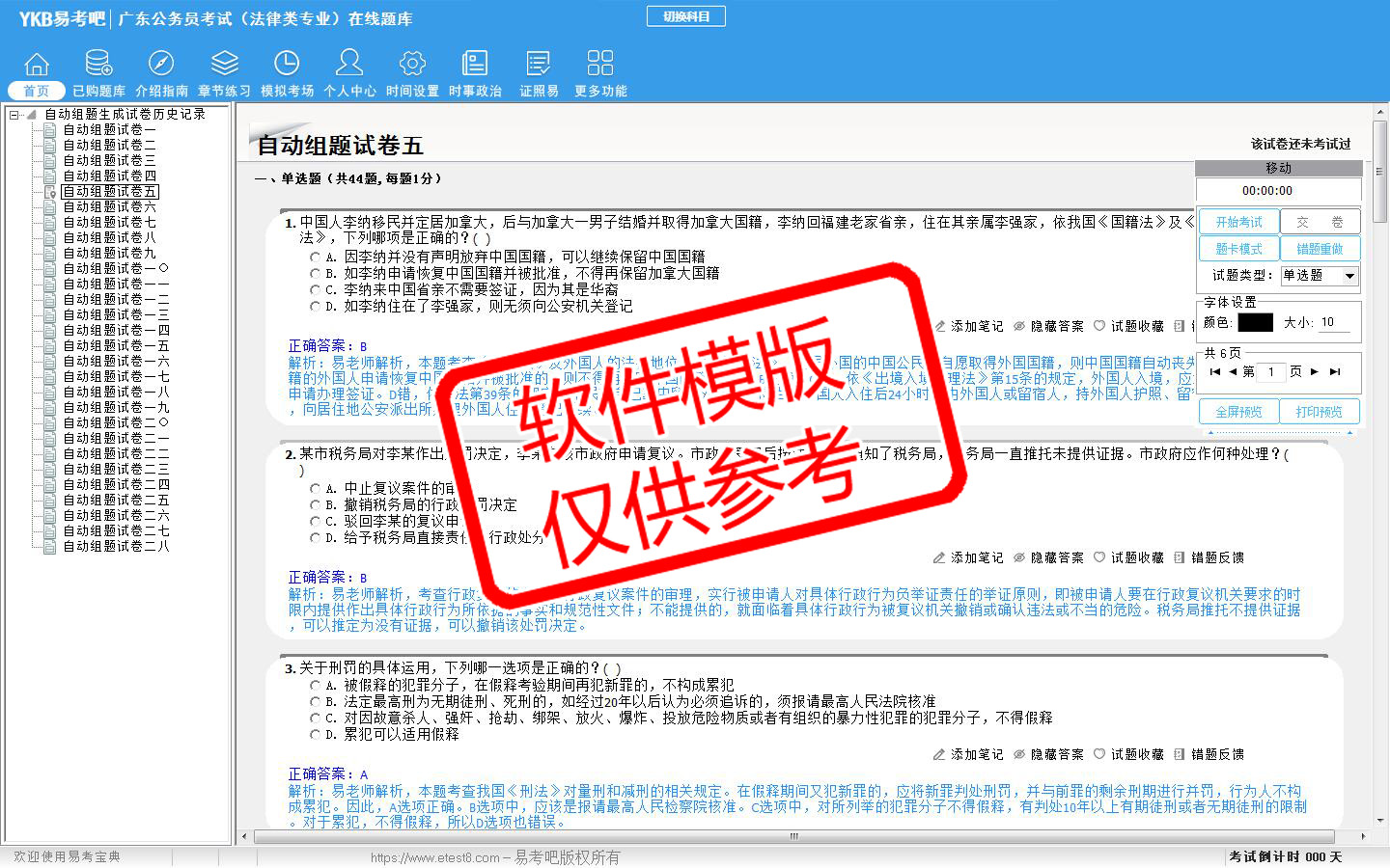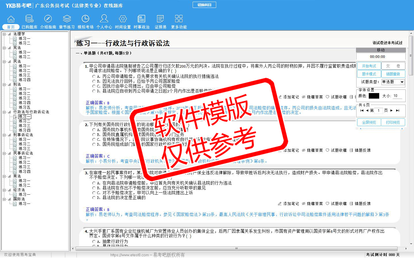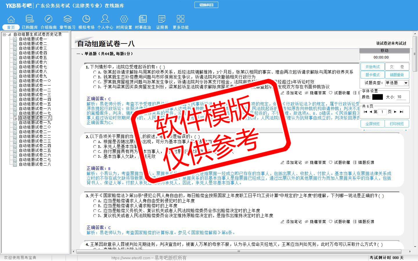 模拟试题库共有2395道试题,可以任意组成模拟考场试卷练习23套,历届真题有8套,另有各章节的练习试题多套,以及多条考试介绍和考试指南(辅导资料)。