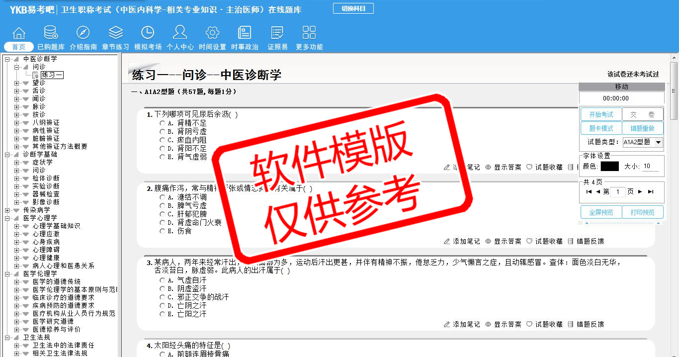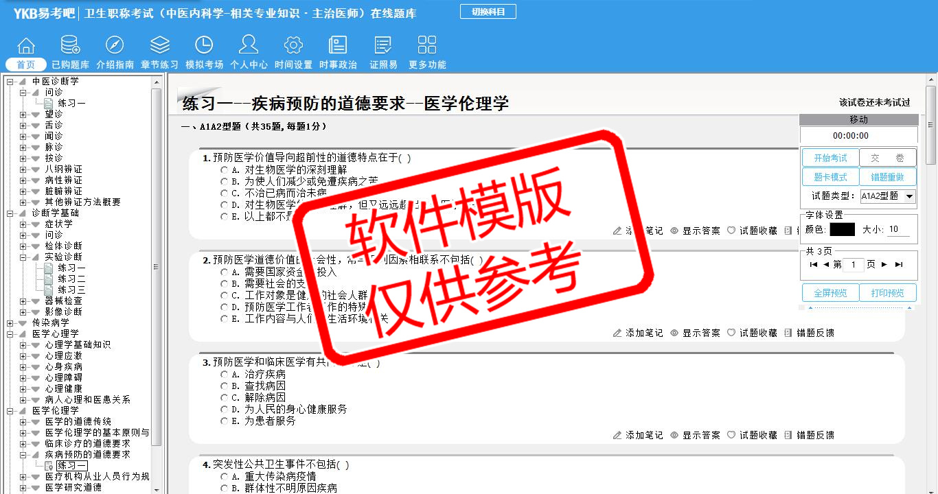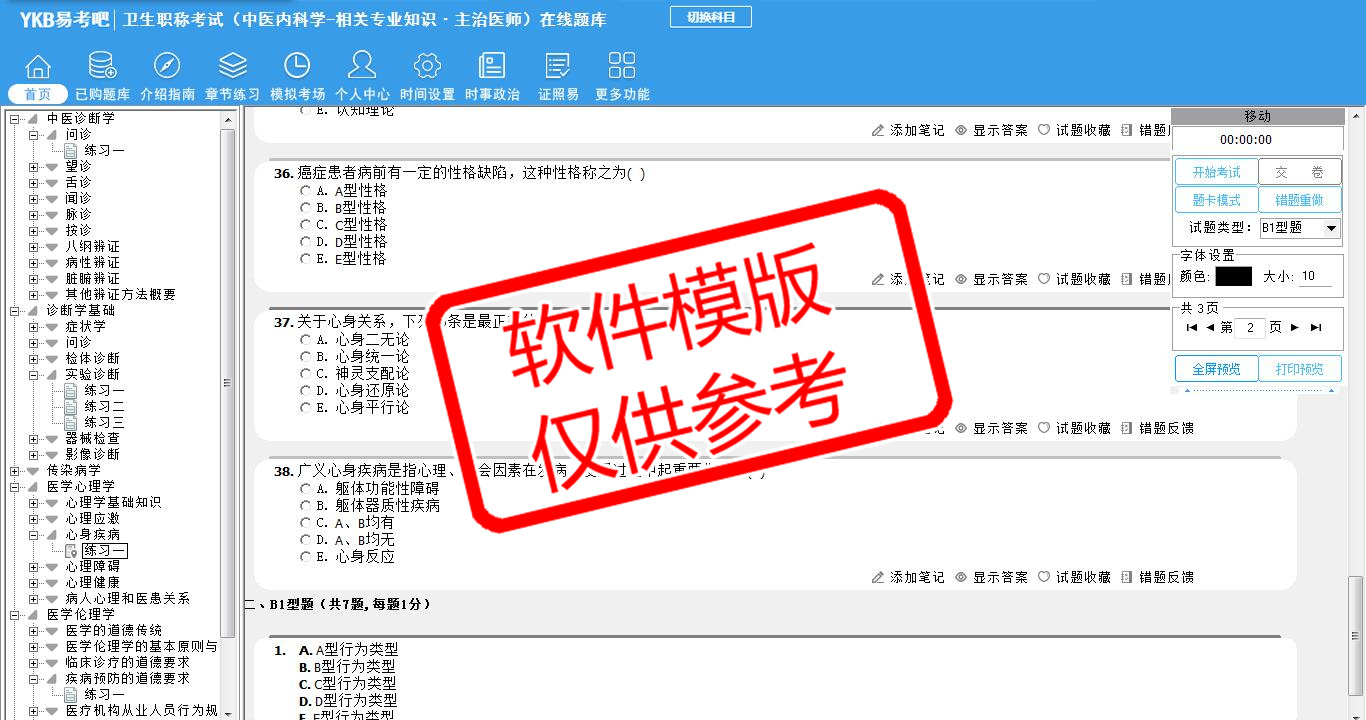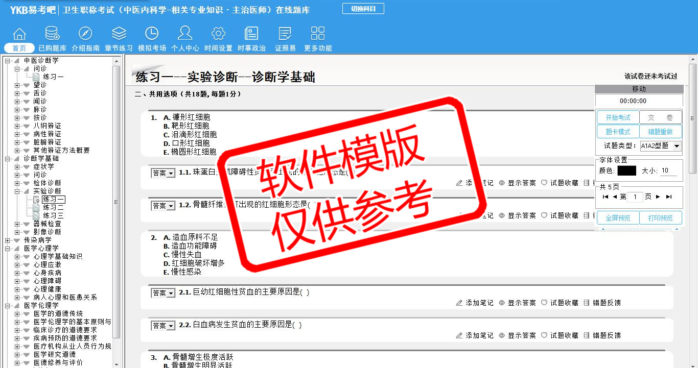 题量内容: 模拟试题库共有2561道试题,可以任意组成模拟考场试卷练习26套,另有各章节的练习试题多套,以及多条考试介绍和考试指南(辅导资料)。