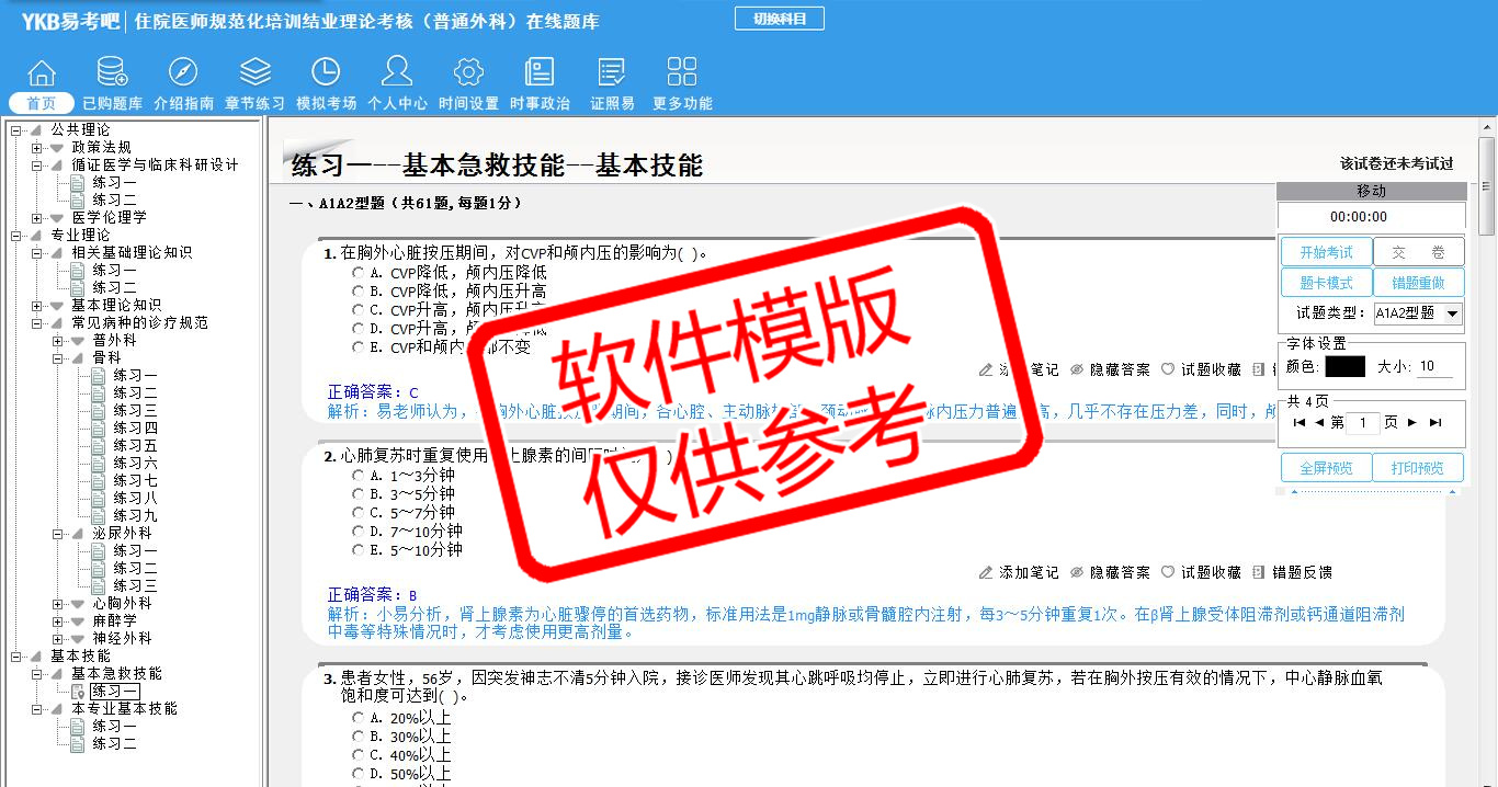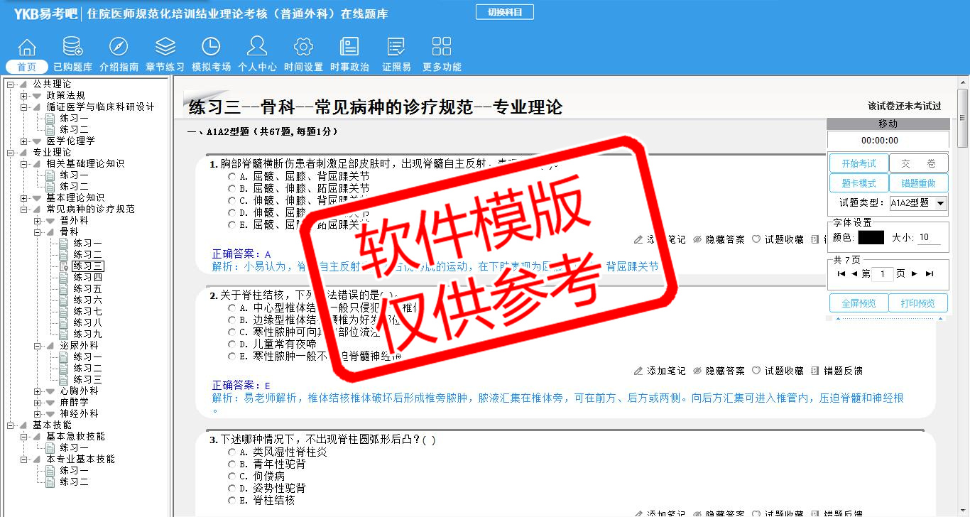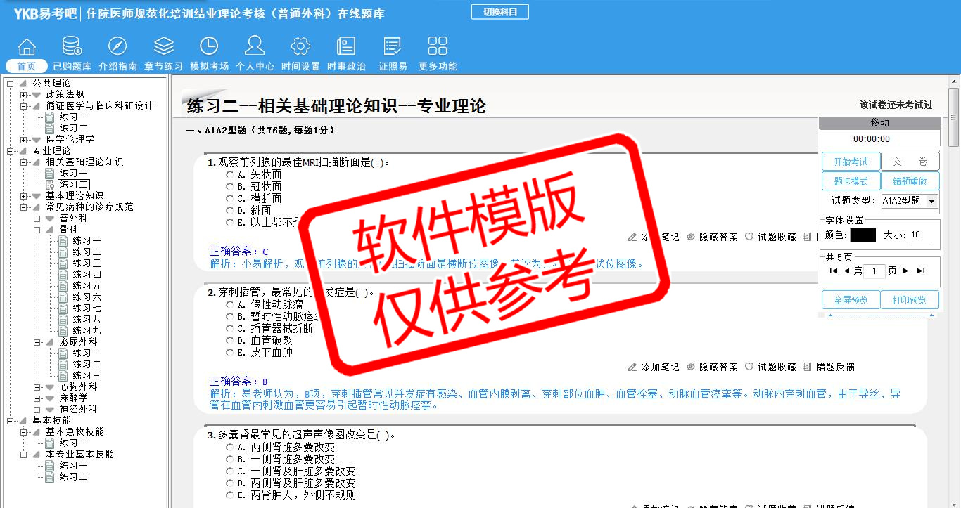 2026年住院医师规范化培训结业理论考核(普通外科)易考宝典软件(手机/网页版)是《易考宝典》考试系列软件之一,是专门为参加“住院医师职业资格考试”的朋友量身定做的自我测试系统,是个人、培训学校进行考试前训练、备考冲刺的提分技巧考试平台,题型丰富,图文并茂,内容全面,题库设计符合考试新大纲,海量试题。软件包括了富有价值的模拟考场,有计时打分等功能,就像亲身体会考试一样。
