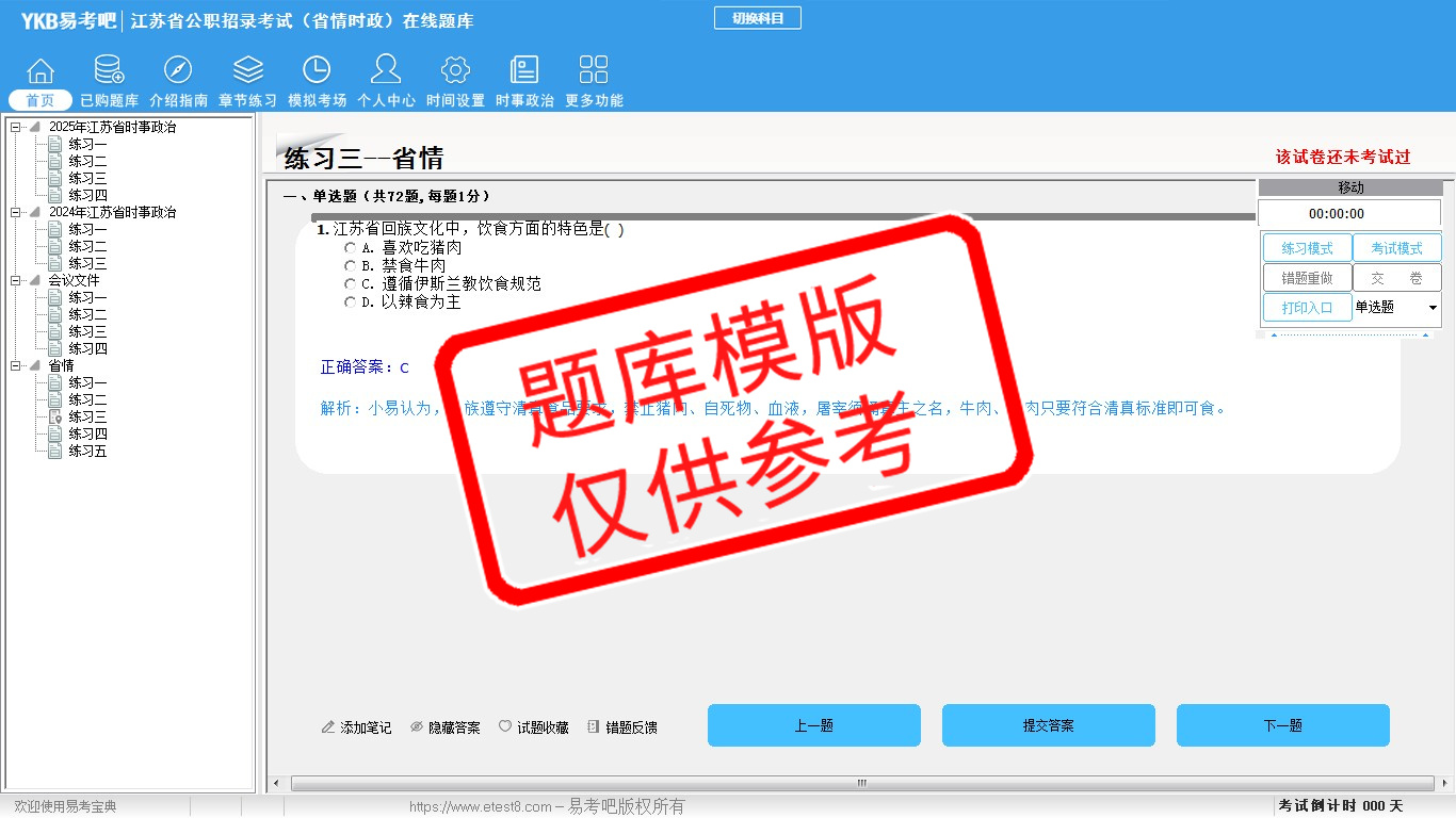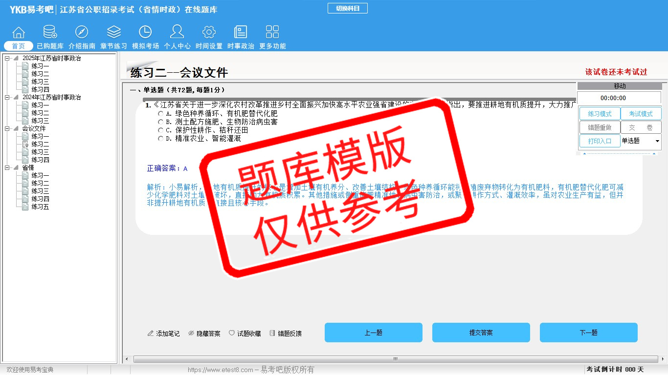 2026年江苏省公职招录考试时政热点(省情时政)易考宝典软件(手机/网页版)是《易考宝典》考试系列软件之一,是专门为参加“时政省情职业资格考试”的朋友量身定做的自我测试系统,是个人、培训学校进行考试前训练、备考冲刺的提分技巧考试平台,题型丰富,图文并茂,内容全面,题库设计符合考试新大纲,海量试题。软件包括了富有价值的模拟考场,有计时打分等功能,就像亲身体会考试一样。