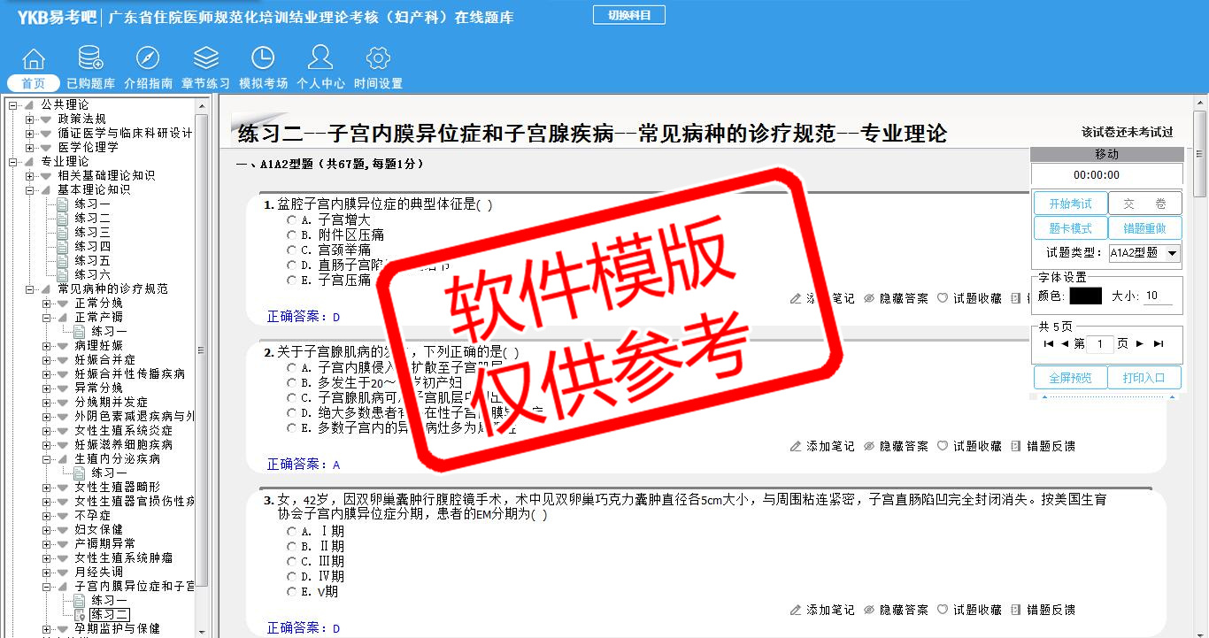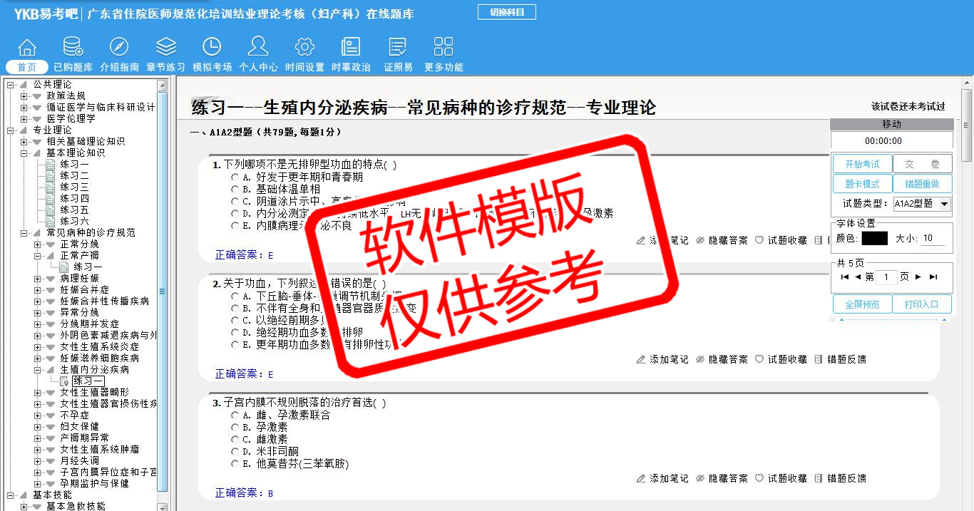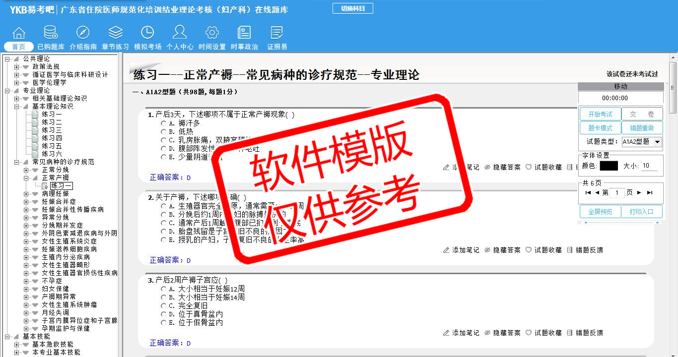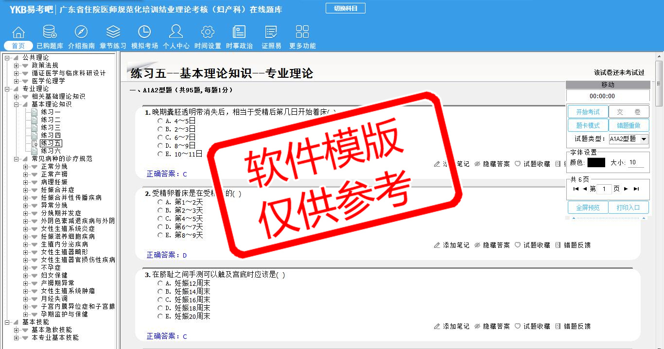 2026年广东省住院医师规范化培训结业理论考核(妇产科)易考宝典软件(手机/网页版)是《易考宝典》考试系列软件之一,是专门为参加“住院医师职业资格考试”的朋友量身定做的自我测试系统,是个人、培训学校进行考试前训练、备考冲刺的提分技巧考试平台,题型丰富,图文并茂,内容全面,题库设计符合考试新大纲,海量试题。软件包括了富有价值的模拟考场,有计时打分等功能,就像亲身体会考试一样。