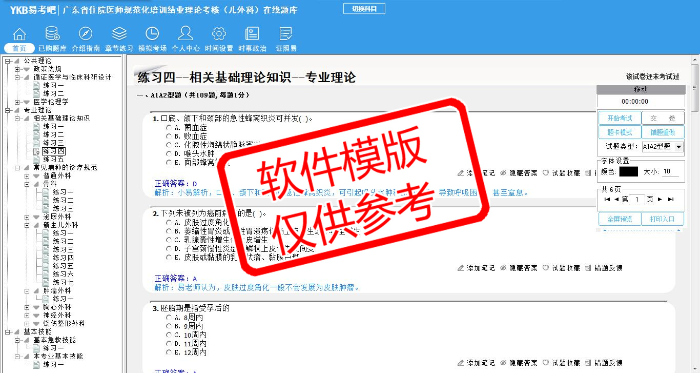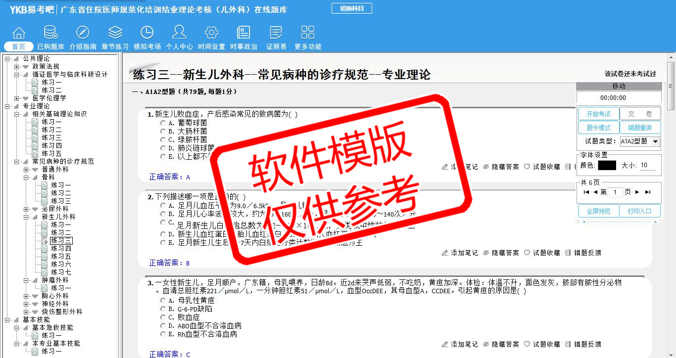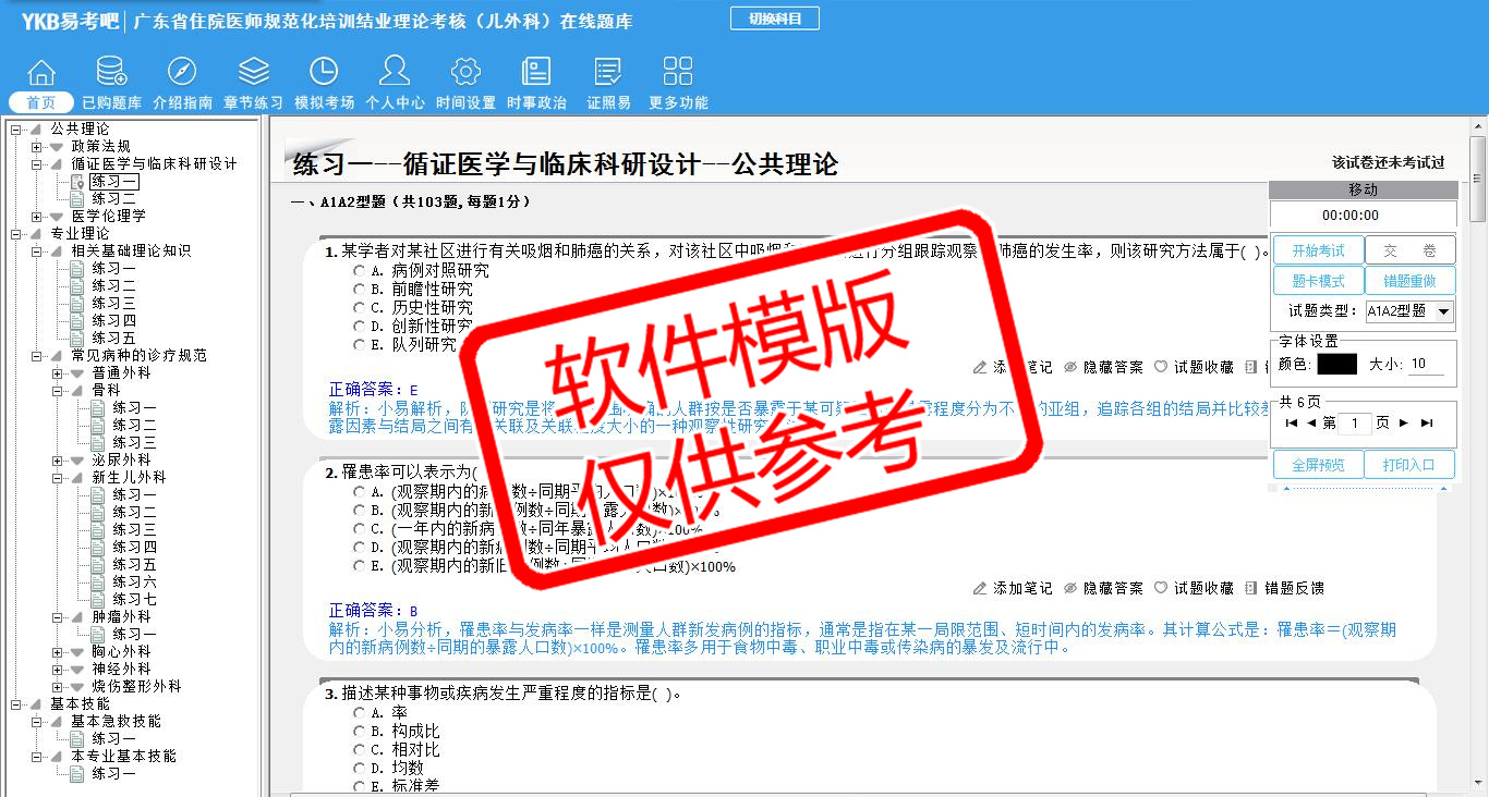 2026年广东省住院医师规范化培训结业理论考核(儿外科)易考宝典软件(手机/网页版)是《易考宝典》考试系列软件之一,是专门为参加“住院医师职业资格考试”的朋友量身定做的自我测试系统,是个人、培训学校进行考试前训练、备考冲刺的提分技巧考试平台,题型丰富,图文并茂,内容全面,题库设计符合考试新大纲,海量试题。软件包括了富有价值的模拟考场,有计时打分等功能,就像亲身体会考试一样。