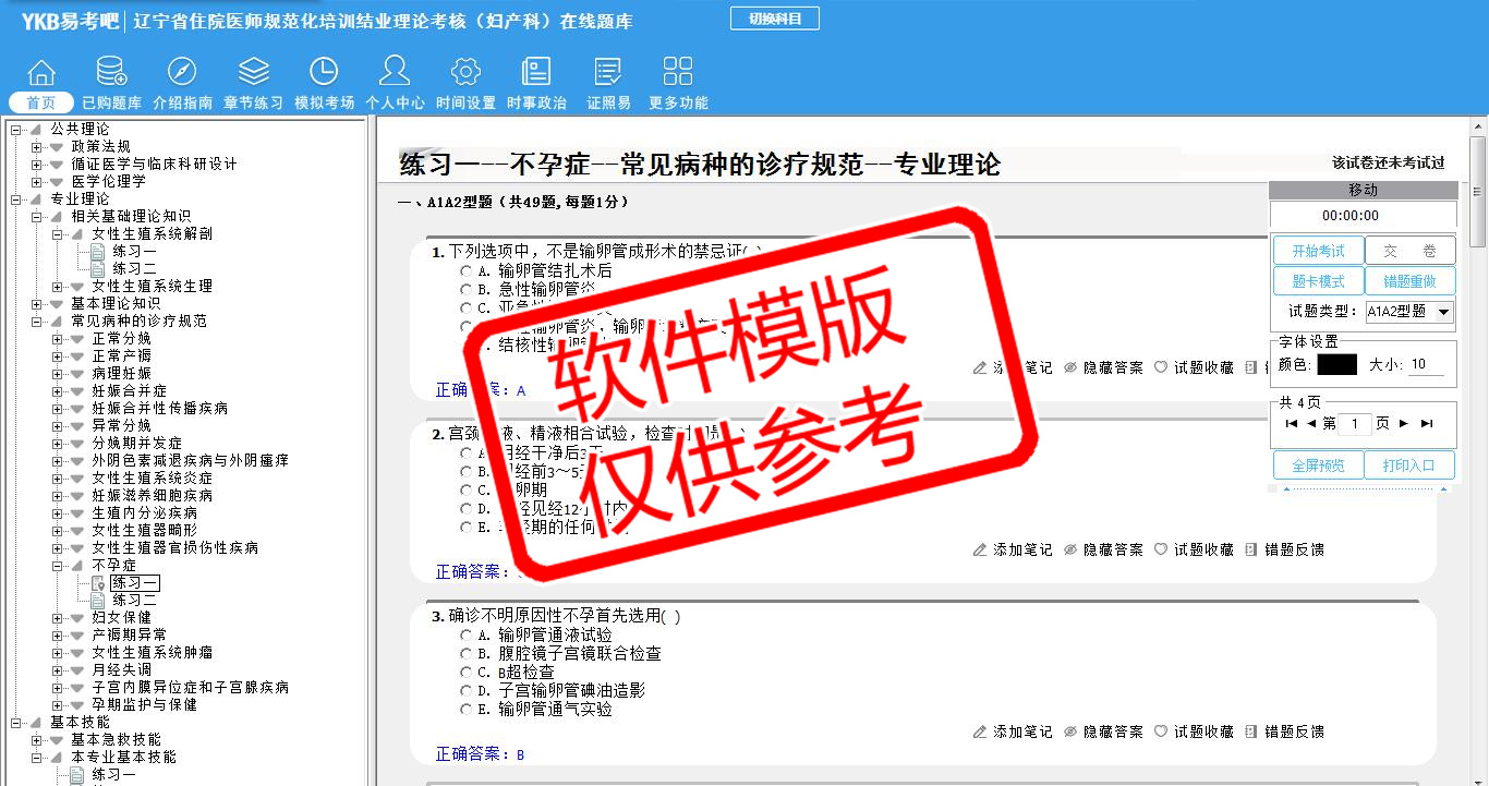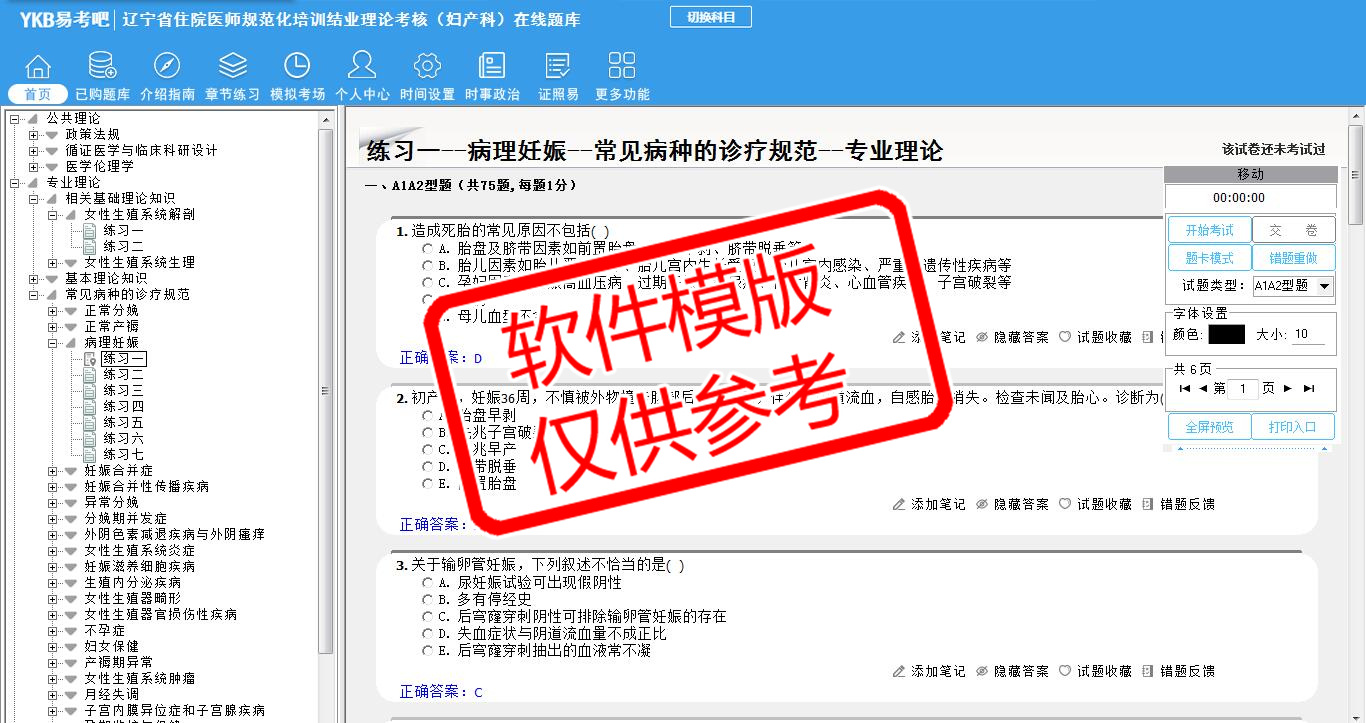 2026年辽宁省住院医师规范化培训结业理论考核(妇产科)易考宝典软件(手机/网页版)是《易考宝典》考试系列软件之一,是专门为参加“住院医师职业资格考试”的朋友量身定做的自我测试系统,是个人、培训学校进行考试前训练、备考冲刺的提分技巧考试平台,题型丰富,图文并茂,内容全面,题库设计符合考试新大纲,海量试题。软件包括了富有价值的模拟考场,有计时打分等功能,就像亲身体会考试一样。