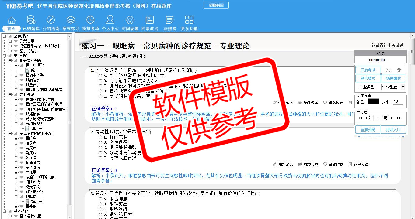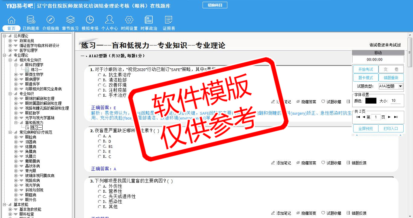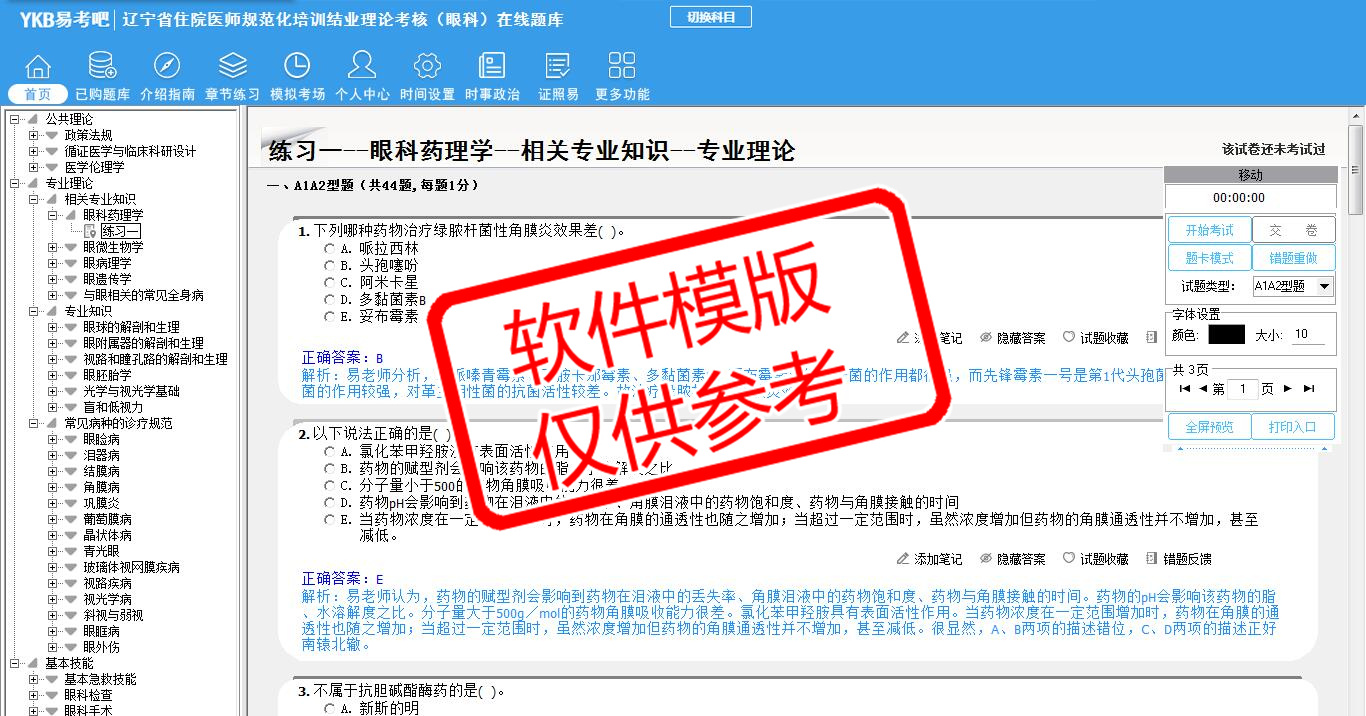 2026年辽宁省住院医师规范化培训结业理论考核(眼科)易考宝典软件(手机/网页版)是《易考宝典》考试系列软件之一,是专门为参加“住院医师职业资格考试”的朋友量身定做的自我测试系统,是个人、培训学校进行考试前训练、备考冲刺的提分技巧考试平台,题型丰富,图文并茂,内容全面,题库设计符合考试新大纲,海量试题。软件包括了富有价值的模拟考场,有计时打分等功能,就像亲身体会考试一样。