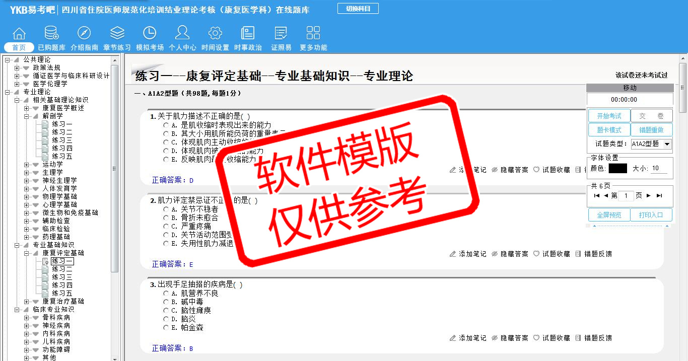 2026年四川省住院医师规范化培训结业理论考核(康复医学科)易考宝典软件(手机/网页版)