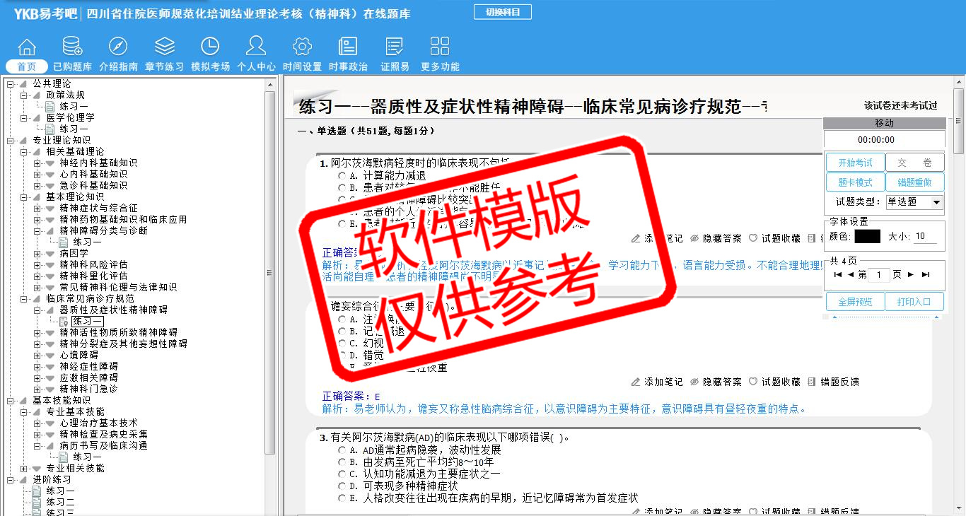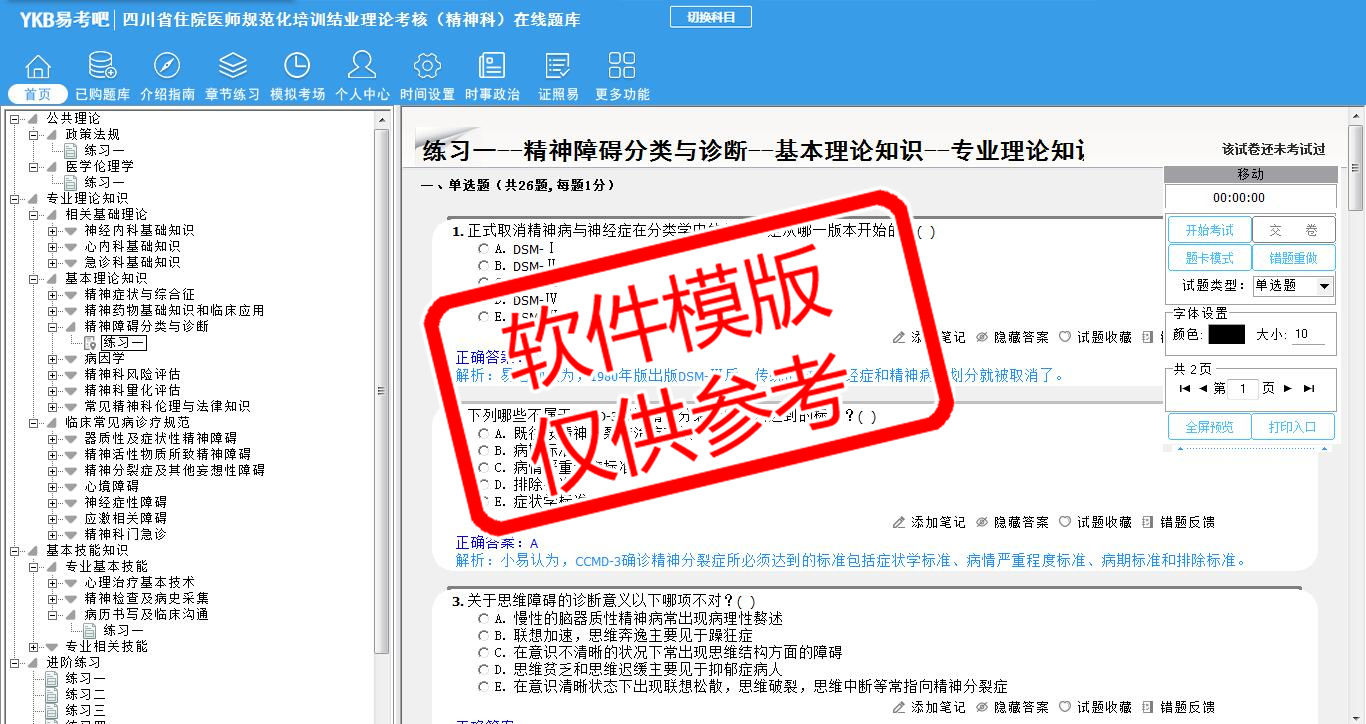 2026年四川省住院医师规范化培训结业理论考核(精神科)易考宝典软件(手机/网页版)