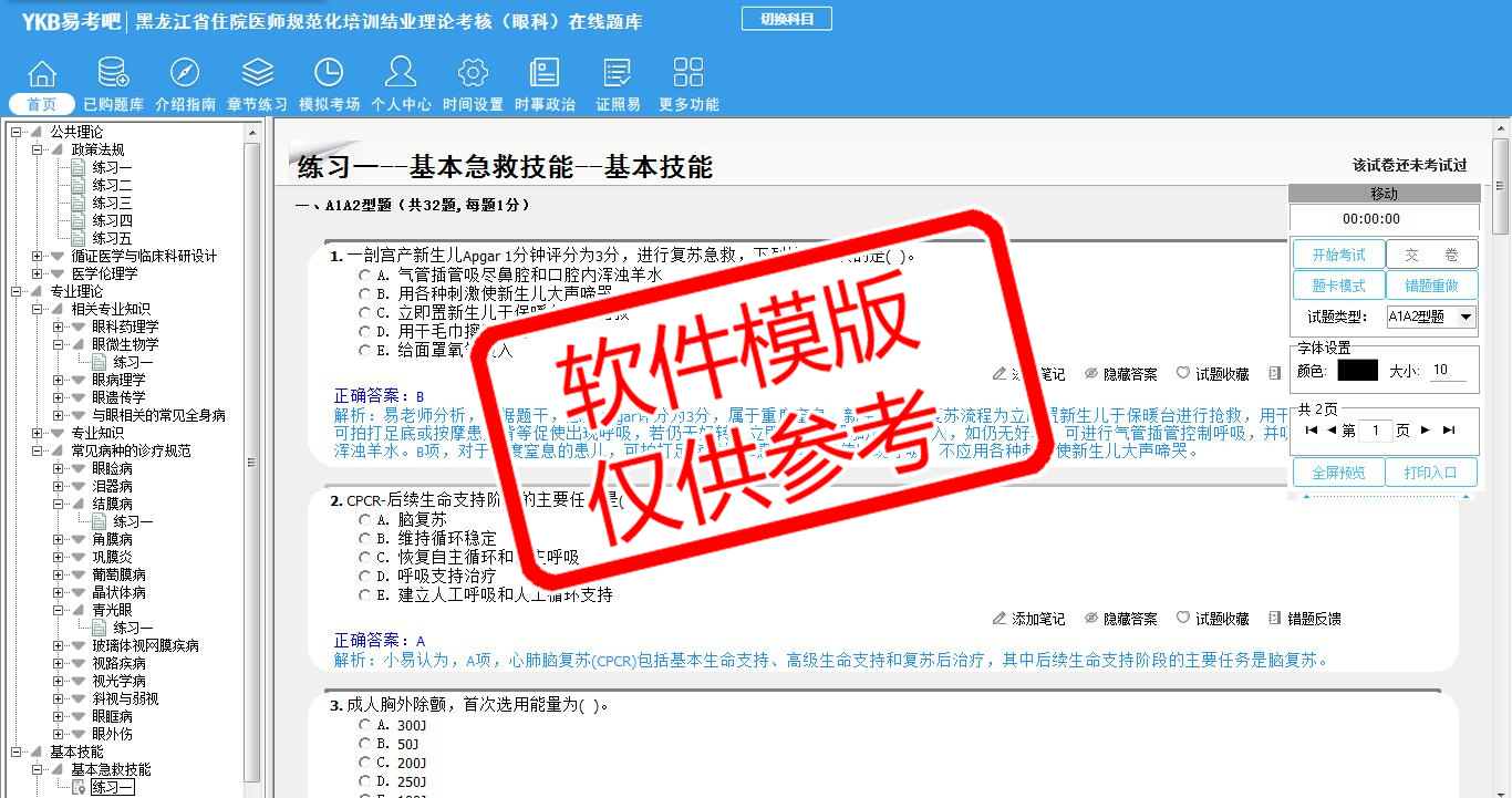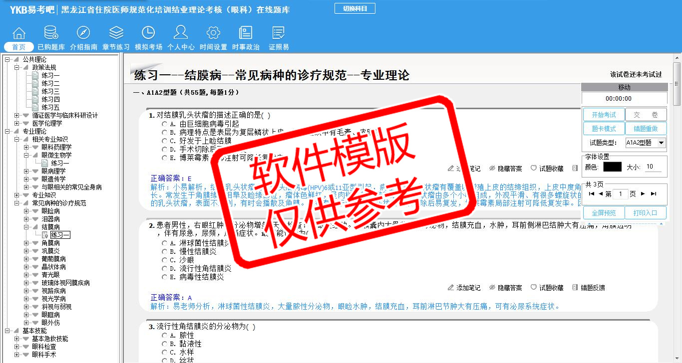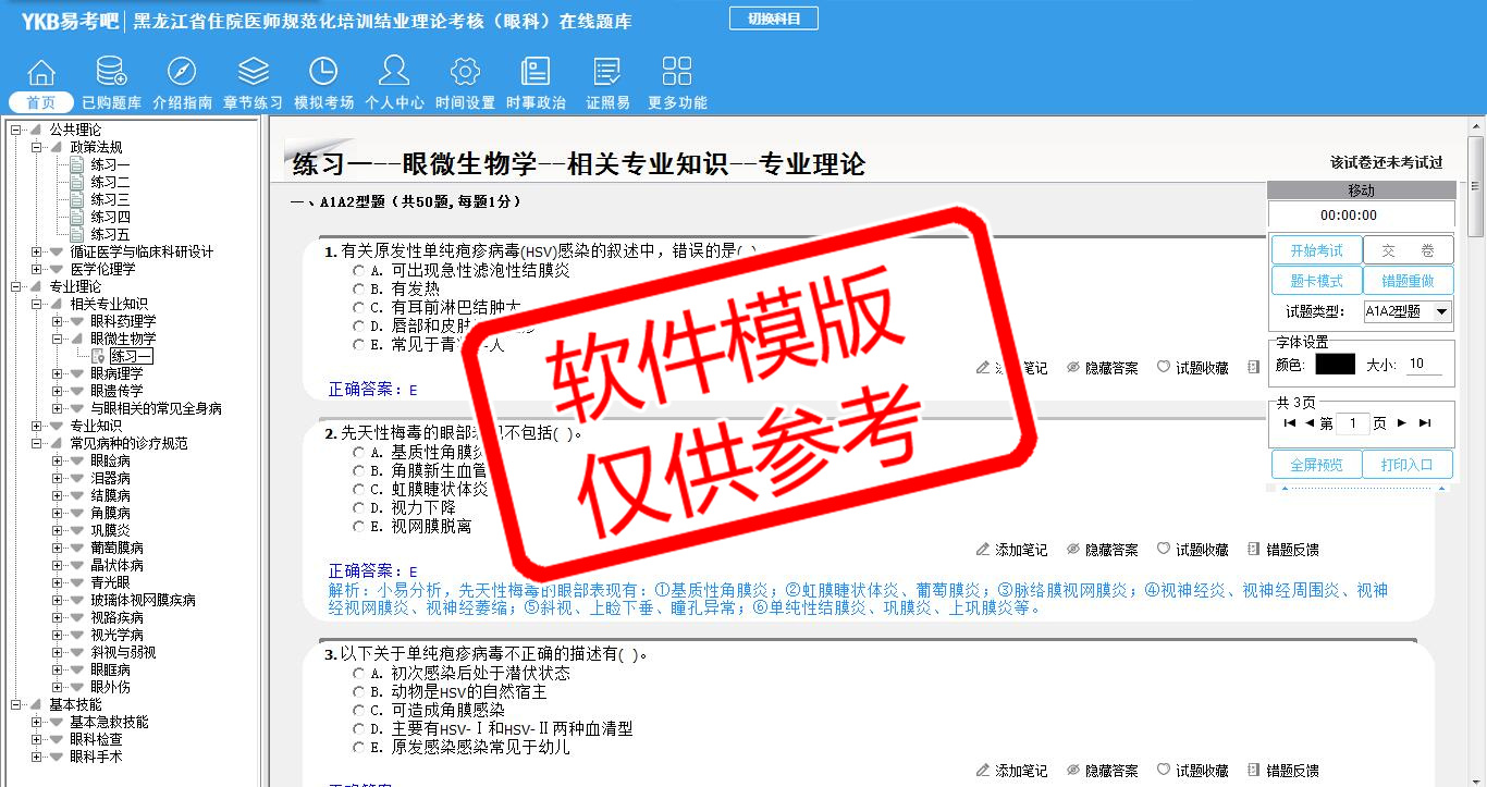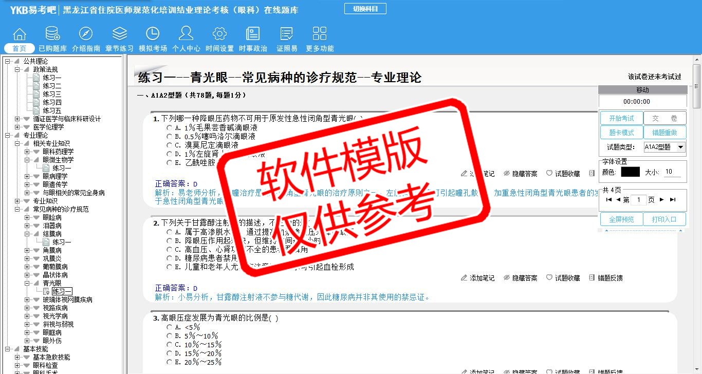 2026年黑龙江省住院医师规范化培训结业理论考核(眼科)易考宝典软件(手机/网页版)是《易考宝典》考试系列软件之一,是专门为参加“住院医师职业资格考试”的朋友量身定做的自我测试系统,是个人、培训学校进行考试前训练、备考冲刺的提分技巧考试平台,题型丰富,图文并茂,内容全面,题库设计符合考试新大纲,海量试题。软件包括了富有价值的模拟考场,有计时打分等功能,就像亲身体会考试一样。