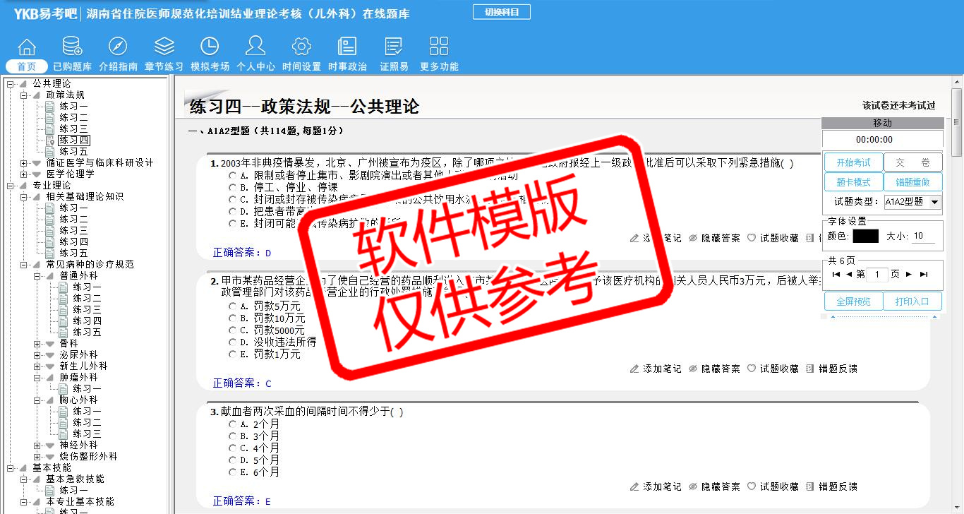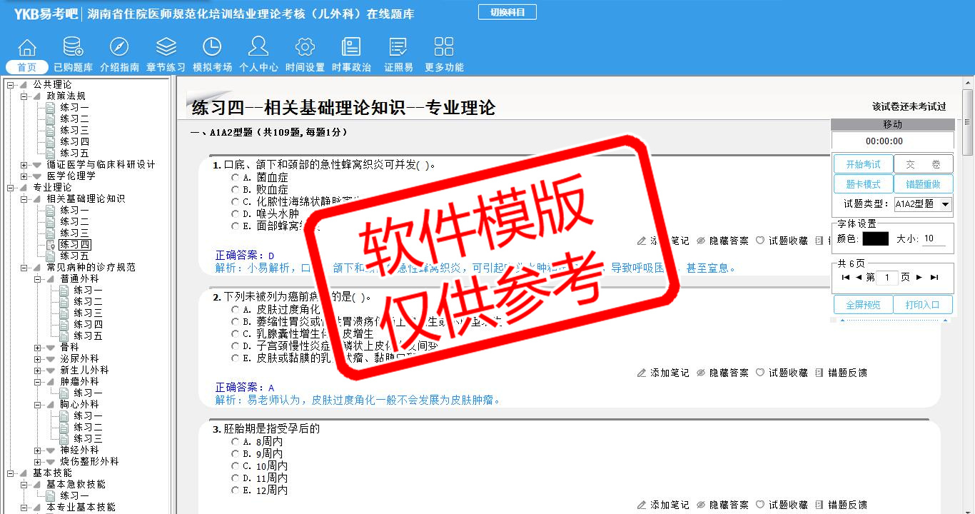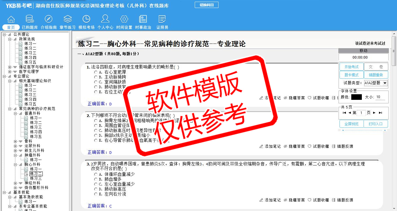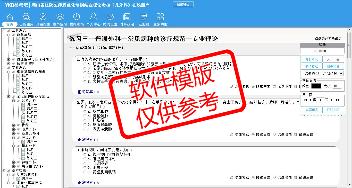 2026年湖南省住院医师规范化培训结业理论考核(儿外科)易考宝典软件(手机/网页版)是《易考宝典》考试系列软件之一,是专门为参加“住院医师职业资格考试”的朋友量身定做的自我测试系统,是个人、培训学校进行考试前训练、备考冲刺的提分技巧考试平台,题型丰富,图文并茂,内容全面,题库设计符合考试新大纲,海量试题。软件包括了富有价值的模拟考场,有计时打分等功能,就像亲身体会考试一样。