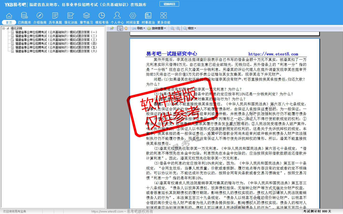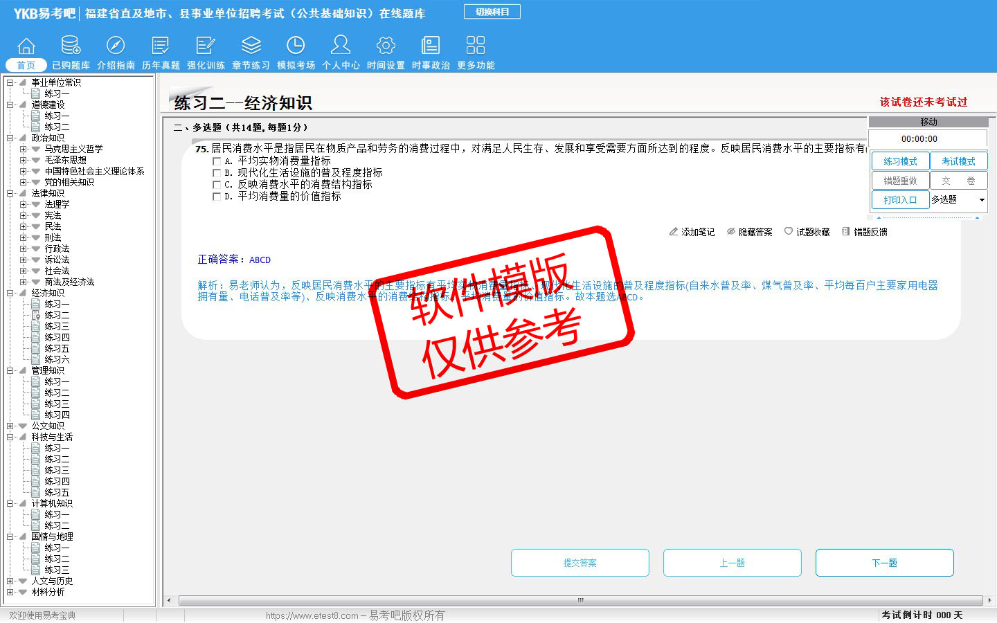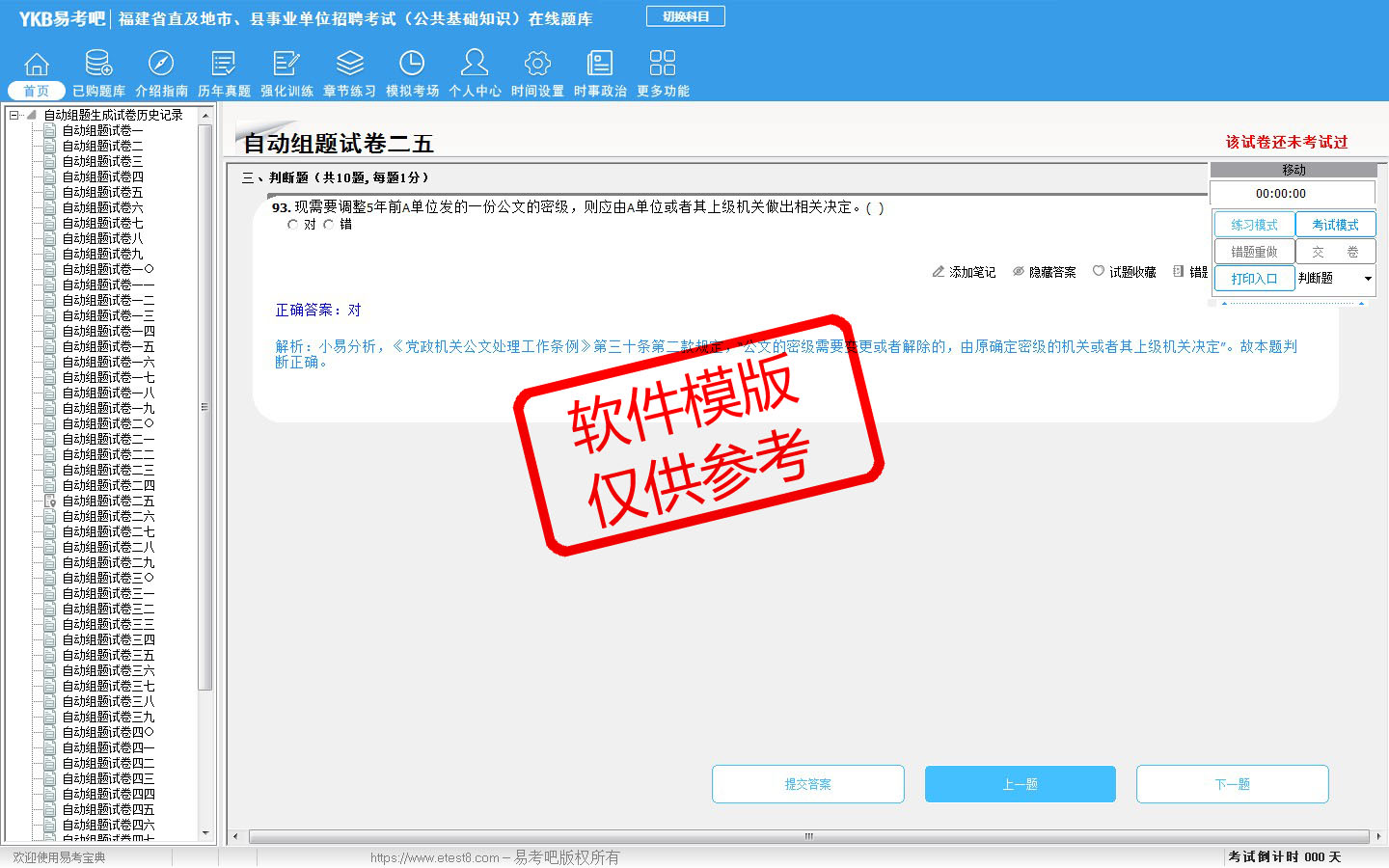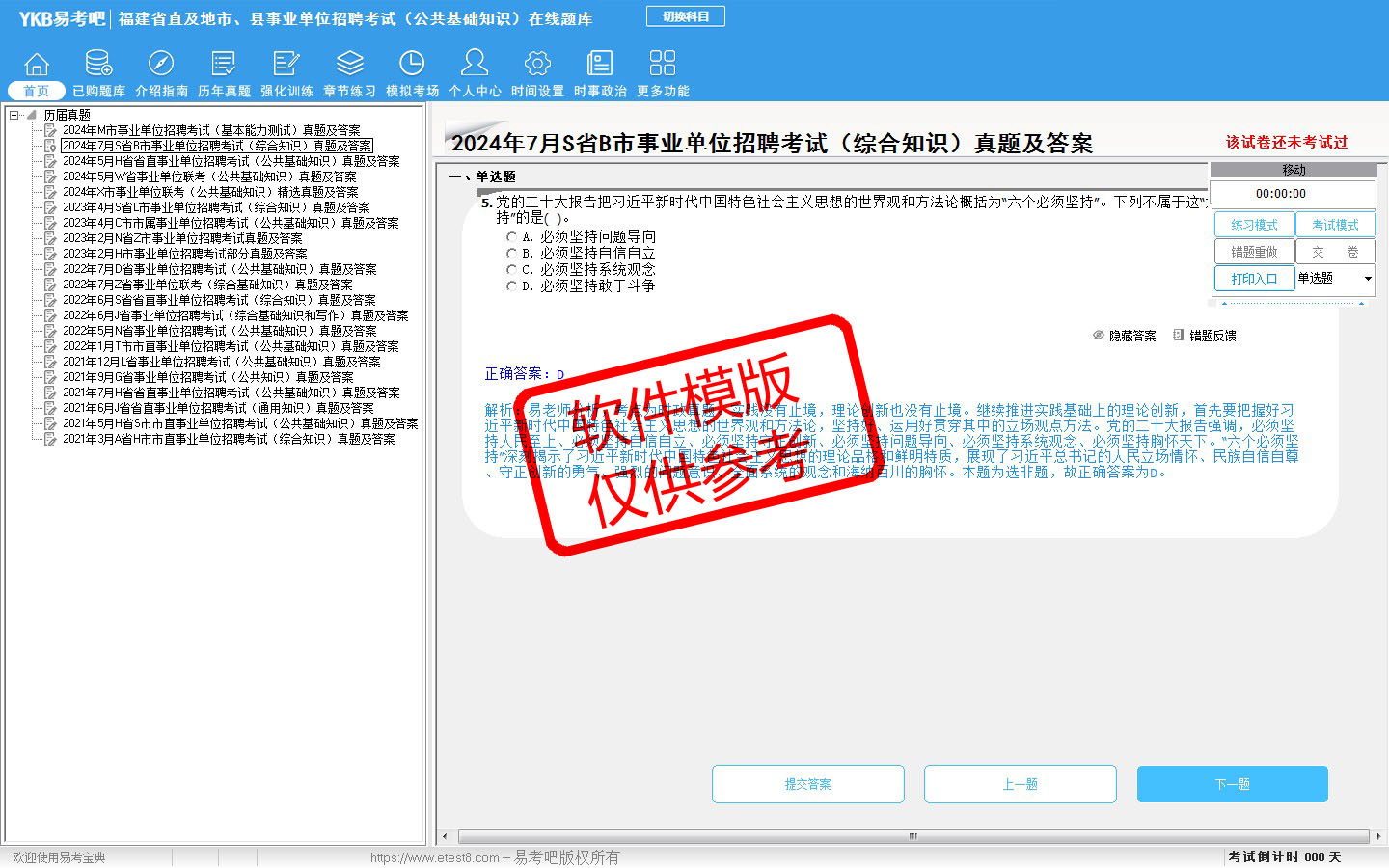 2026年福建省直及地市、县事业单位招聘考试(公共基础知识)易考宝典软件(手机/网页版)是《易考宝典》考试系列软件之一,是专门为参加“事业单位职业资格考试”的朋友量身定做的自我测试系统,是个人、培训学校进行考试前训练、备考冲刺的提分技巧考试平台,题型丰富,图文并茂,内容全面,题库设计符合考试新大纲,海量试题。软件包括了富有价值的模拟考场,有计时打分等功能,就像亲身体会考试一样。