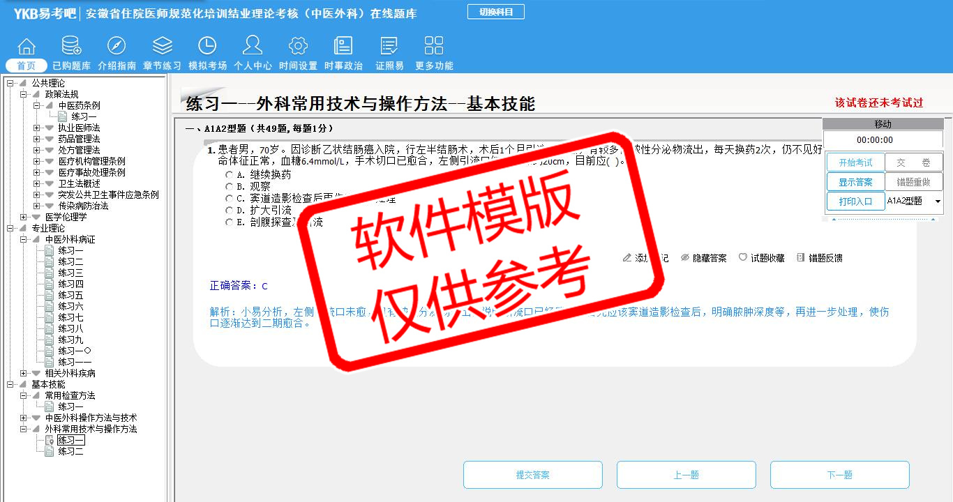 2026年安徽省住院医师规范化培训结业理论考核(中医外科)易考宝典软件(手机/网页版)是《易考宝典》考试系列软件之一,是专门为参加“住院医师职业资格考试”的朋友量身定做的自我测试系统,是个人、培训学校进行考试前训练、备考冲刺的提分技巧考试平台,题型丰富,图文并茂,内容全面,题库设计符合考试新大纲,海量试题。软件包括了富有价值的模拟考场,有计时打分等功能,就像亲身体会考试一样。