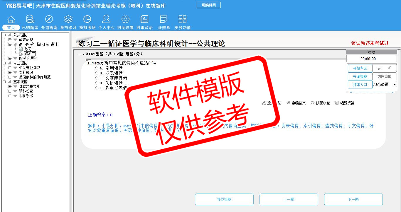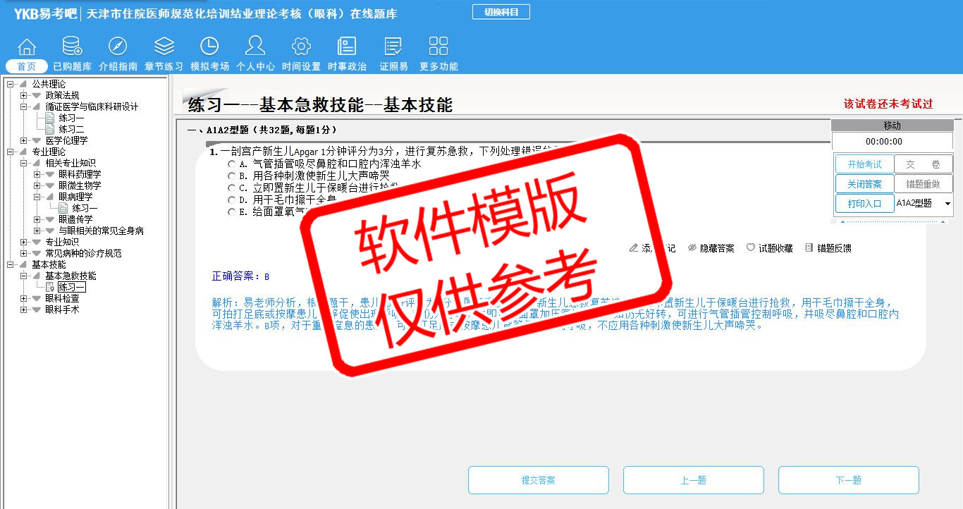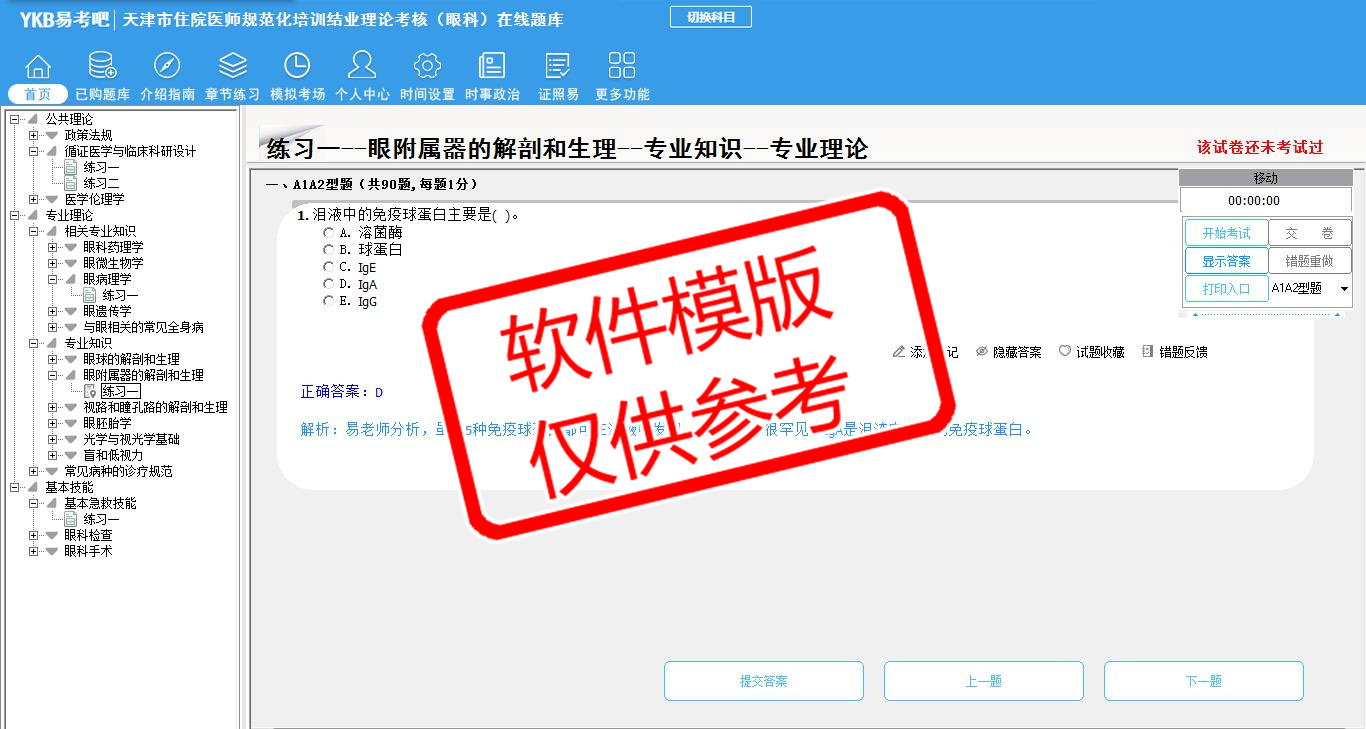 2026年天津市住院医师规范化培训结业理论考核(眼科)易考宝典软件(手机/网页版)是《易考宝典》考试系列软件之一,是专门为参加“住院医师职业资格考试”的朋友量身定做的自我测试系统,是个人、培训学校进行考试前训练、备考冲刺的提分技巧考试平台,题型丰富,图文并茂,内容全面,题库设计符合考试新大纲,海量试题。软件包括了富有价值的模拟考场,有计时打分等功能,就像亲身体会考试一样。