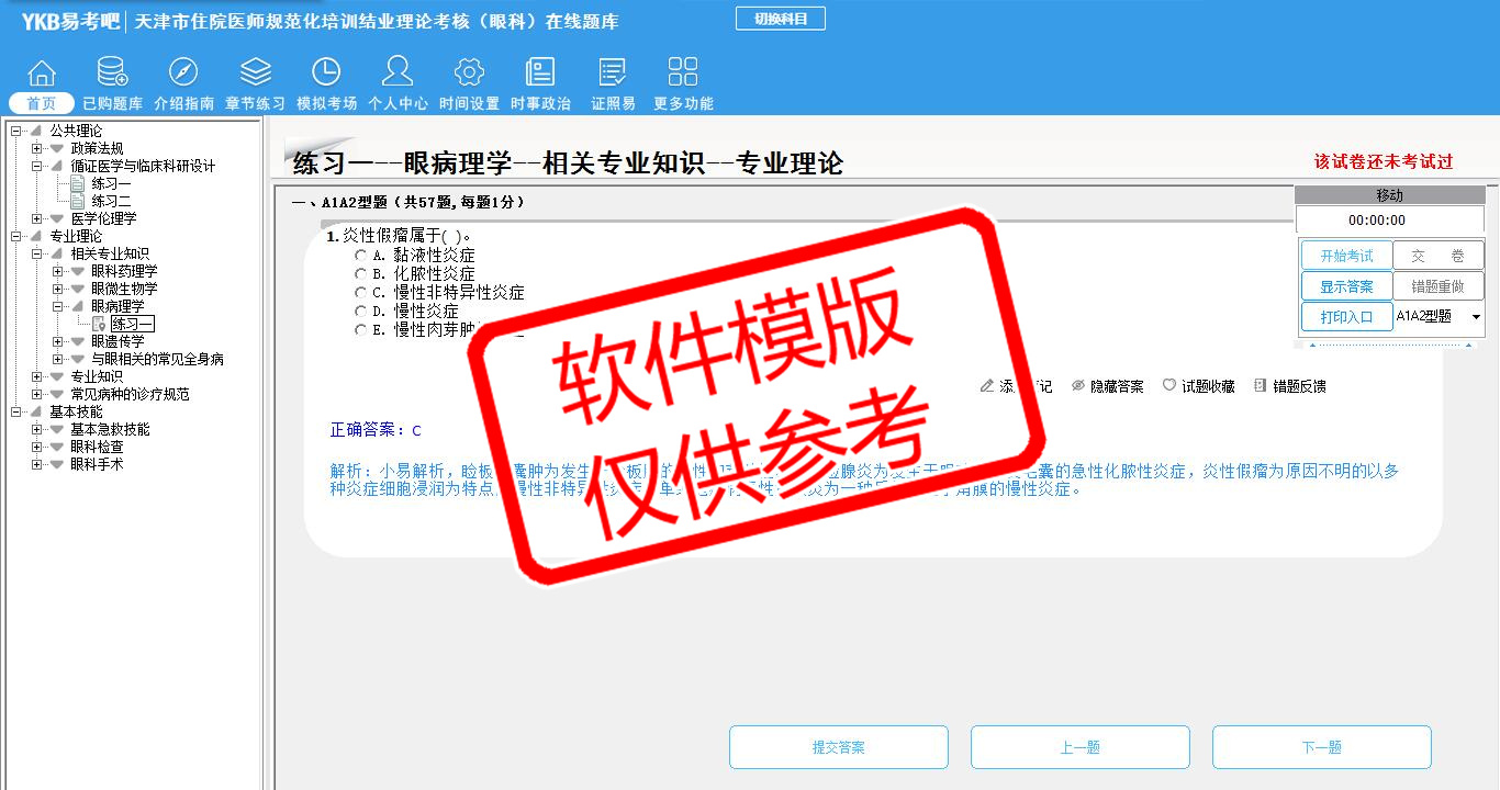 2026年天津市住院医师规范化培训结业理论考核(眼科)易考宝典软件(手机/网页版)