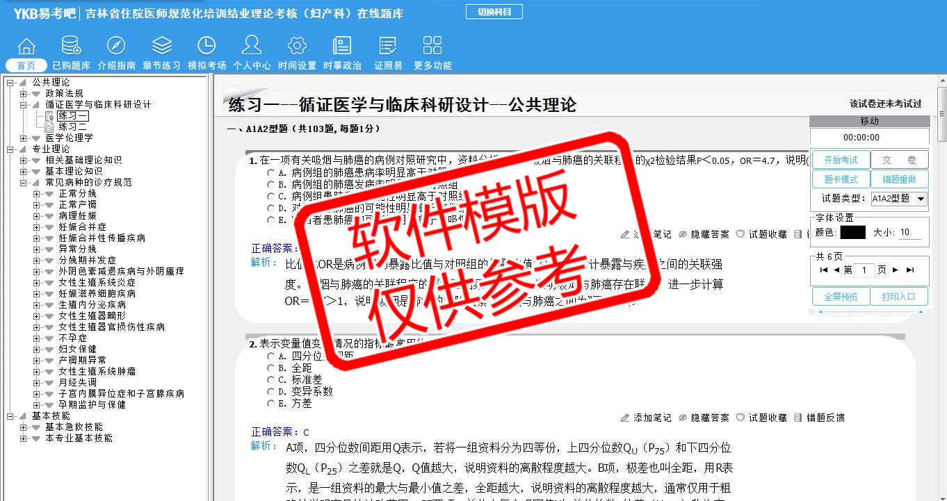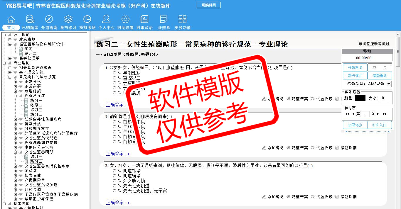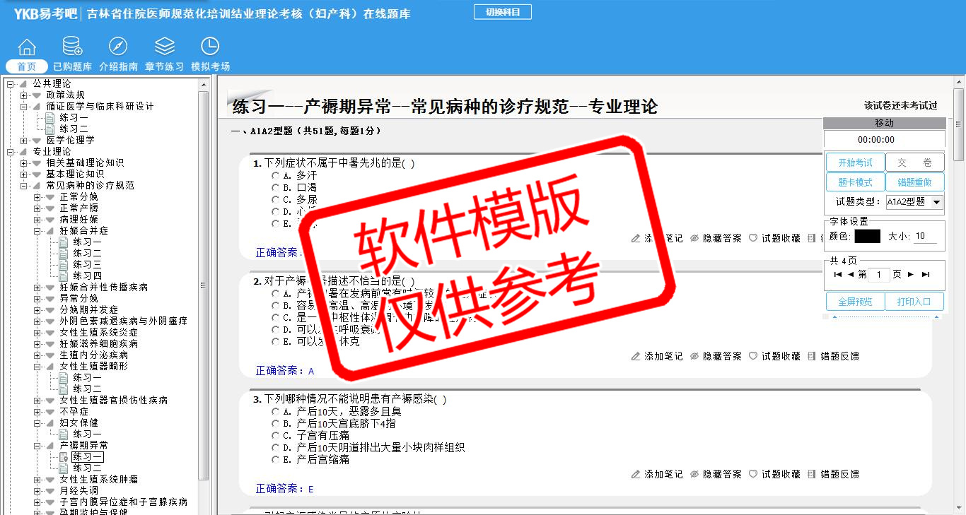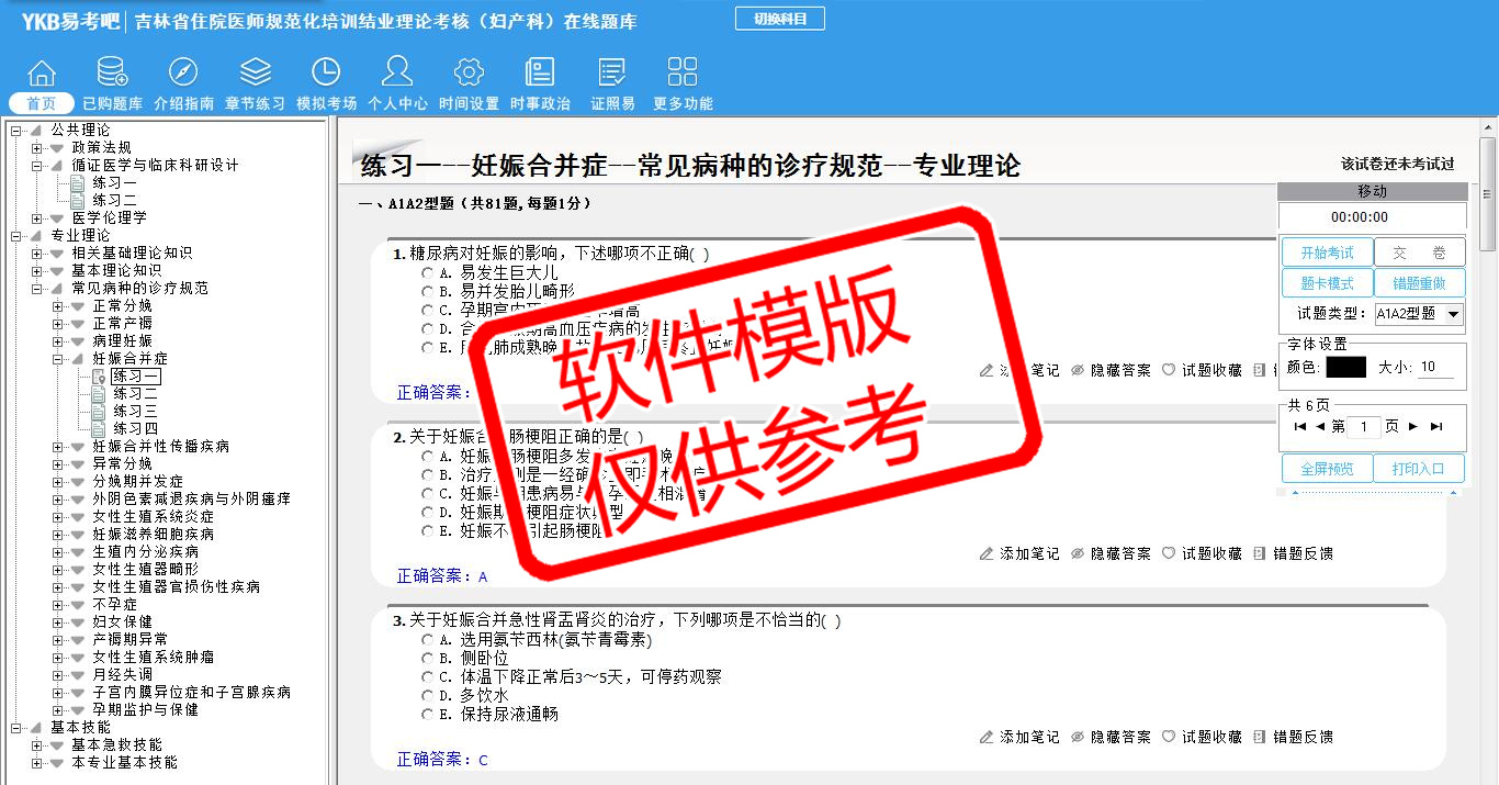 2026年吉林省住院医师规范化培训结业理论考核(妇产科)易考宝典软件(手机/网页版)是《易考宝典》考试系列软件之一,是专门为参加“住院医师职业资格考试”的朋友量身定做的自我测试系统,是个人、培训学校进行考试前训练、备考冲刺的提分技巧考试平台,题型丰富,图文并茂,内容全面,题库设计符合考试新大纲,海量试题。软件包括了富有价值的模拟考场,有计时打分等功能,就像亲身体会考试一样。