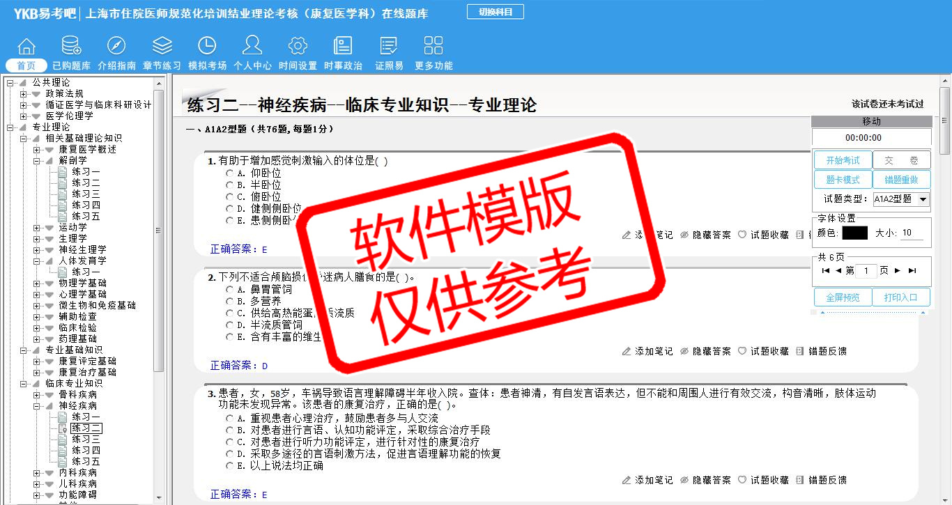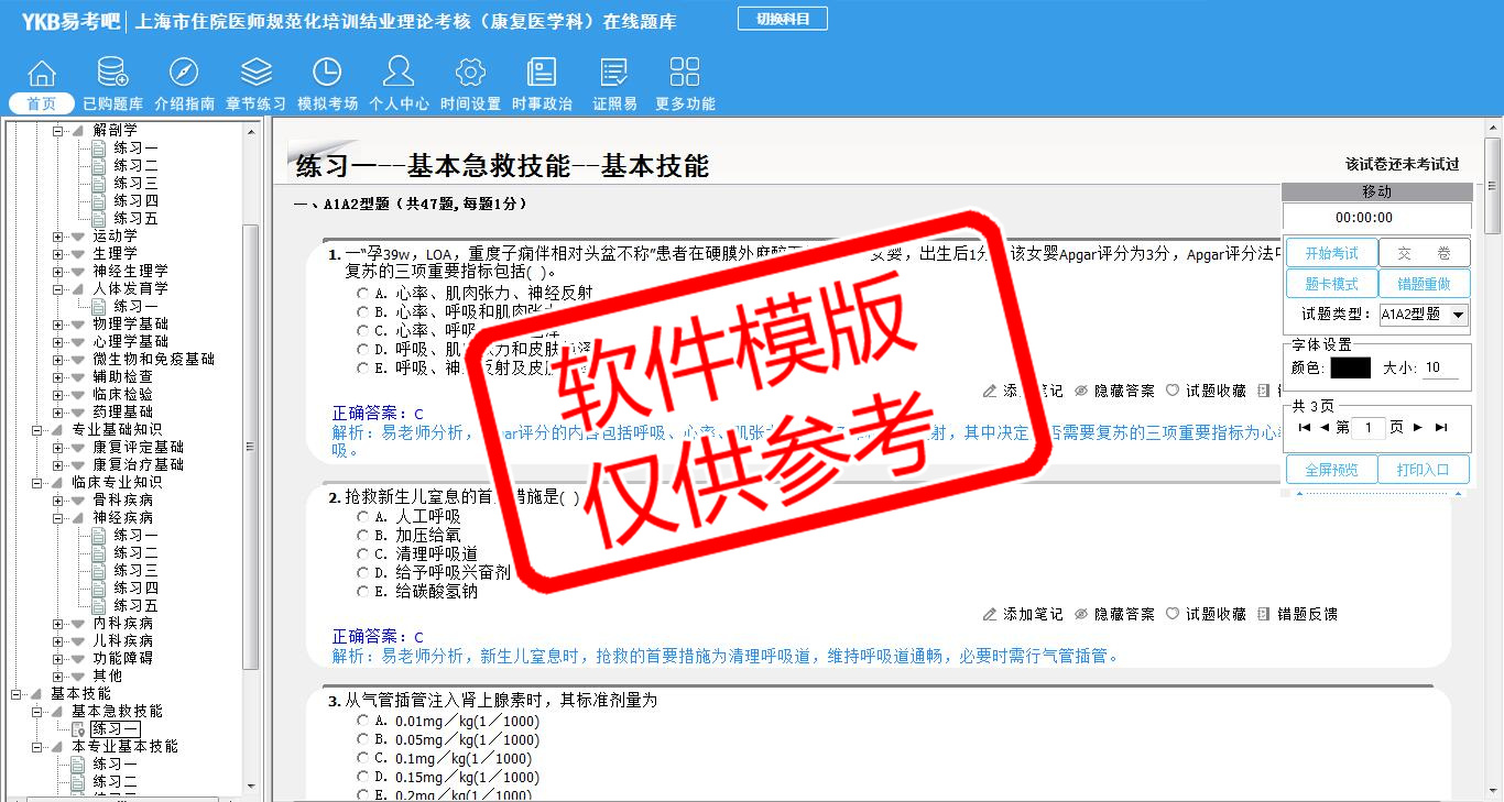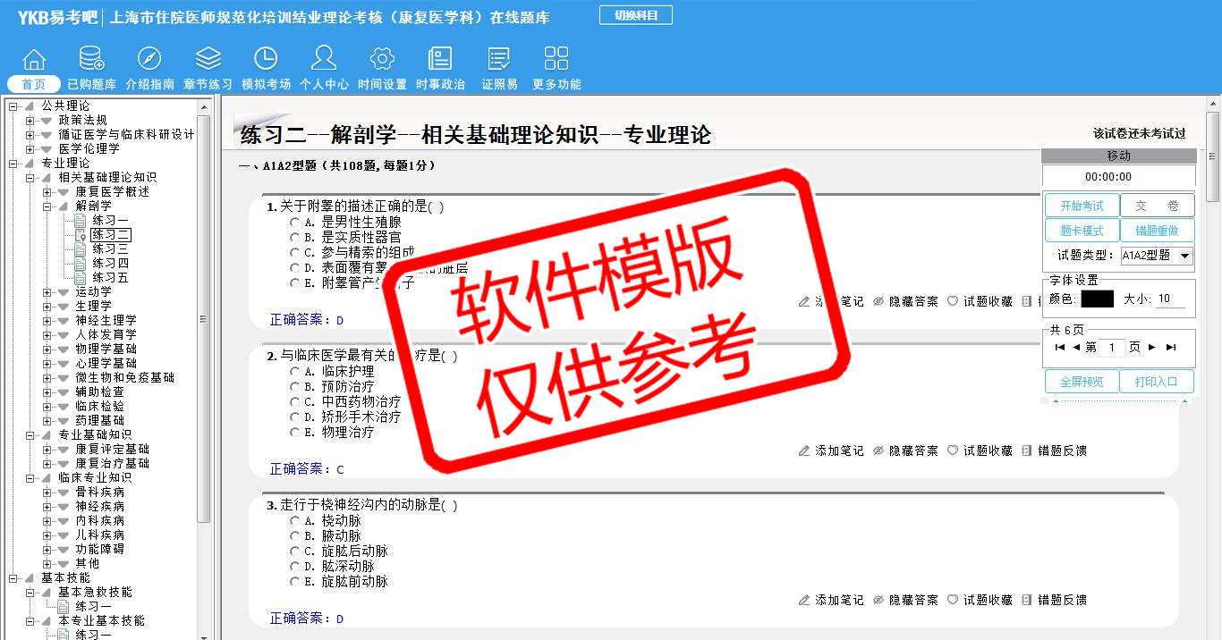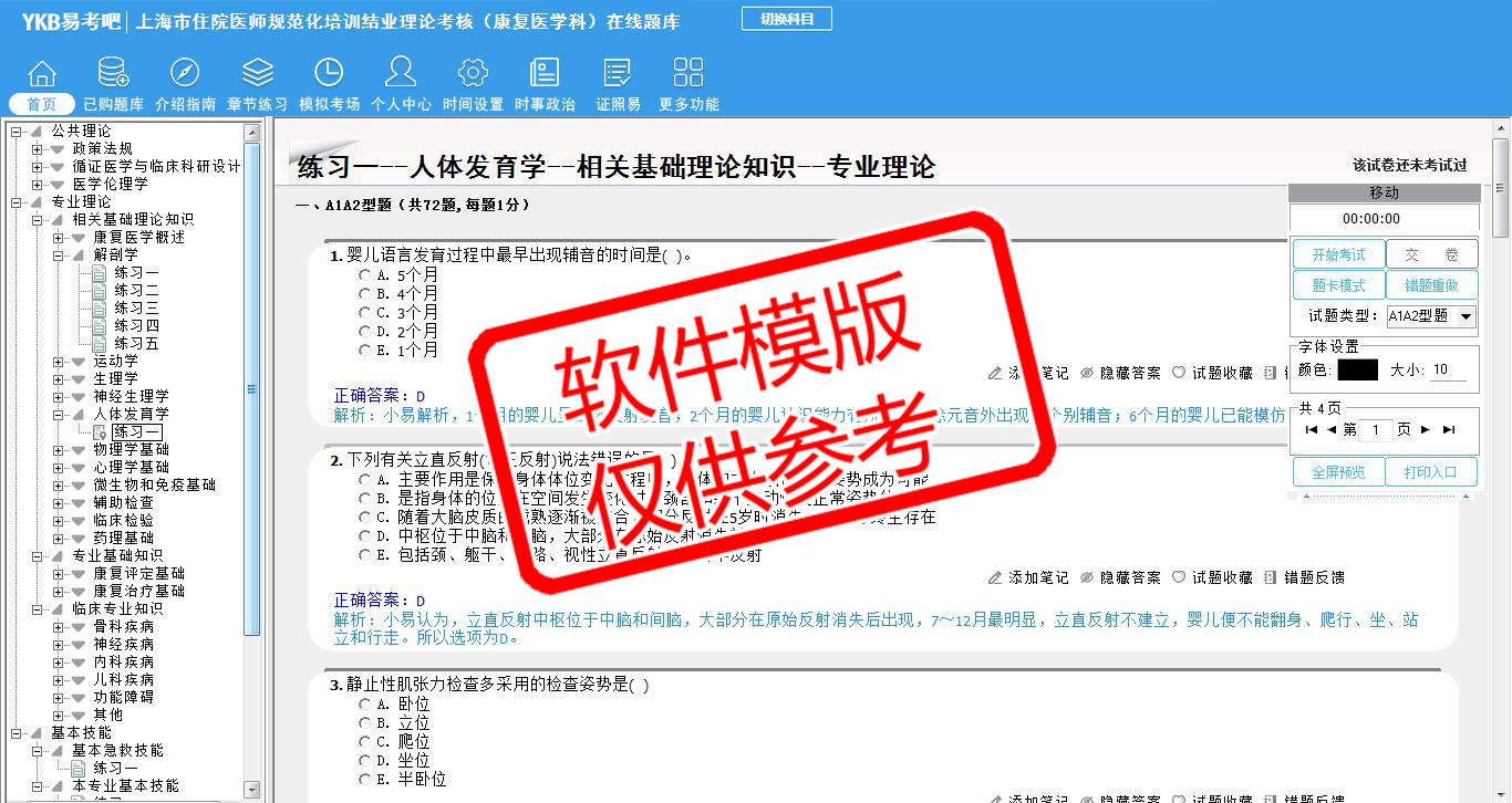 2026年上海市住院医师规范化培训结业理论考核(康复医学科)易考宝典软件(手机/网页版)是《易考宝典》考试系列软件之一,是专门为参加“住院医师职业资格考试”的朋友量身定做的自我测试系统,是个人、培训学校进行考试前训练、备考冲刺的提分技巧考试平台,题型丰富,图文并茂,内容全面,题库设计符合考试新大纲,海量试题。软件包括了富有价值的模拟考场,有计时打分等功能,就像亲身体会考试一样。