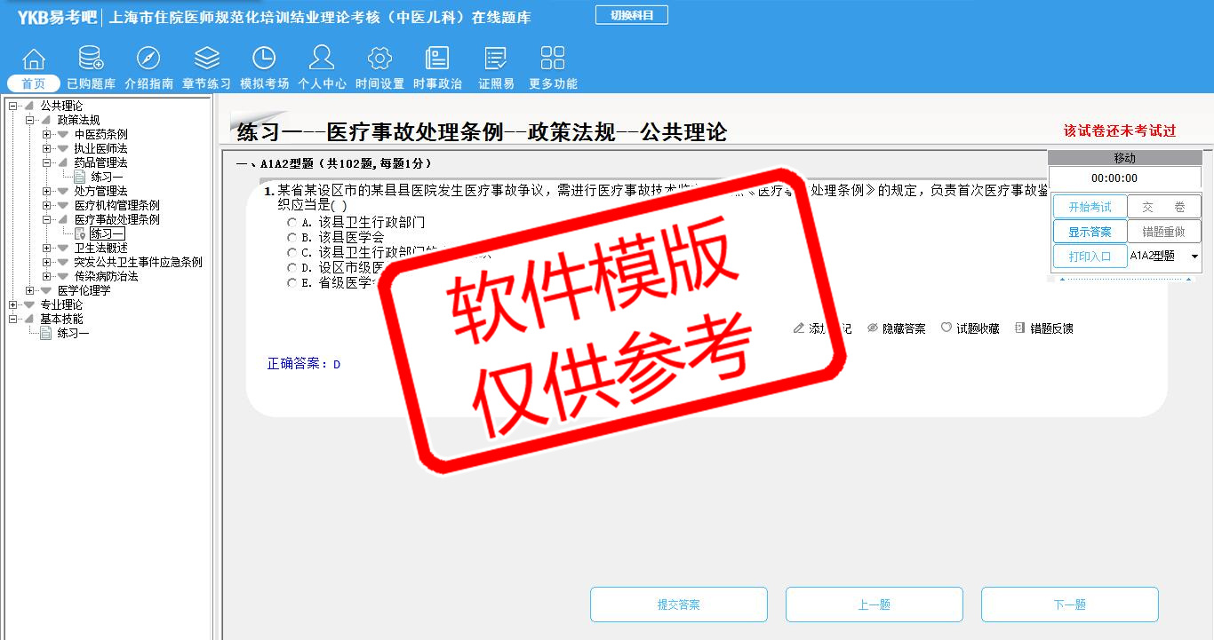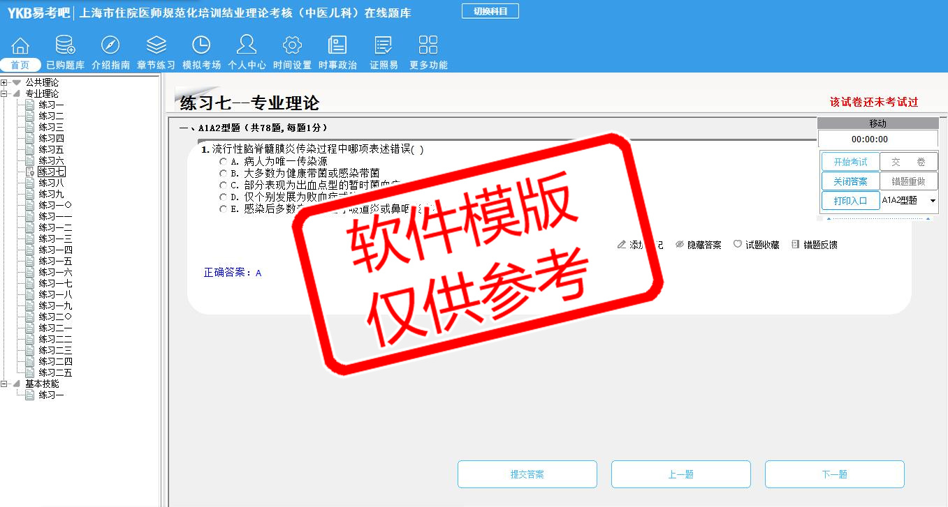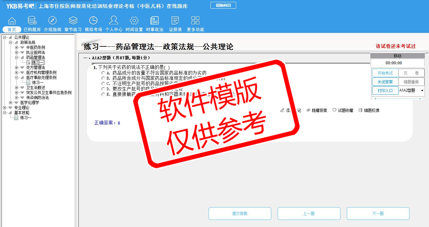 2026年上海市住院医师规范化培训结业理论考核(中医儿科)易考宝典软件(手机/网页版)是《易考宝典》考试系列软件之一,是专门为参加“住院医师职业资格考试”的朋友量身定做的自我测试系统,是个人、培训学校进行考试前训练、备考冲刺的提分技巧考试平台,题型丰富,图文并茂,内容全面,题库设计符合考试新大纲,海量试题。软件包括了富有价值的模拟考场,有计时打分等功能,就像亲身体会考试一样。