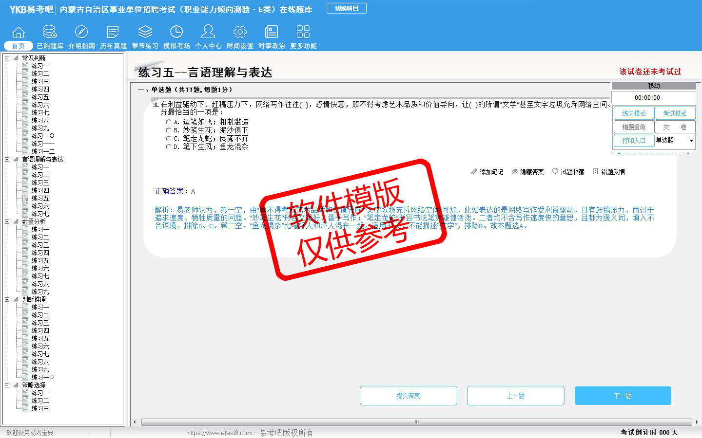 2026年内蒙古自治区事业单位招聘考试(职业能力倾向测验·E类)在线题库-(ID:4255)