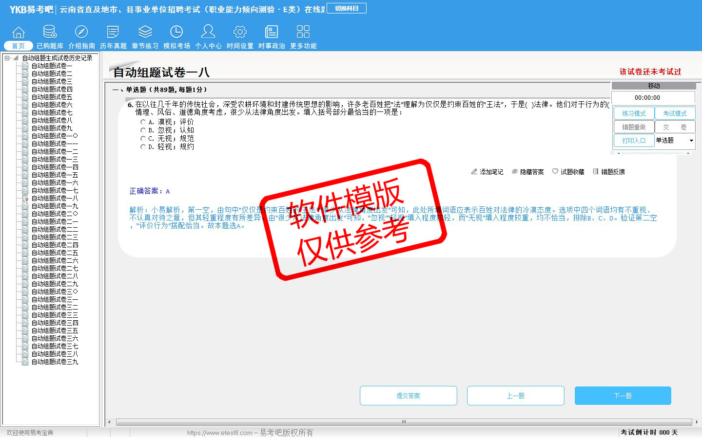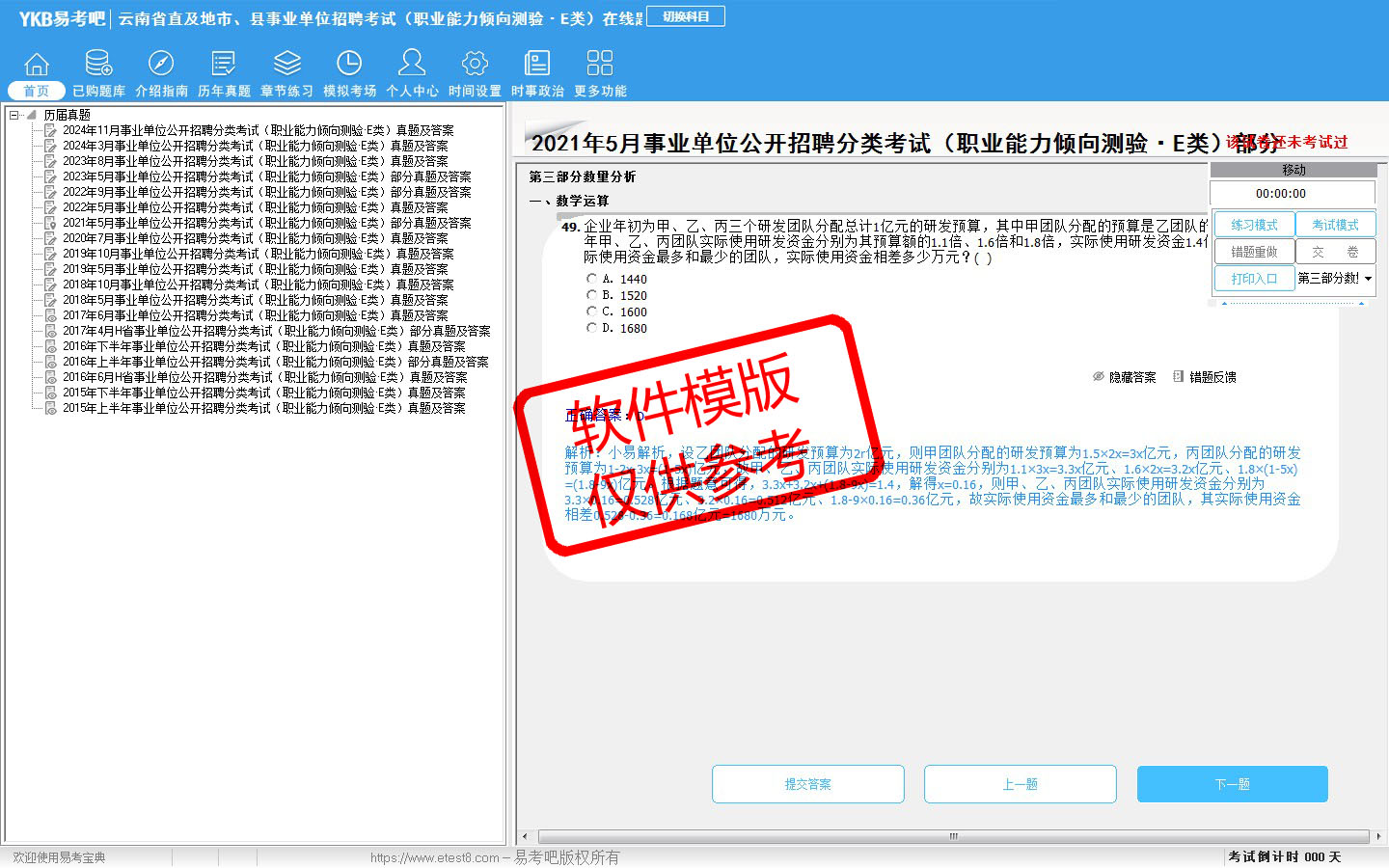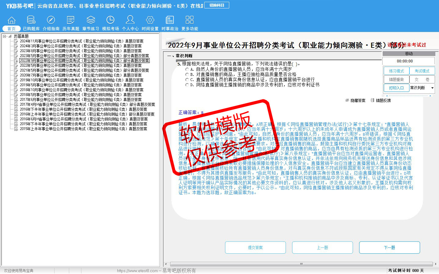 2026年云南省直及地市、县事业单位招聘考试(医疗卫生类·E类)易考宝典软件(含2科)(手机/网页版)是《易考宝典》考试系列软件之一,是专门为参加“事业单位职业资格考试”的朋友量身定做的自我测试系统,是个人、培训学校进行考试前训练、备考冲刺的提分技巧考试平台,题型丰富,图文并茂,内容全面,题库设计符合考试新大纲,海量试题。软件包括了富有价值的模拟考场,有计时打分等功能,就像亲身体会考试一样。